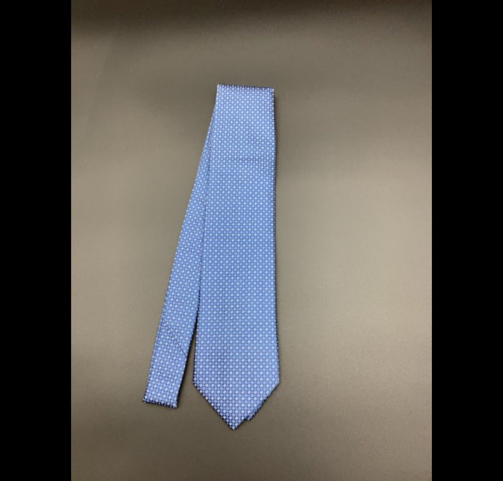 H345 Slipsen er blåt med hvidt mønster, lavet af 100% Silke