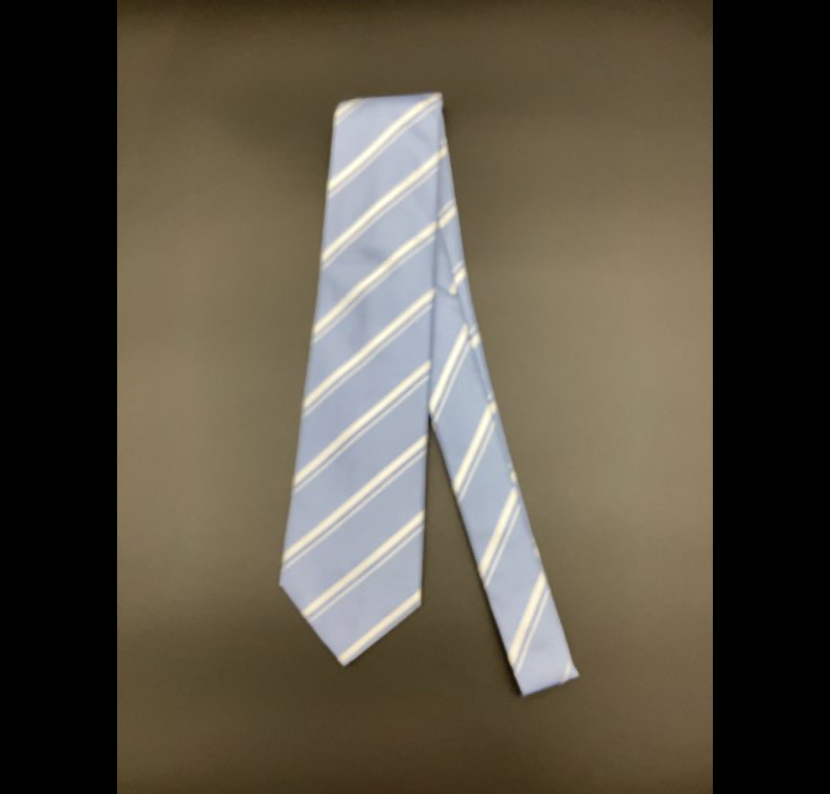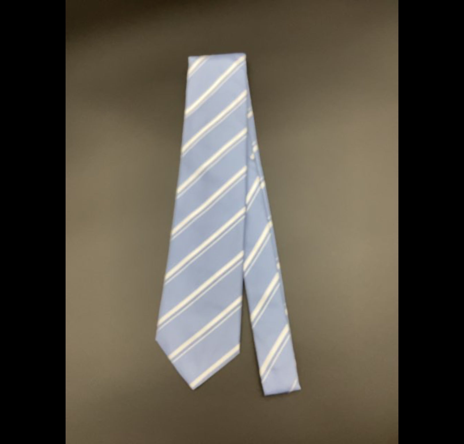 H346 Slipset er lyseblå med hvide striber. Det er lavet af 100% silke