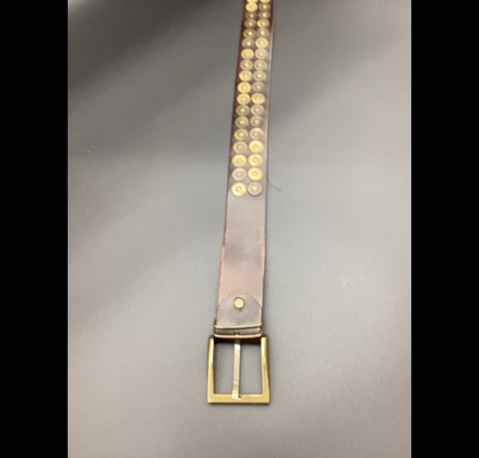 H323 Bæltet er lavet af læder med metalknapper og en metalspænde.4cm bredt og 85cm langt (fra bæltespænde til 1ste. hul)