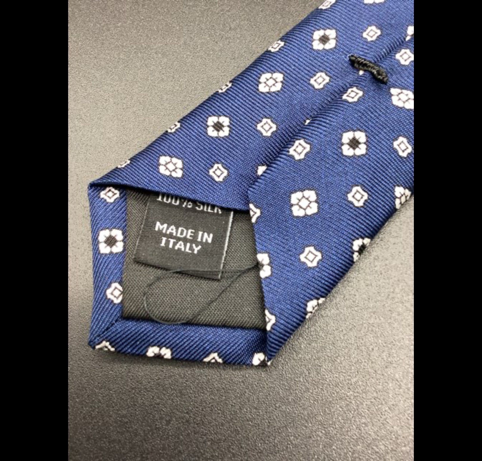 H347 Slipsen er blåt med hvidt mønster -100% silke