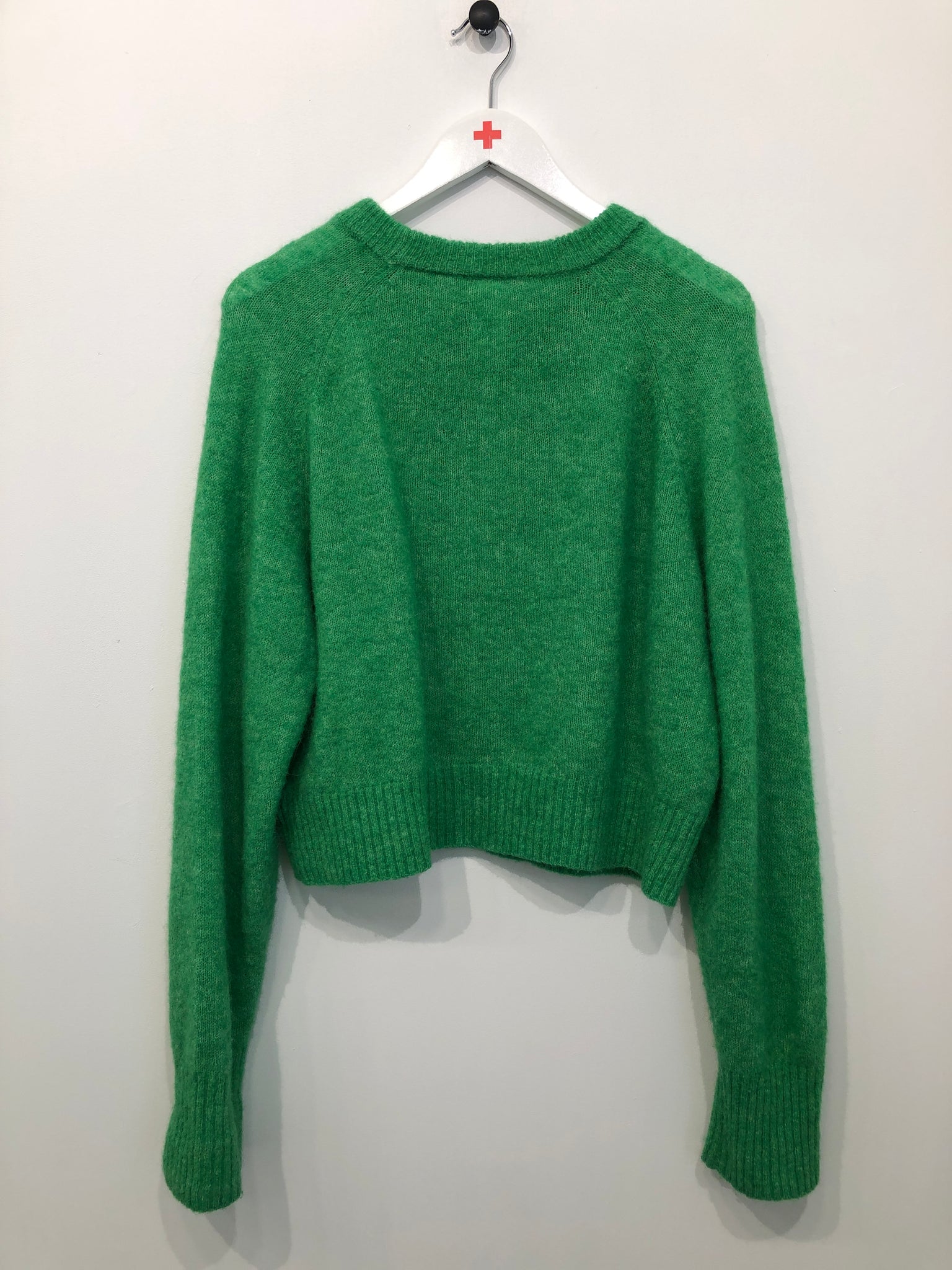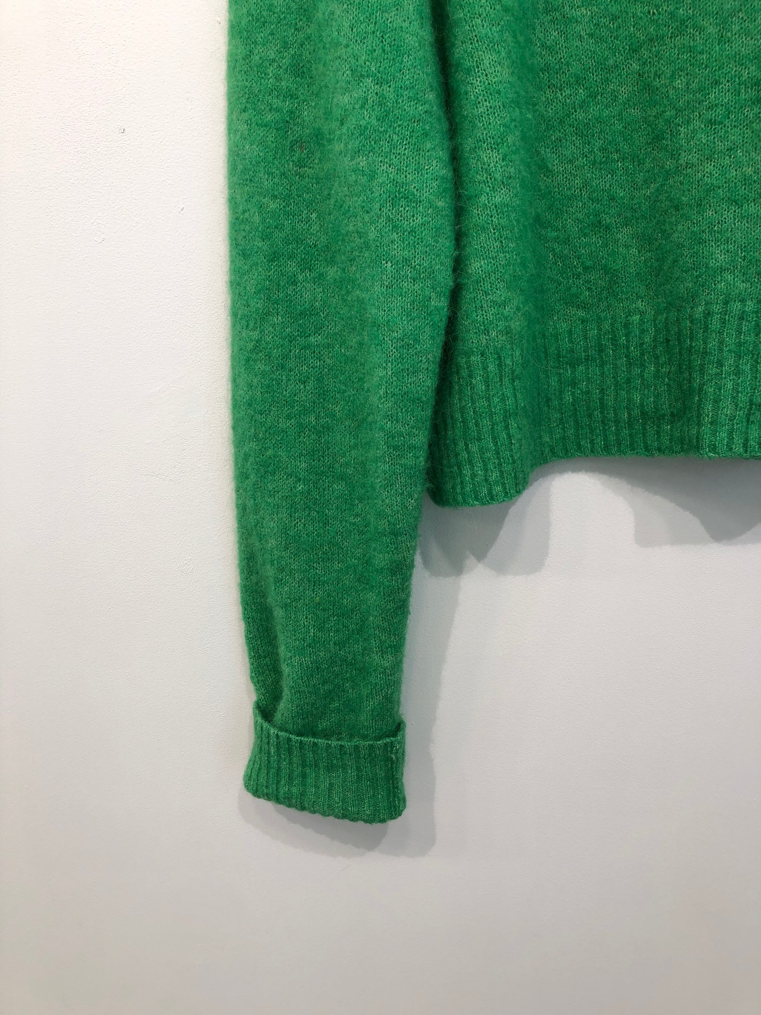 Strik bluse med rund hals og lange ærmer. Indeholder uld.