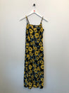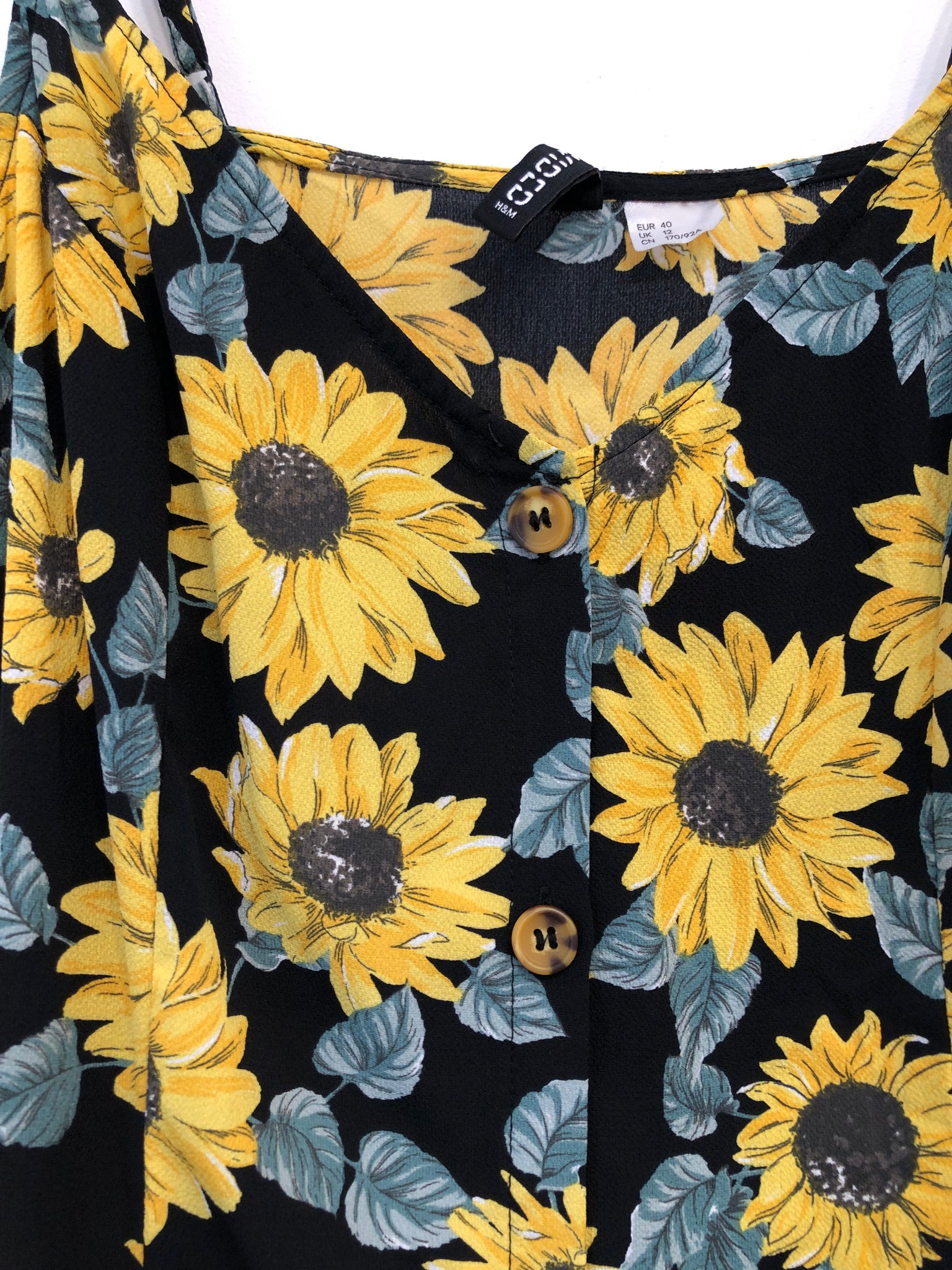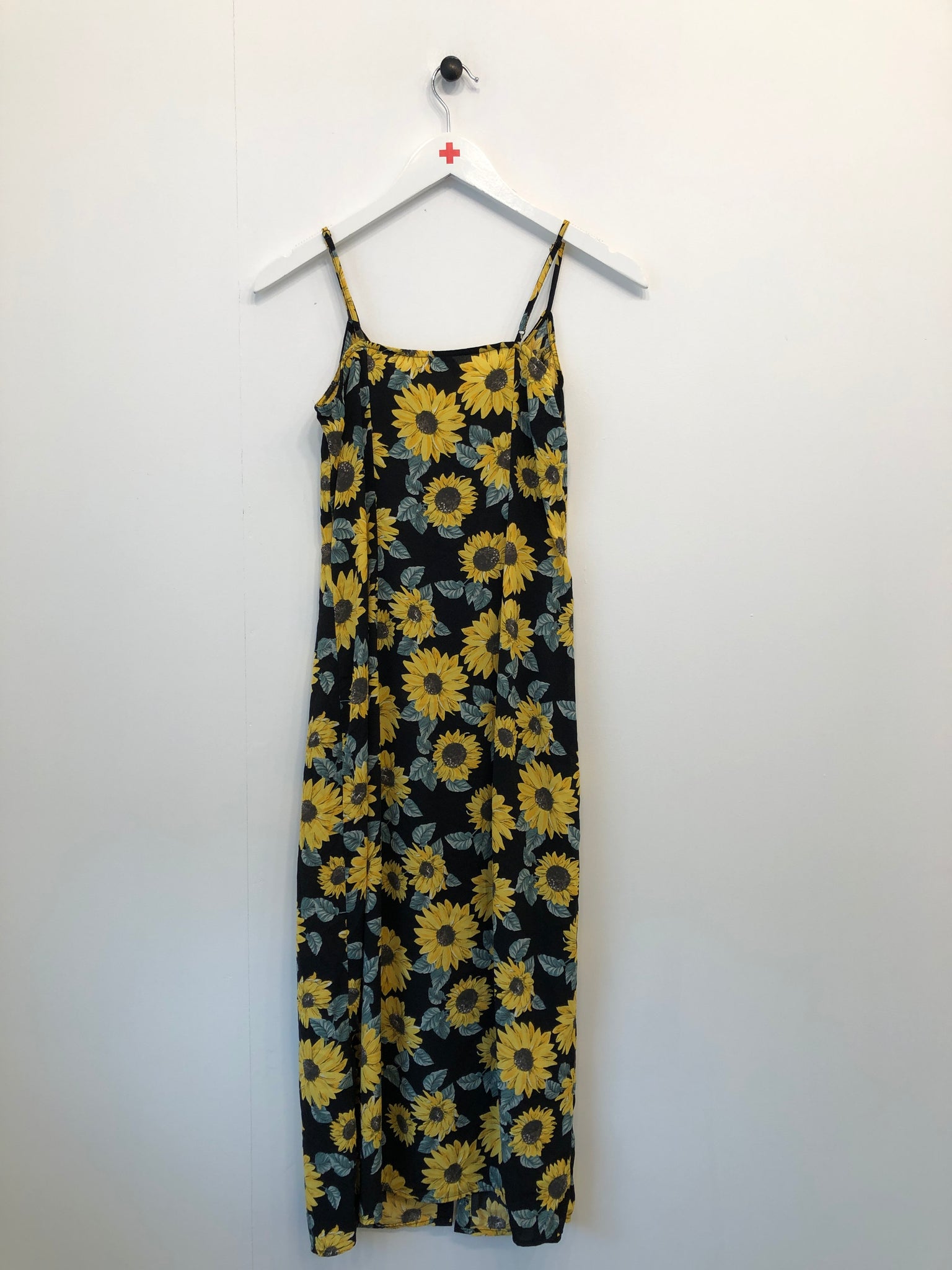 Flot blomstret sommerkjole med stropper, knappe åbning og 2 slidser som detalje.