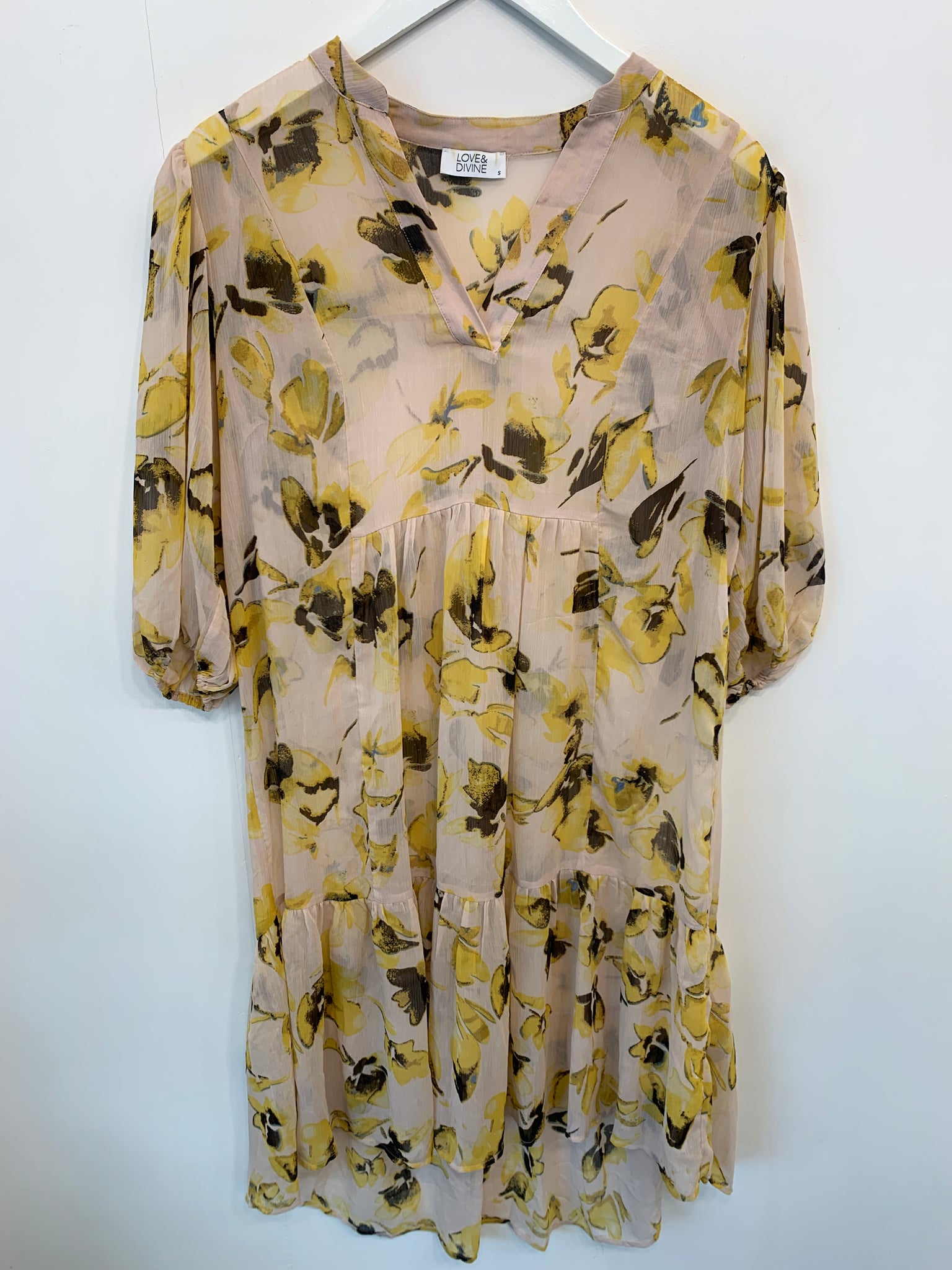 Smuk kjole med 3/4 ærmer.