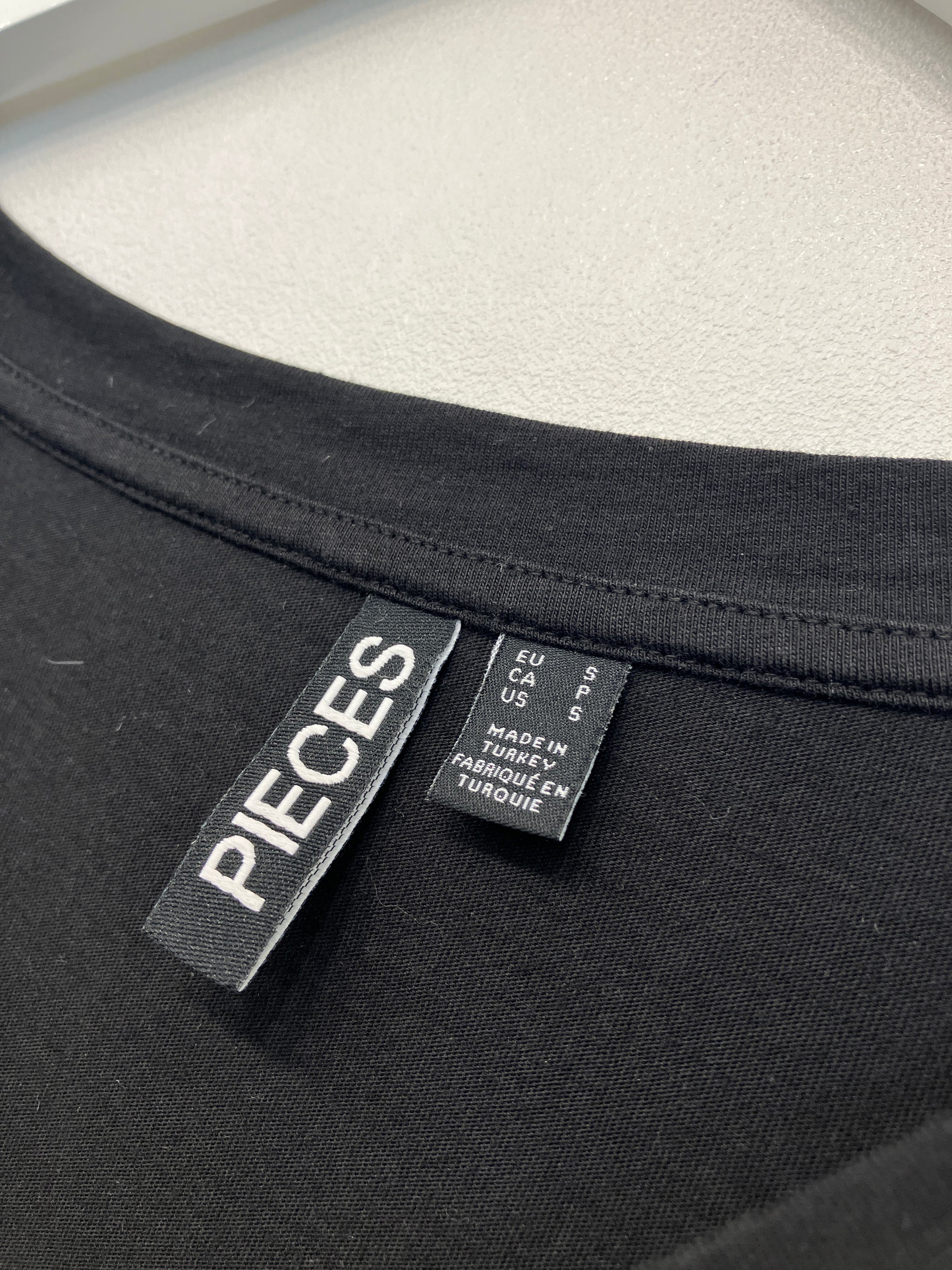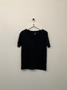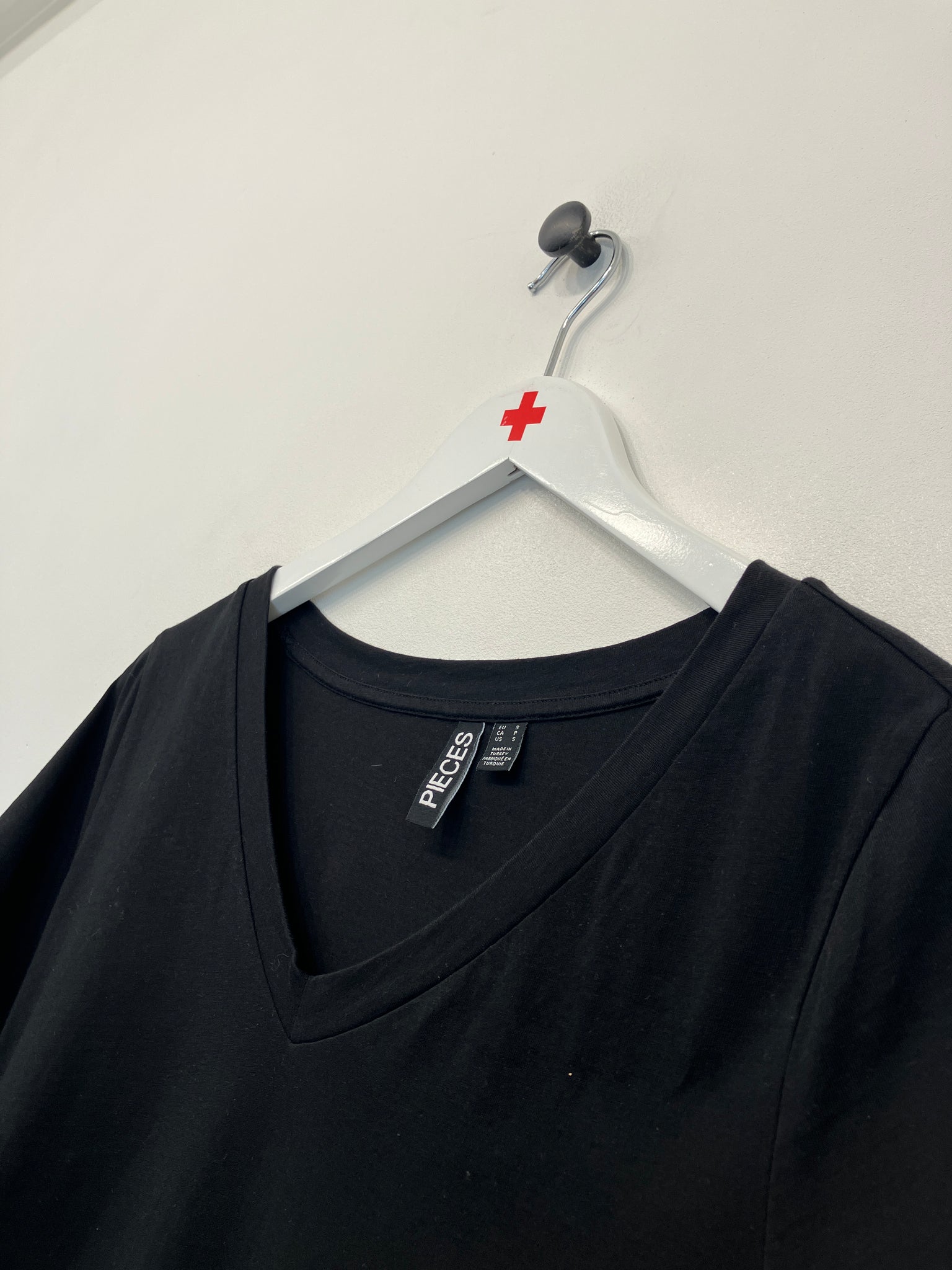 Klassisk basic T-shirt med V-udskæring og korte ærmer.