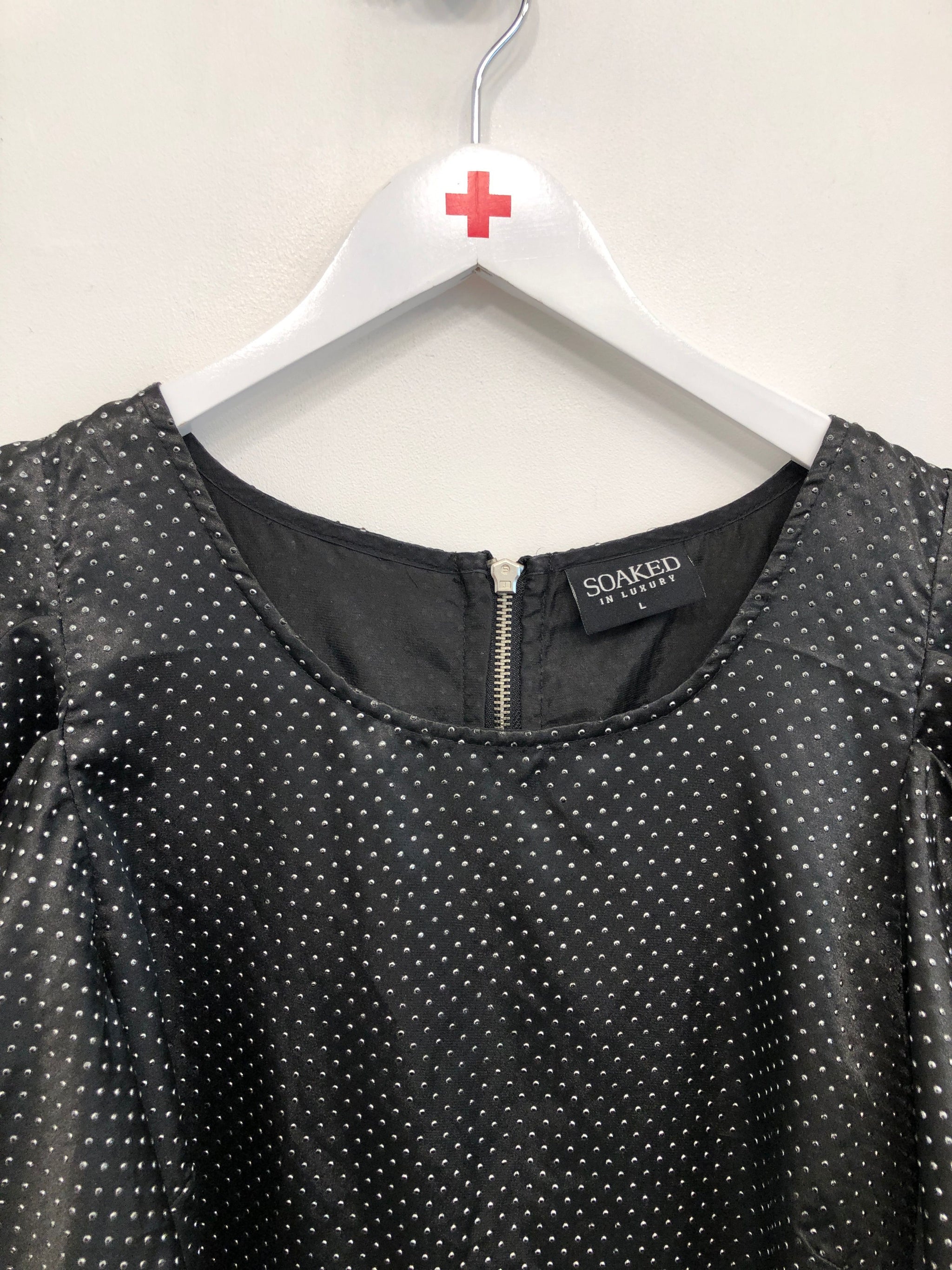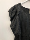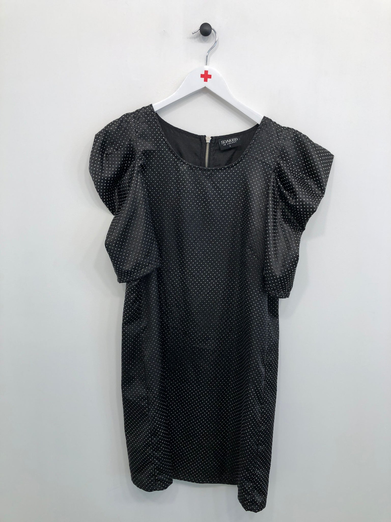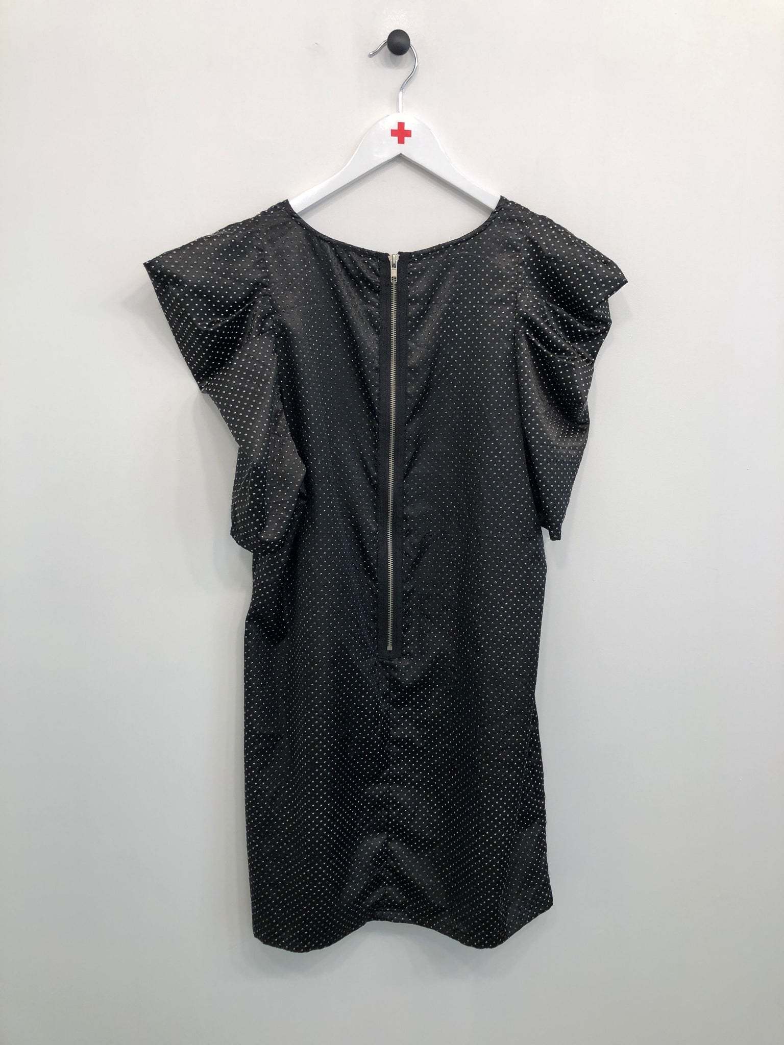 Elegant kjole med fine detaljer ved ærmer og lynlås i ryggen. Mangler vaskemærke.