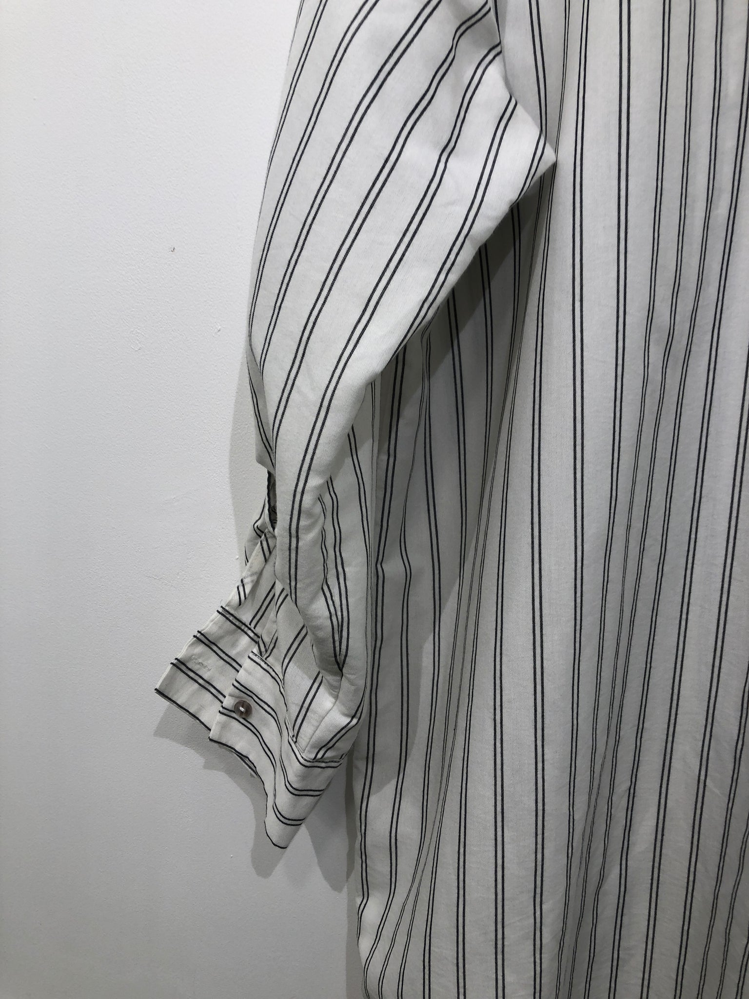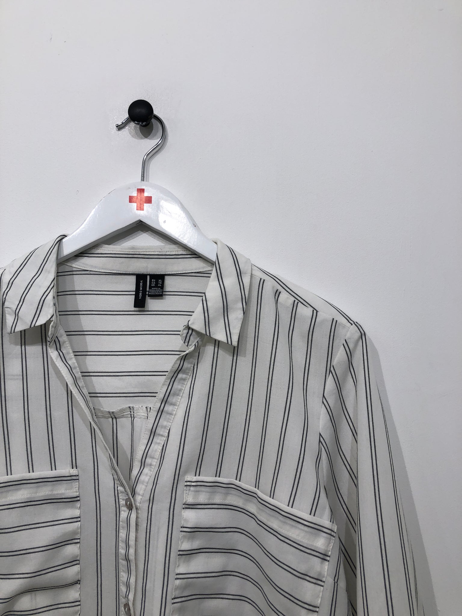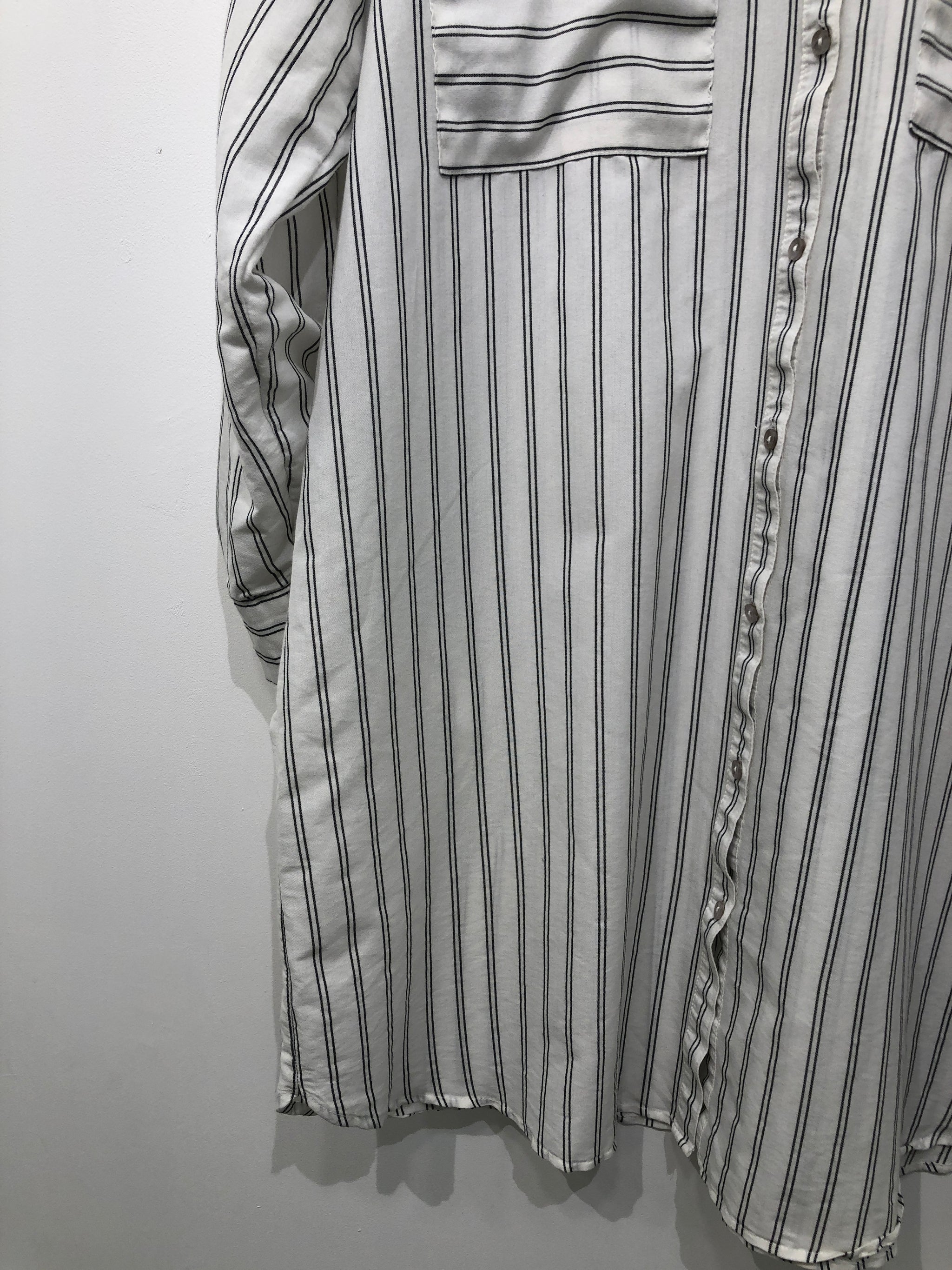 Chic lidt længere skjorte med lodrette striber, krave og brystlommer – elegant og modern.