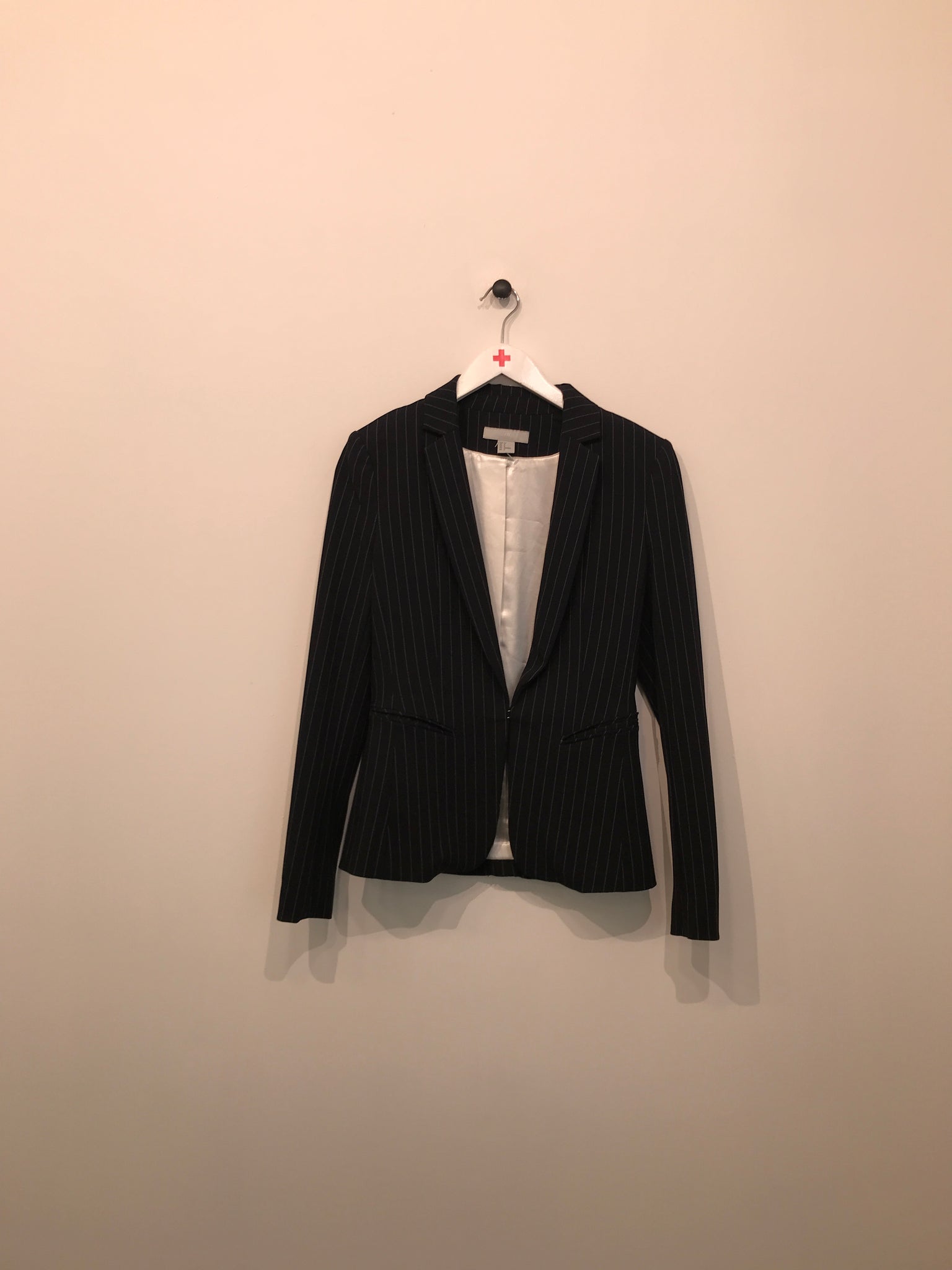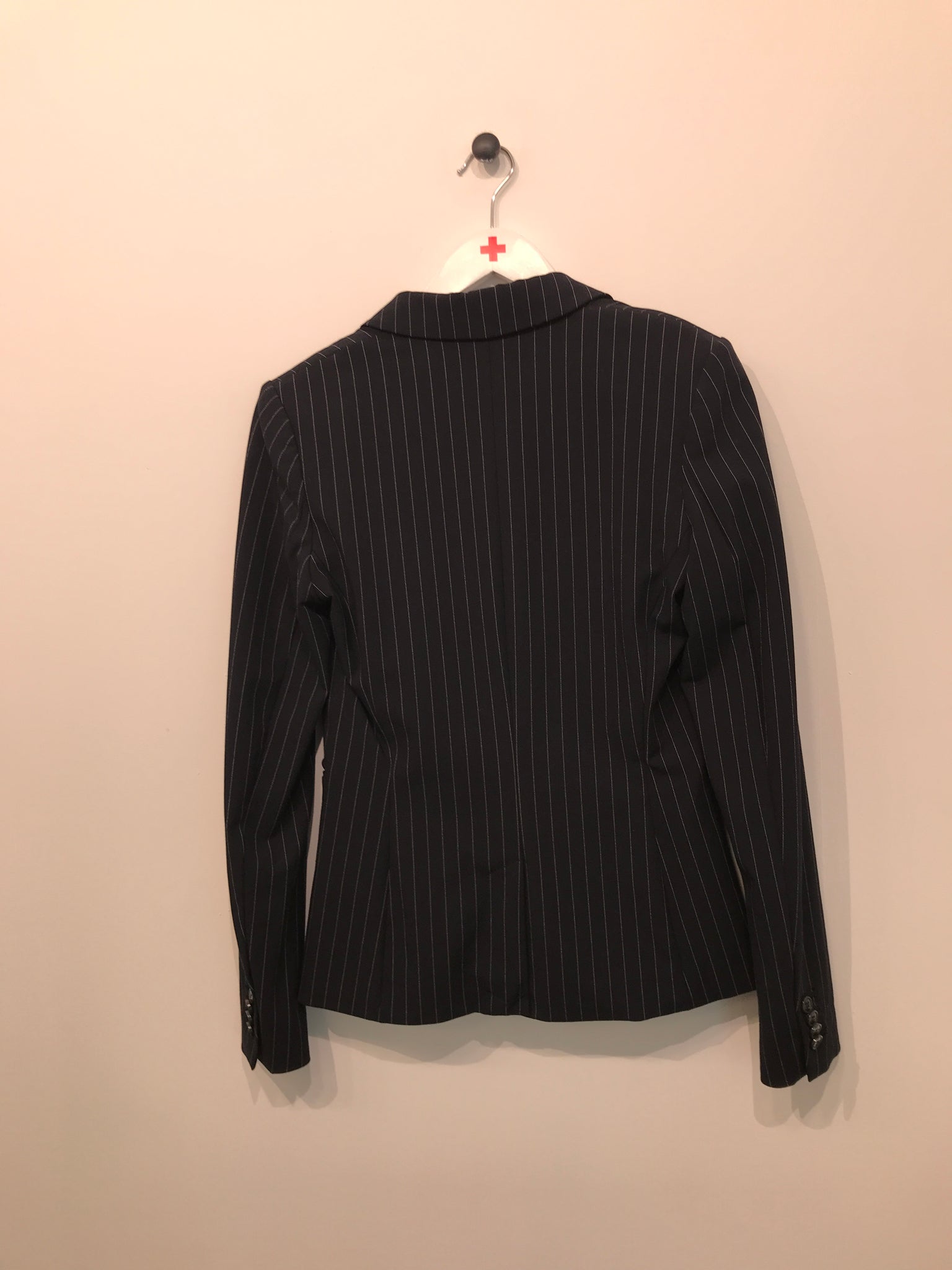 Blazer. Åbenstående med lukning på midt-front, lange ærmer med knapper nederst.