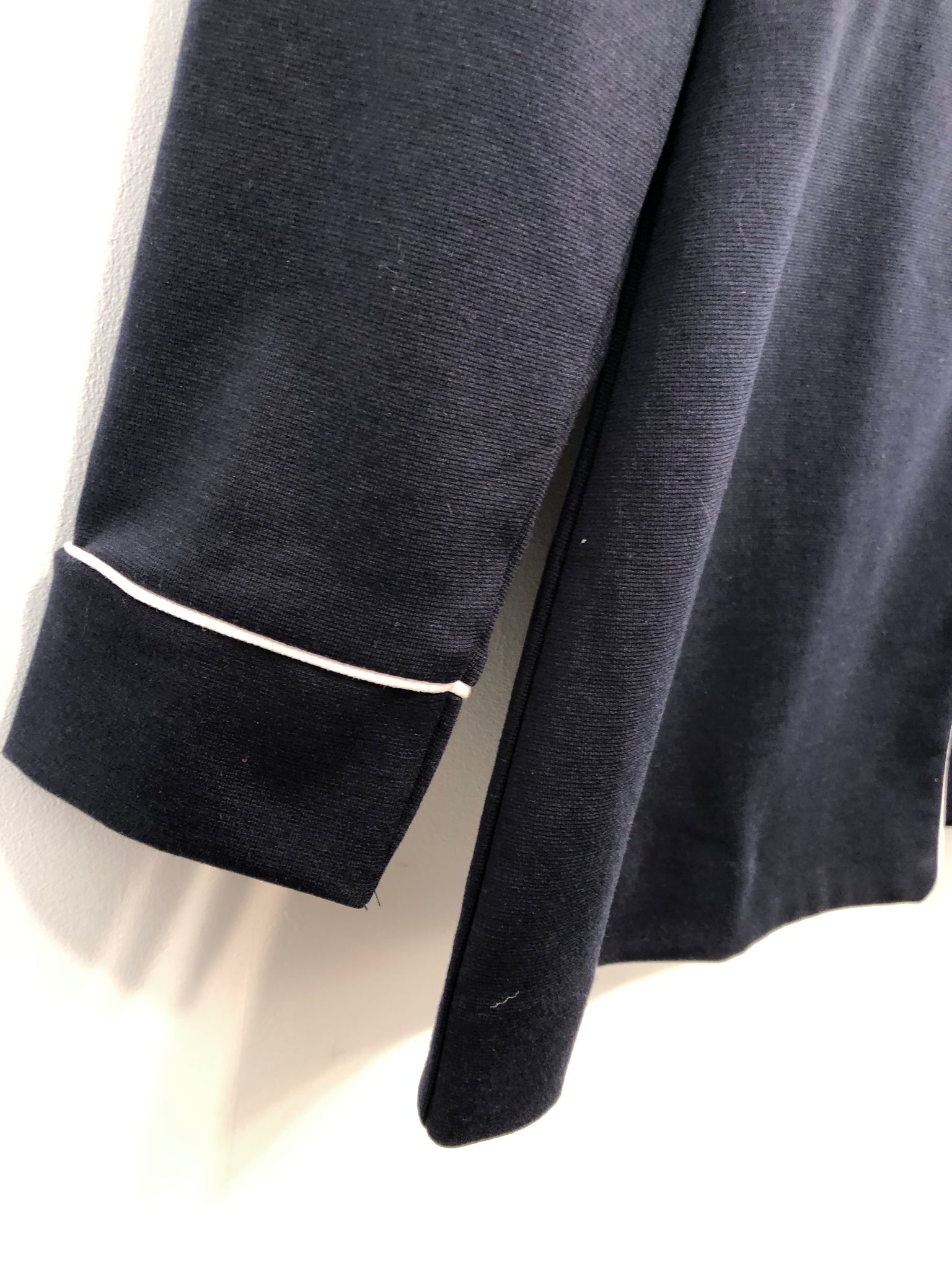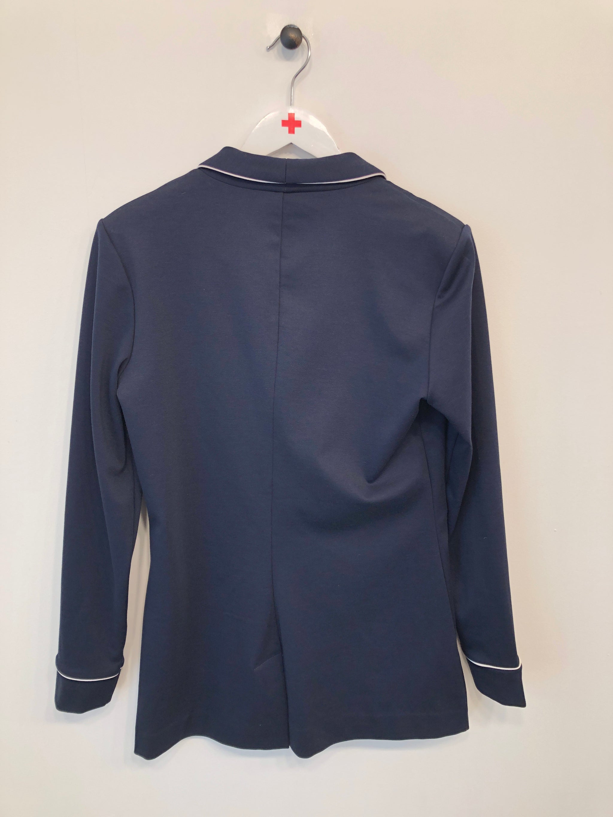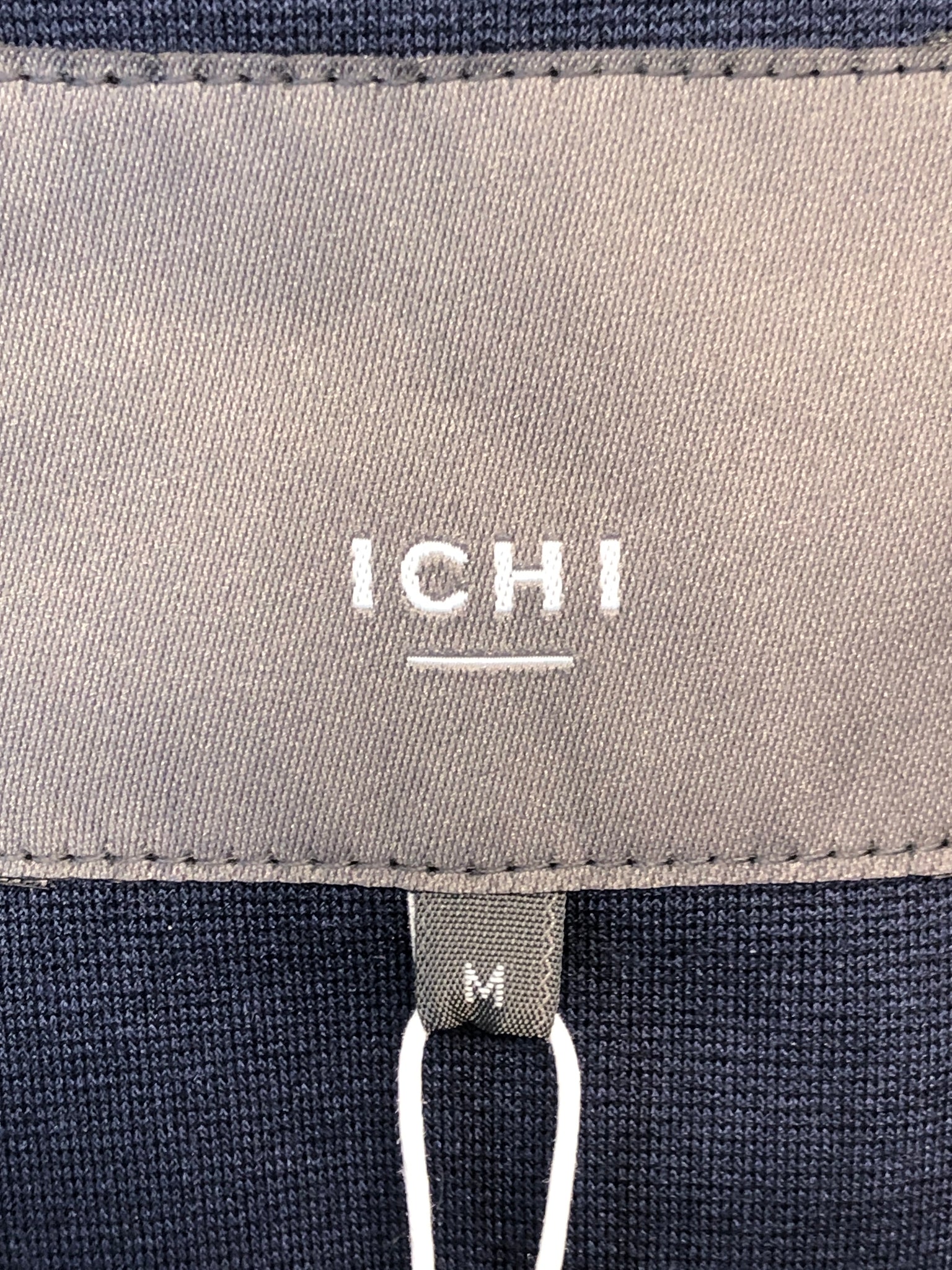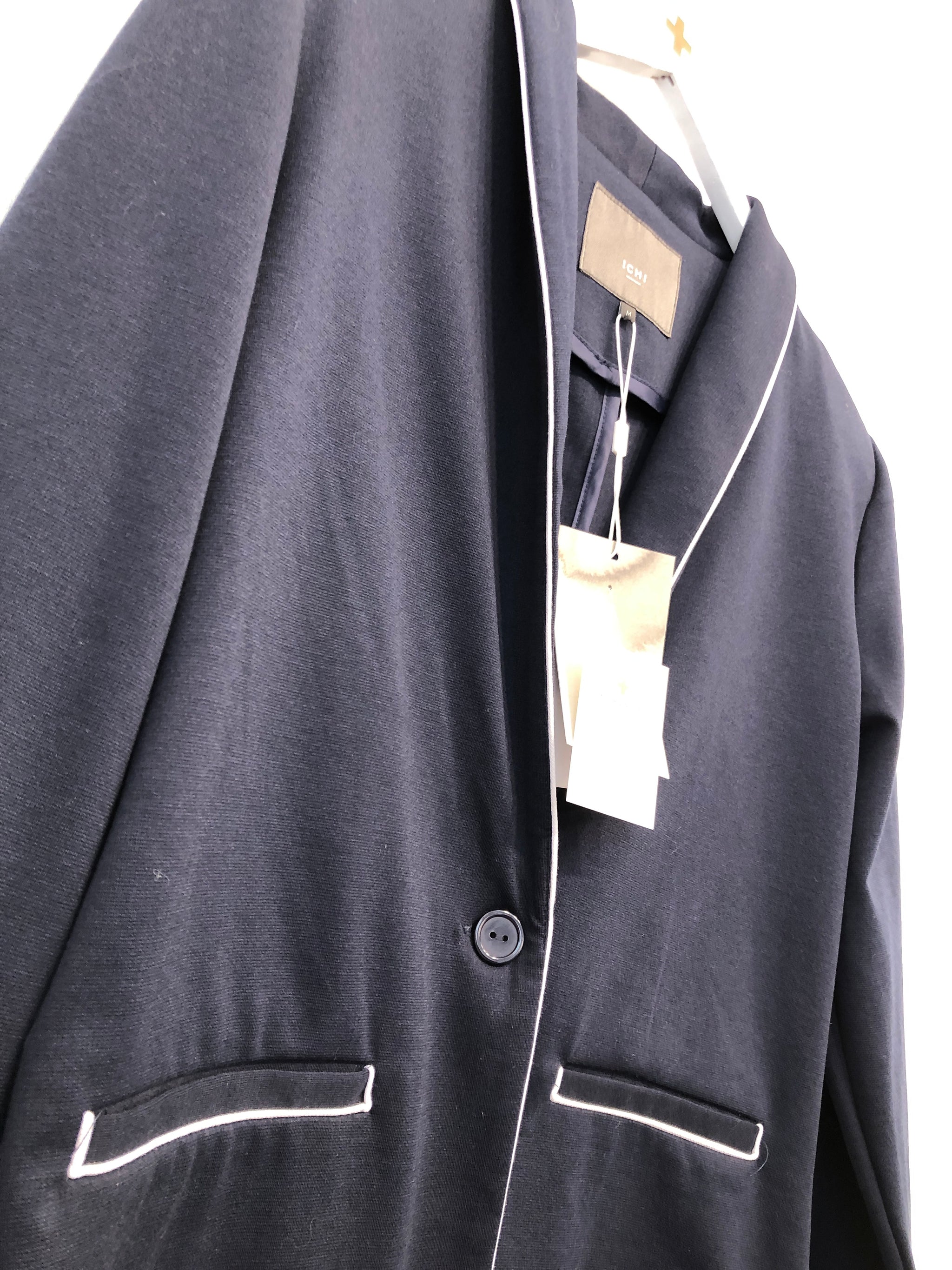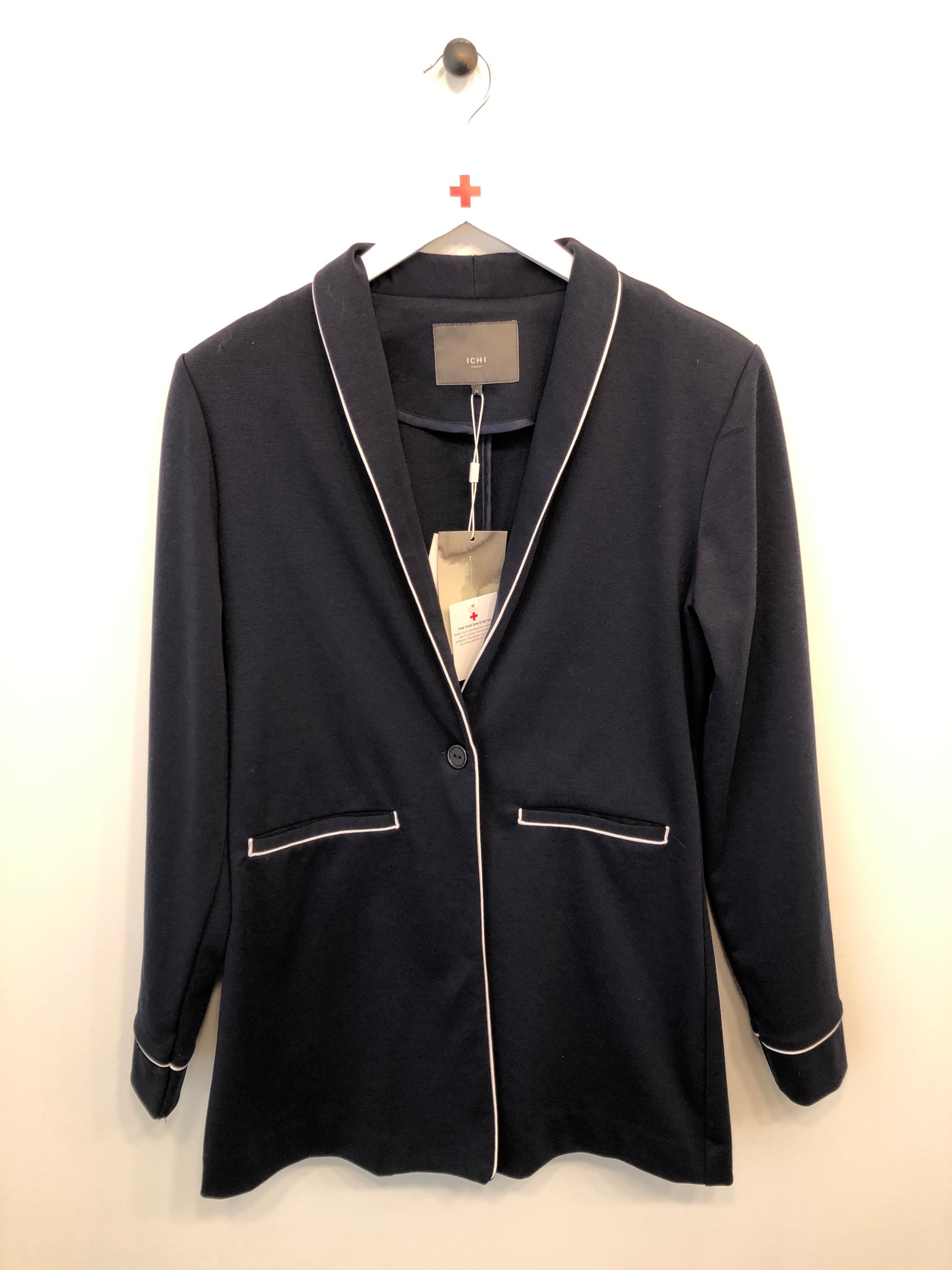 Elegant blazer fra ICHI med kontrast-hvide kanter langs krave, front og ærmer.