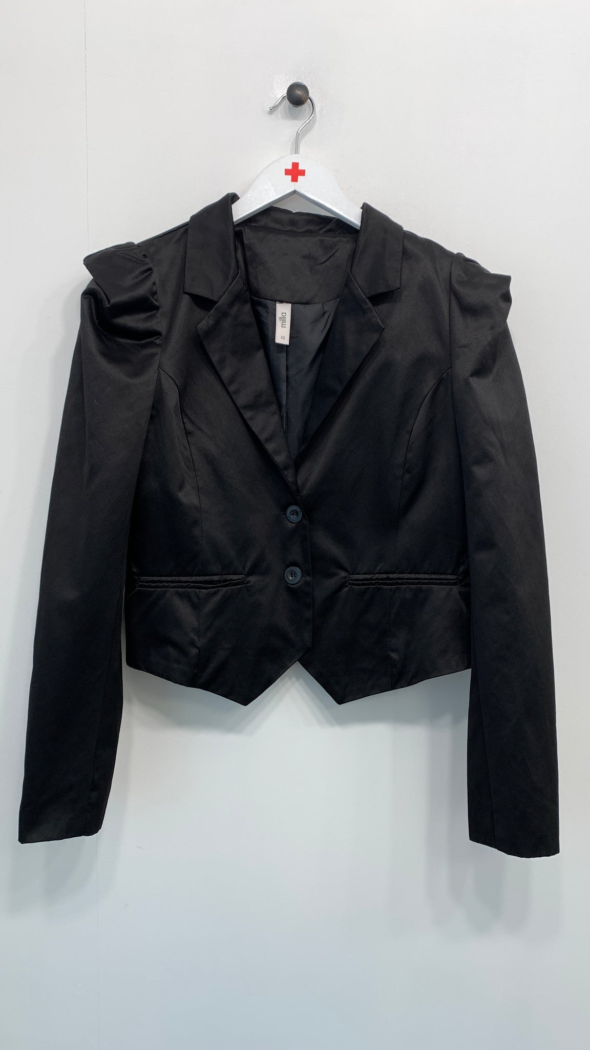 Yndig kort Milla blazer med flæsedetaljer ved skuldrene og fin knaplukning foran.