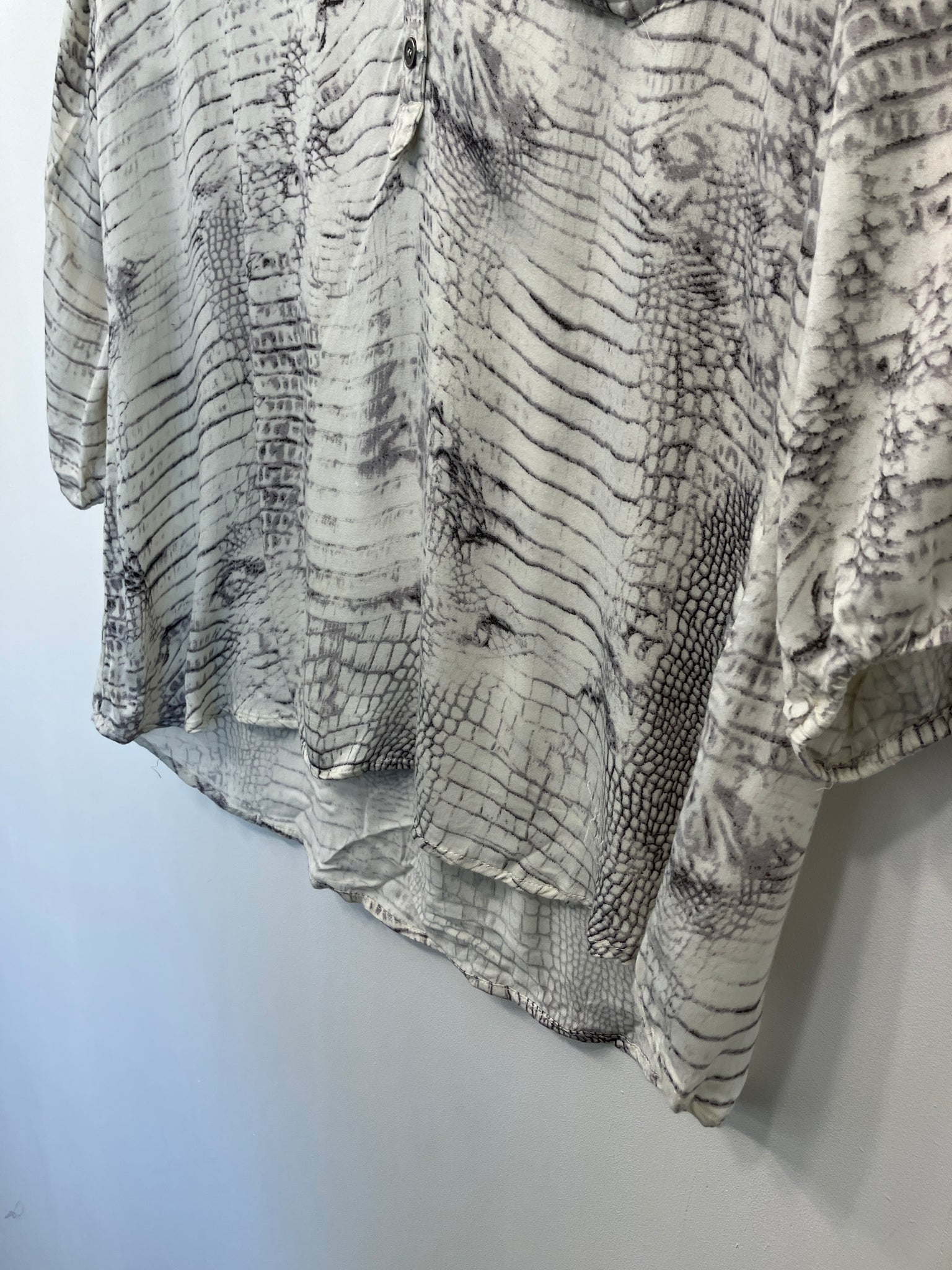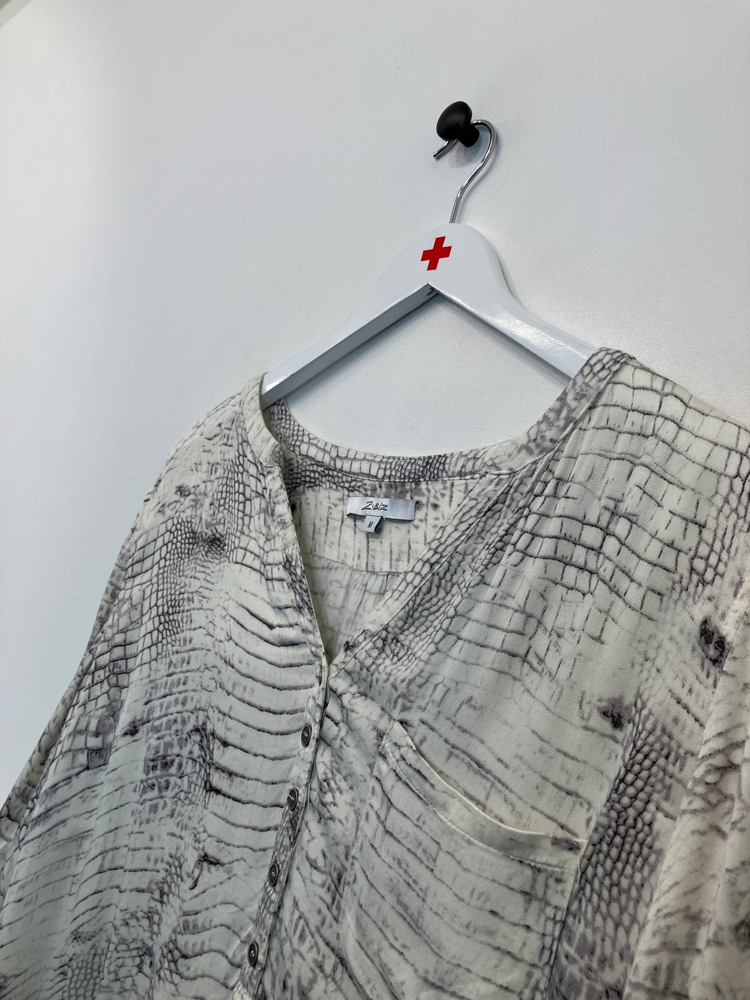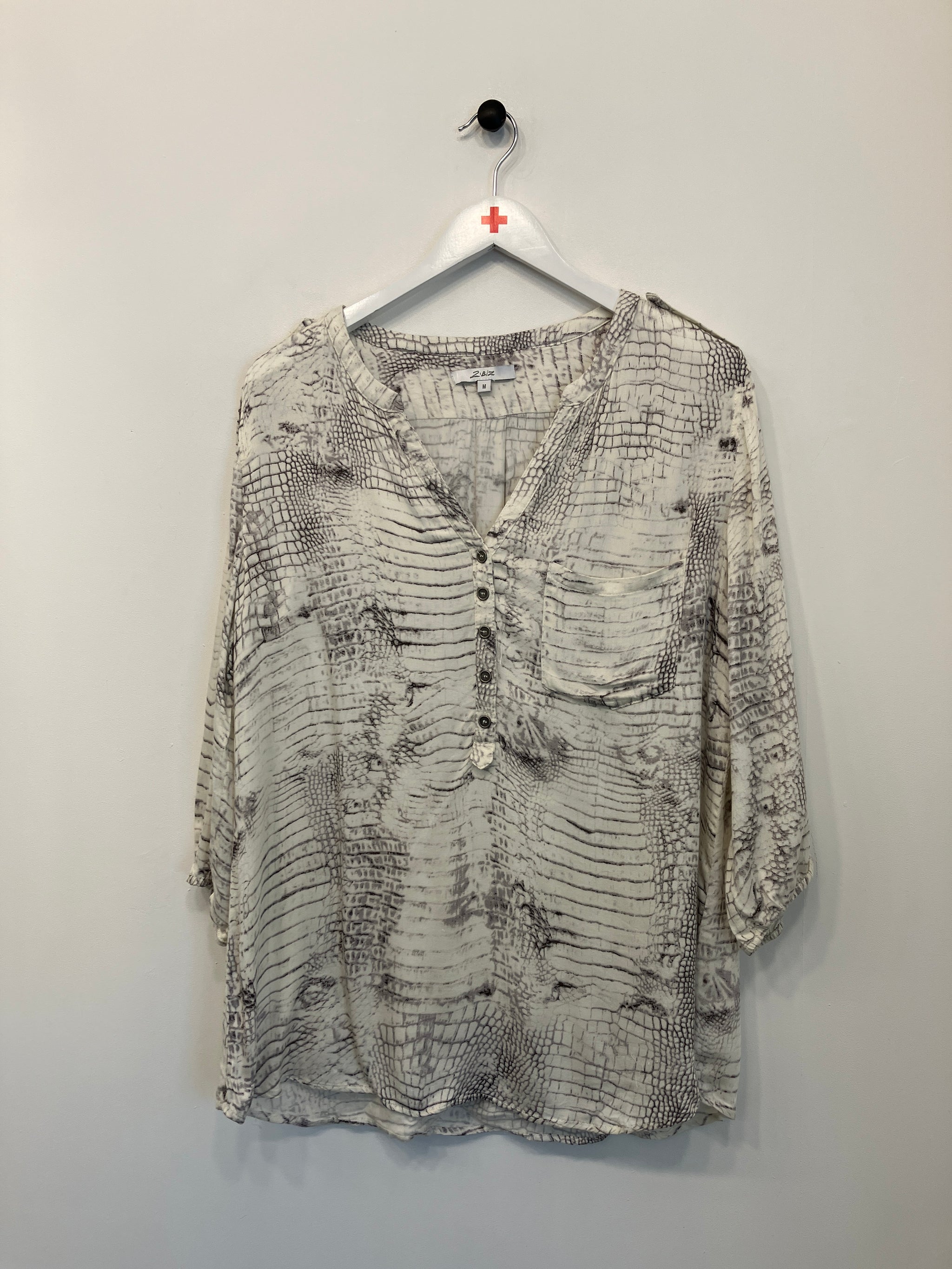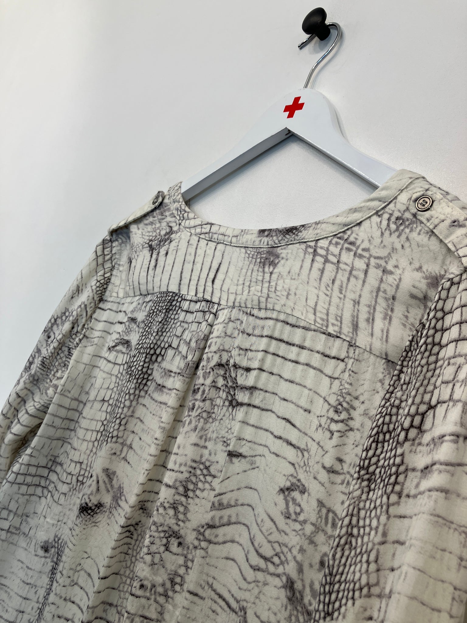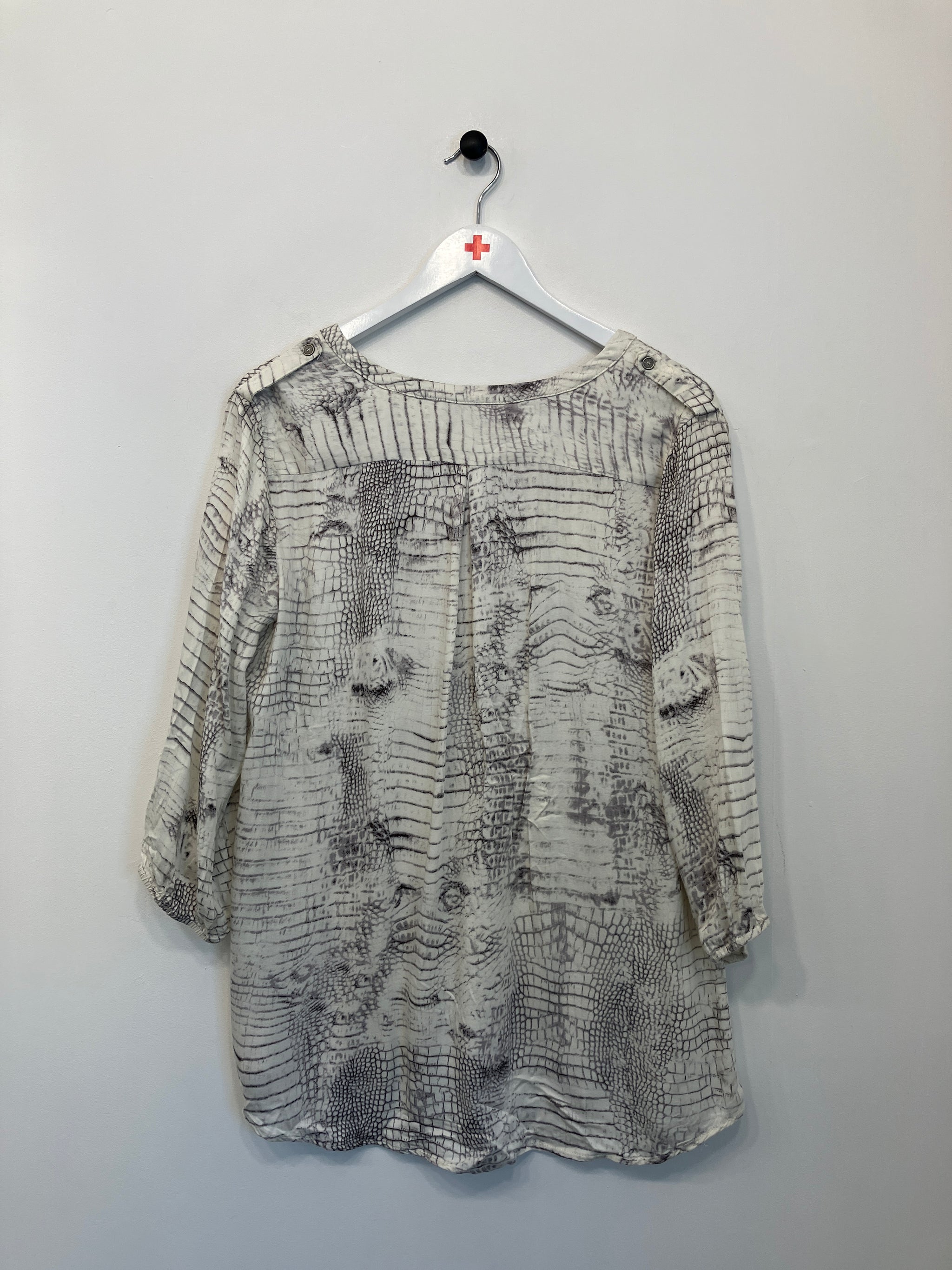 Da vi sælger brugt tøj, der er blevet vasket, kan vi ikke garantere, at størrelsesangivelsen ligger inden for en standardskala.