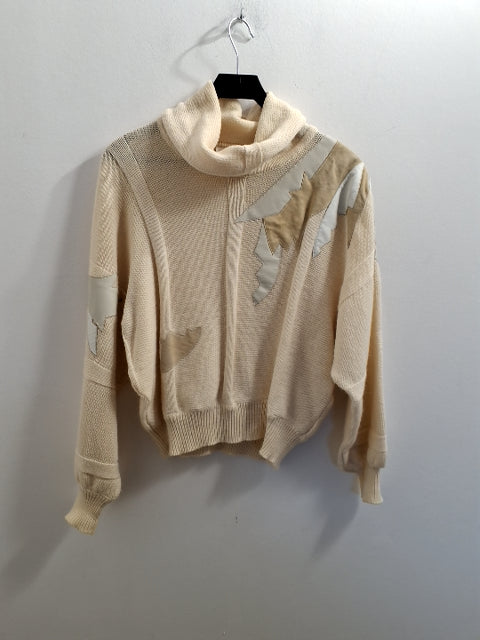 O296 Trøjen har en høj hals, afslappet pasform og er fremstillet af strikket materiale med applikationer.