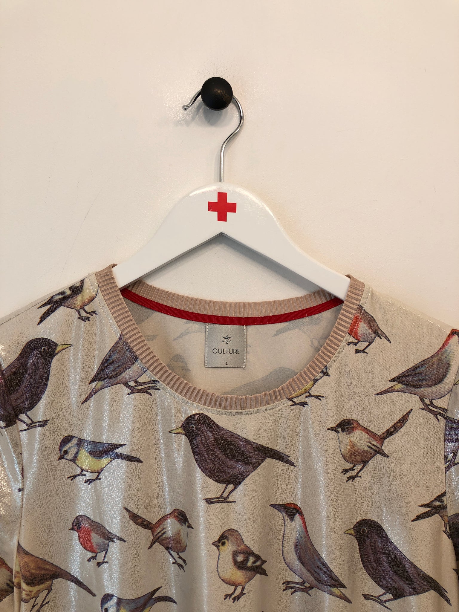 Da vi sælger brugt tøj, der er blevet vasket, kan vi ikke garantere, at størrelsesangivelsen ligger inden for en standardskala.