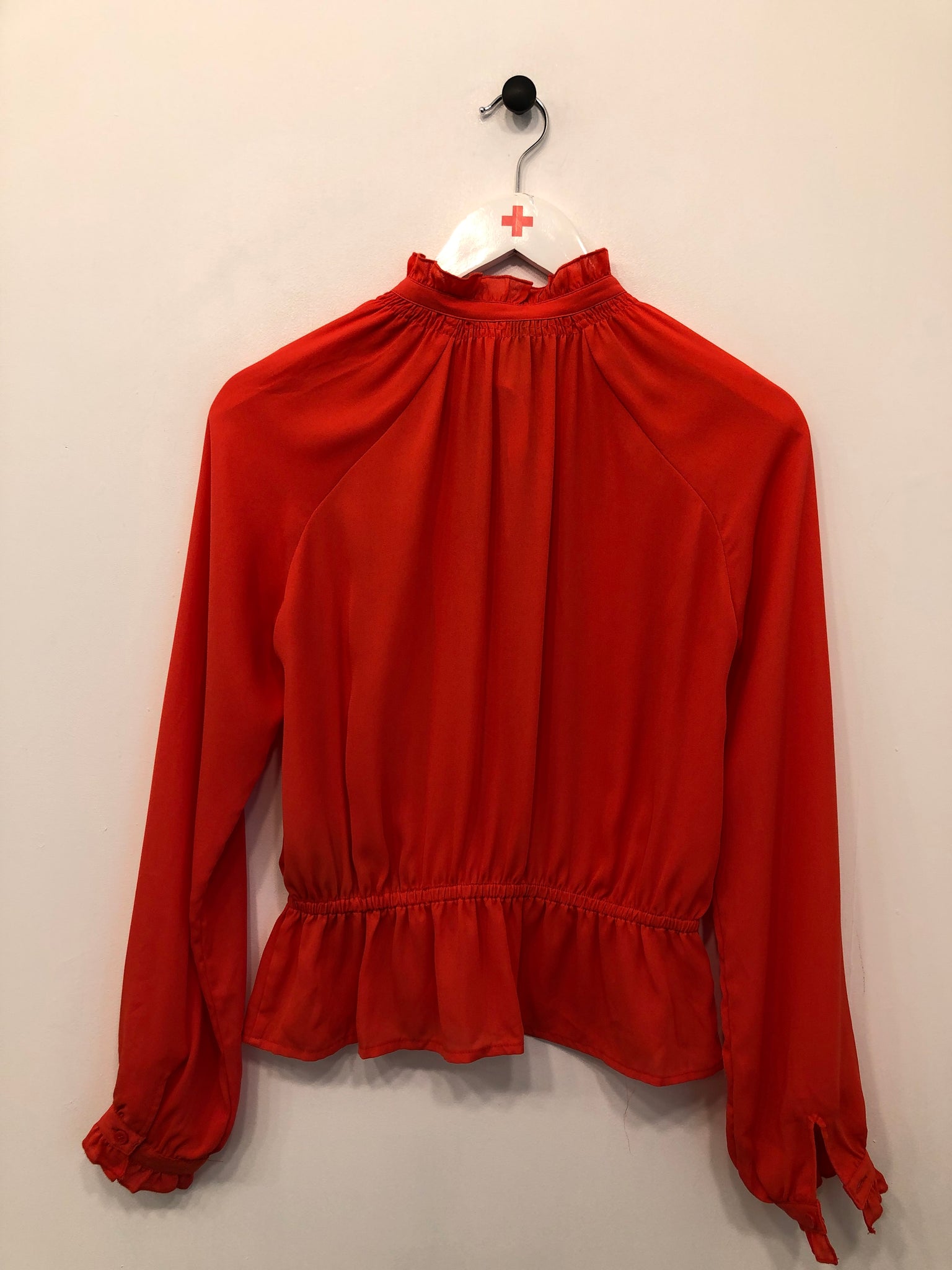 Fin bluse med krave og flæser.