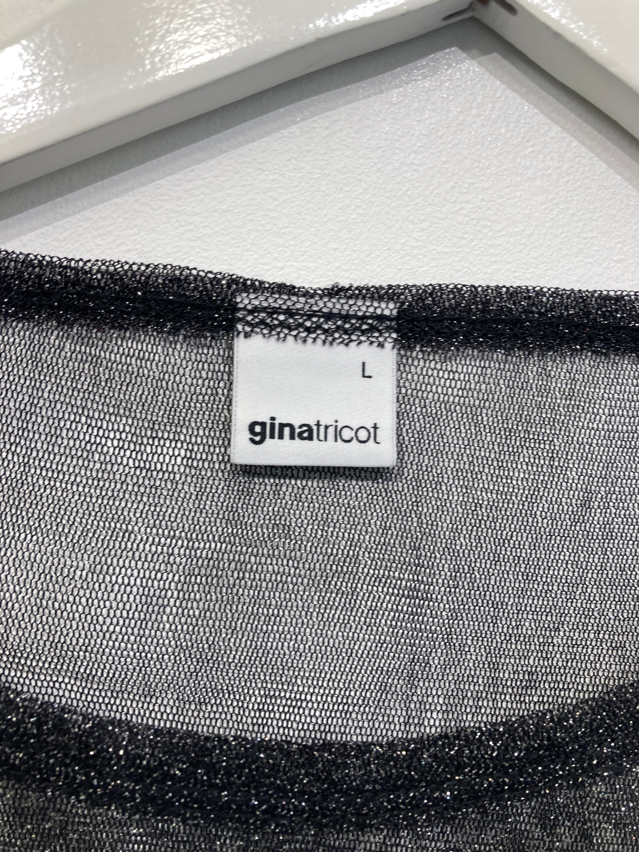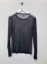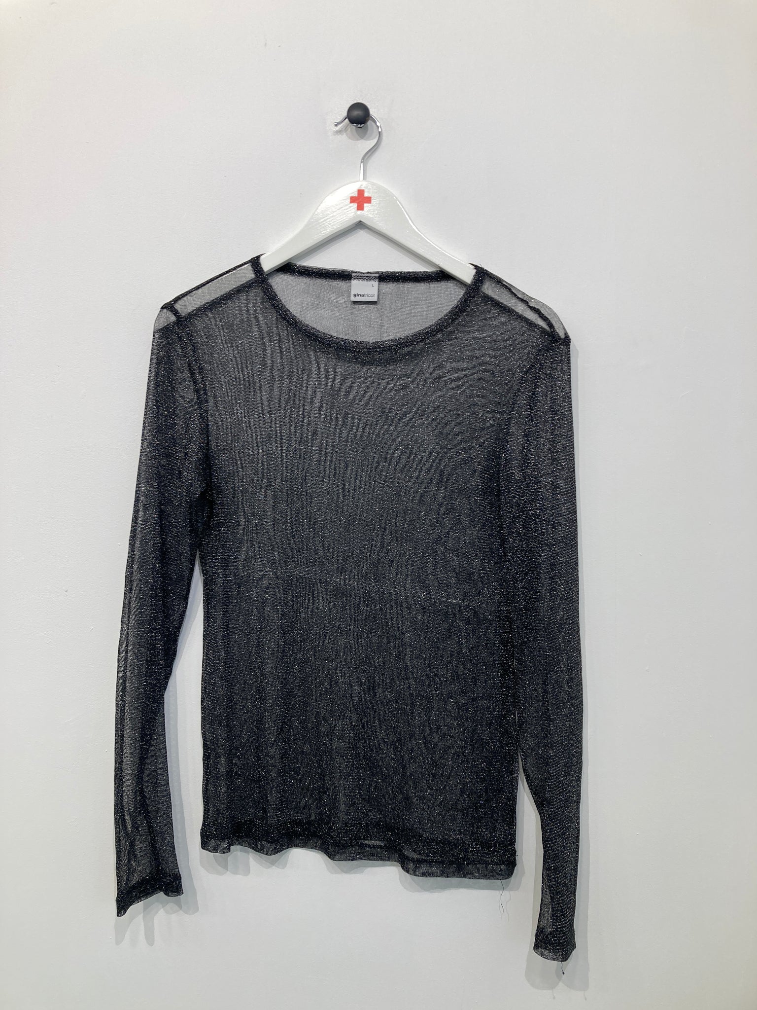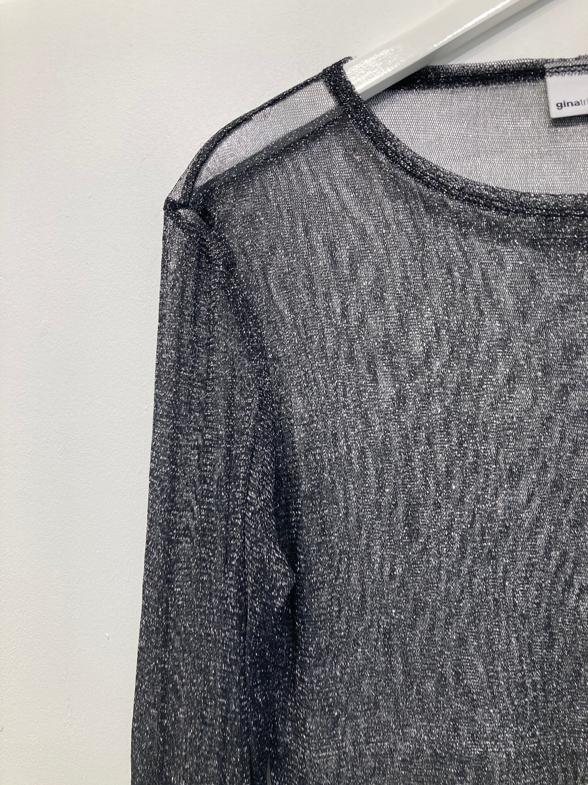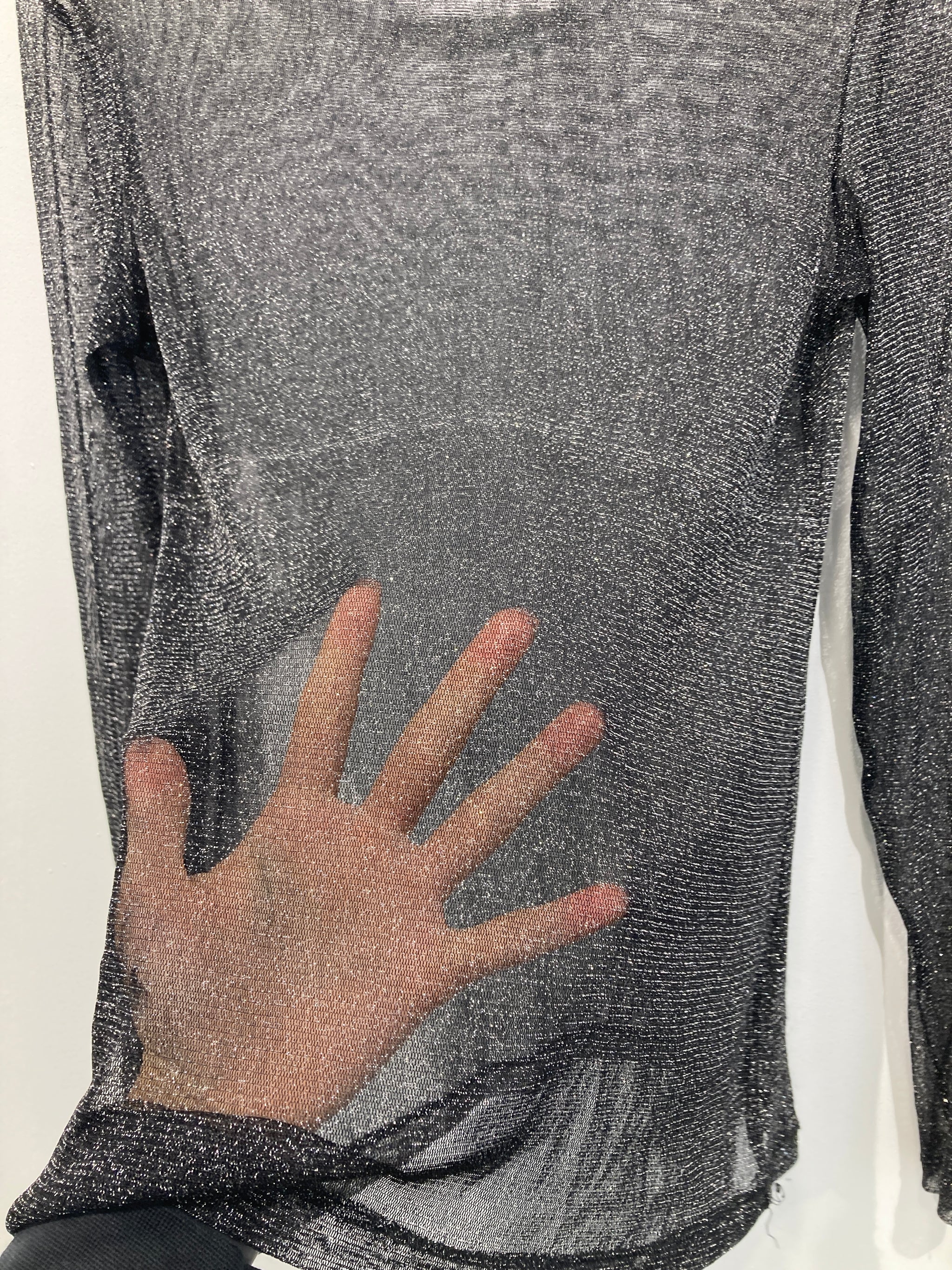 Langærmet bluse med rund halsudskæring. Blusen er gennemsigtig.