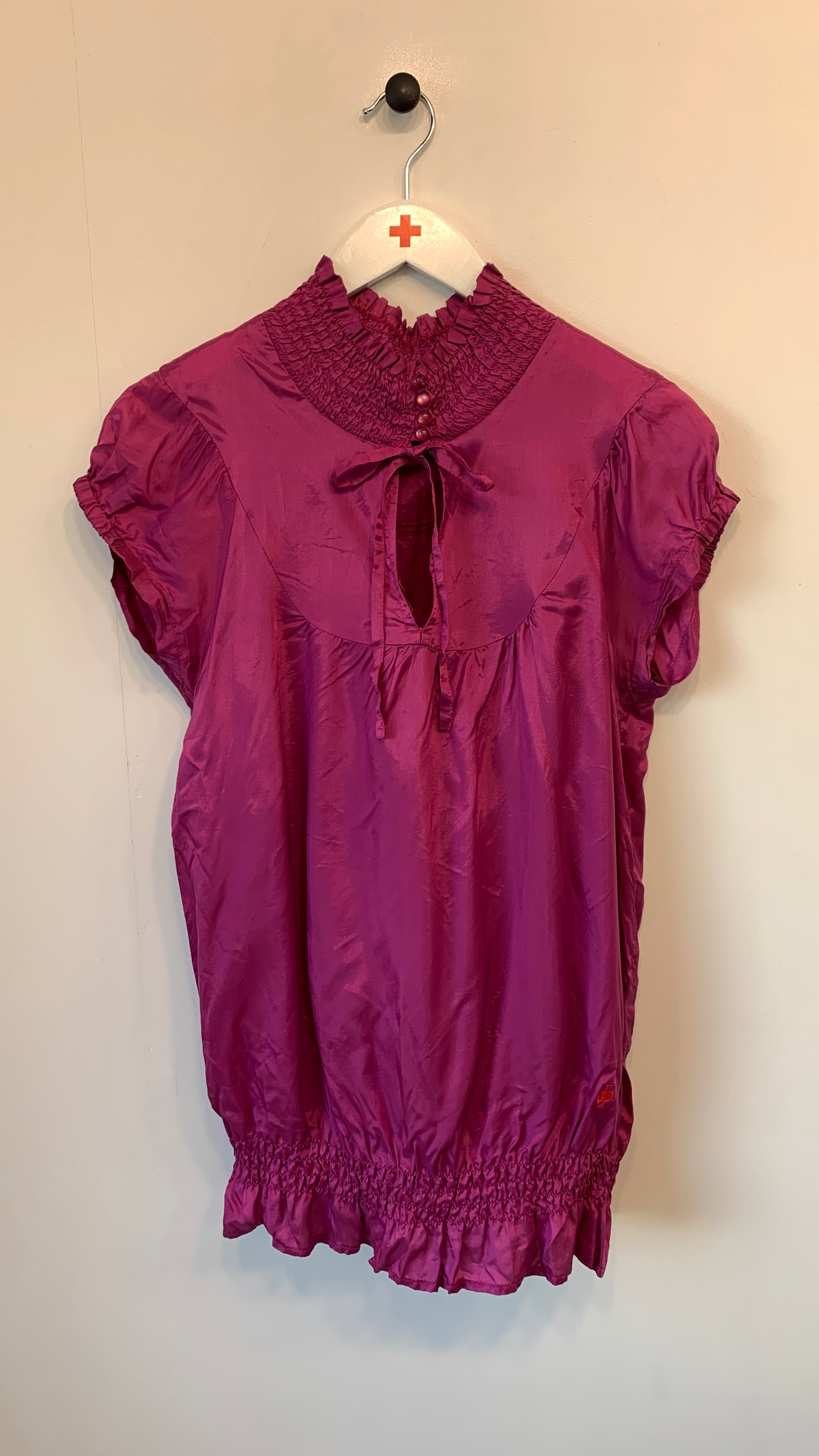 Kortærmet bluse med sløjfe foran