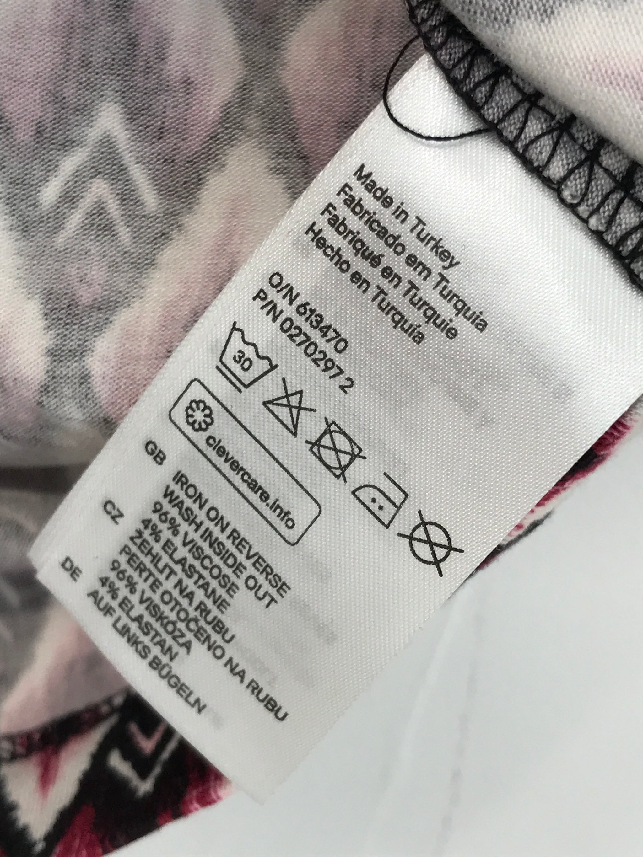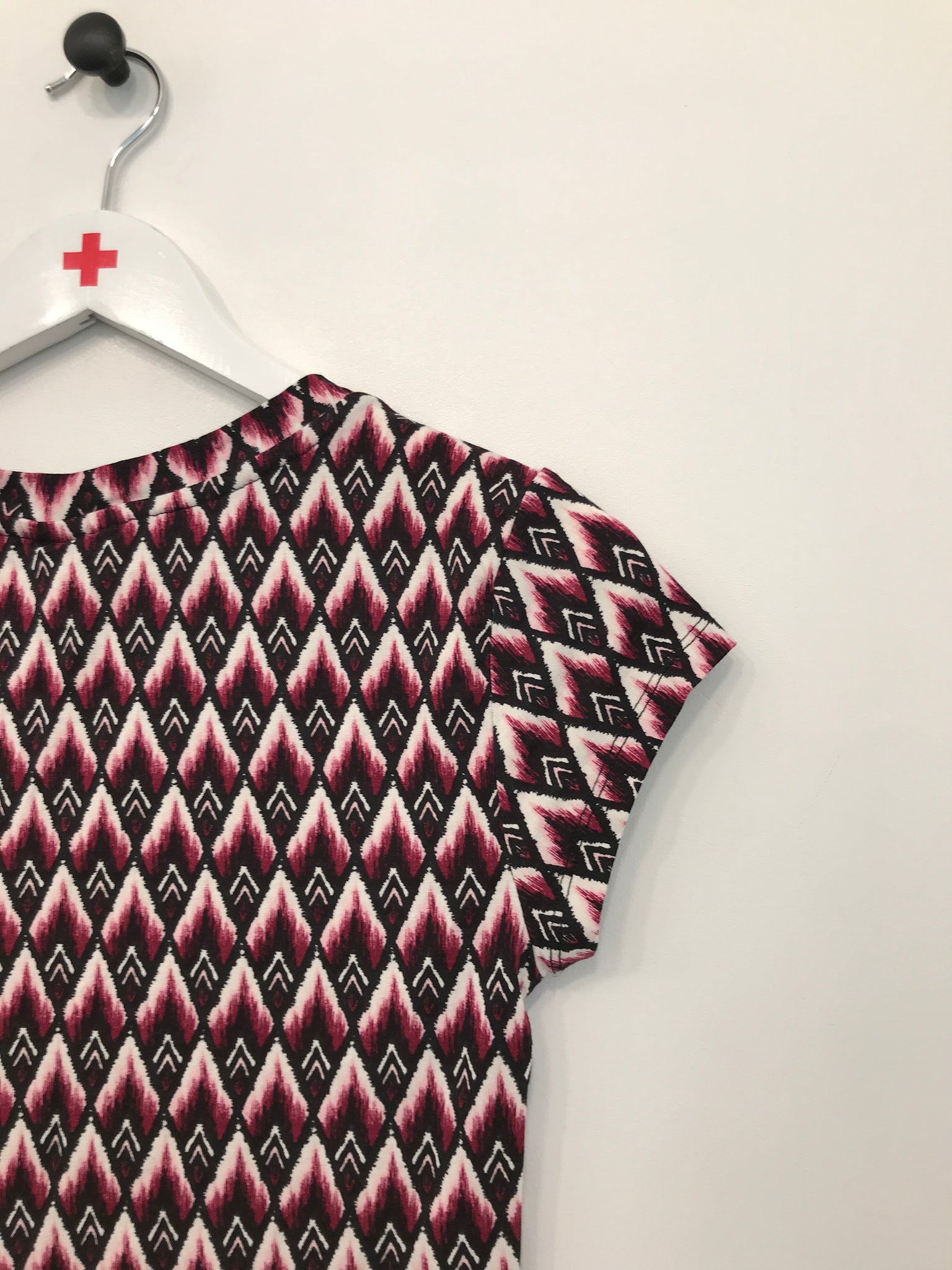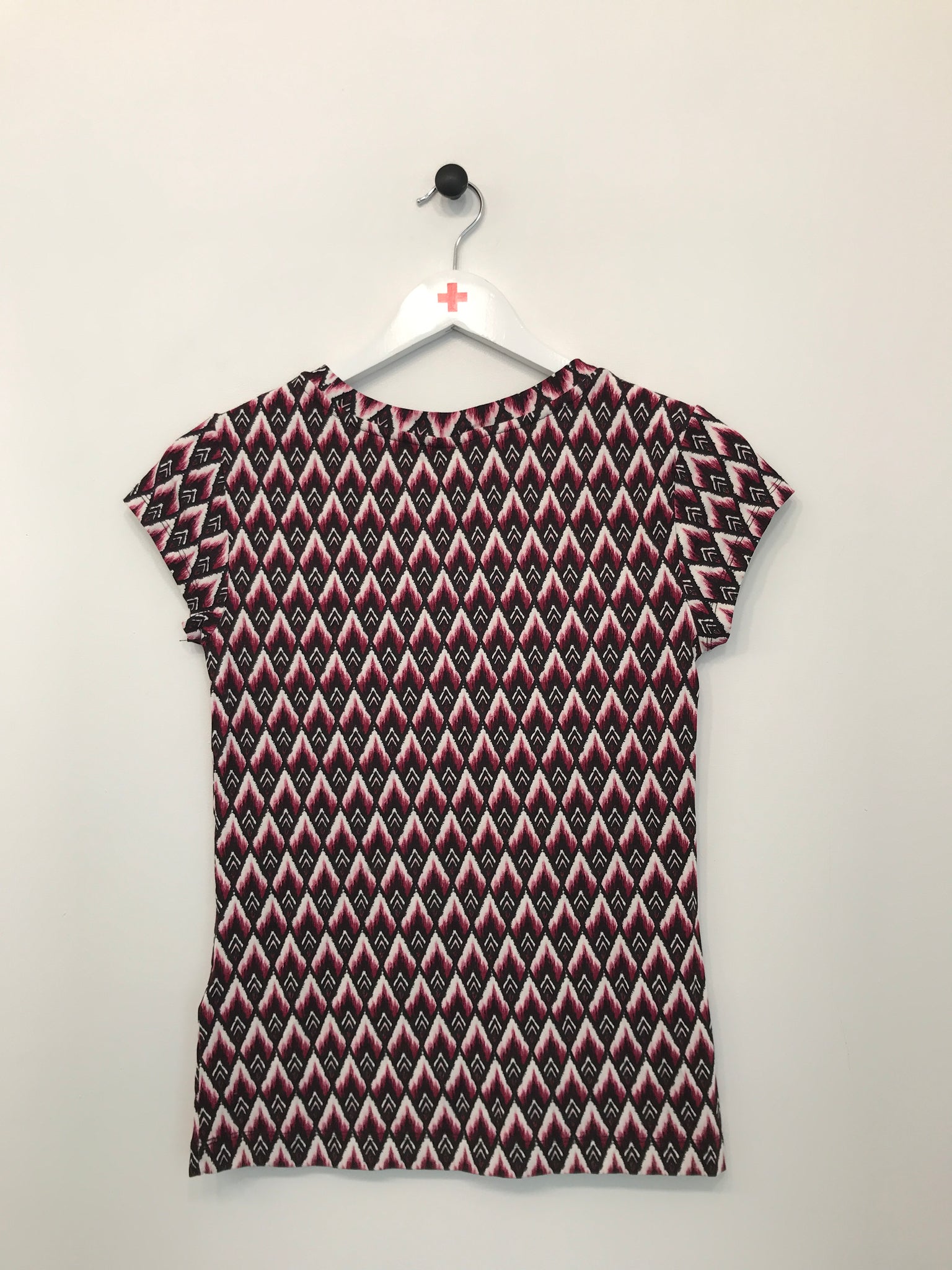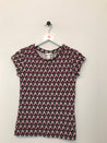 Fin kortærmet H&M bluse med rund halsudskæring og flot mønster.