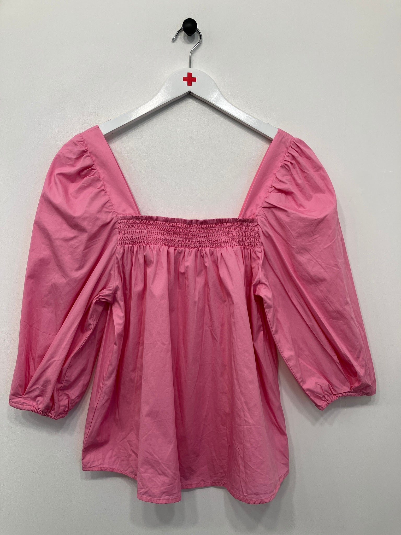 Sød bluse med firkantet halsudskæring og smock detalje. Mangler vaskemærke.