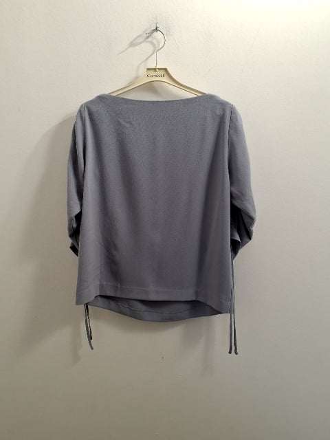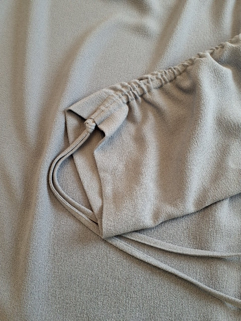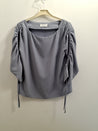 O457 Blusen har en løs pasform med puffede ærmer og justerbare snore.