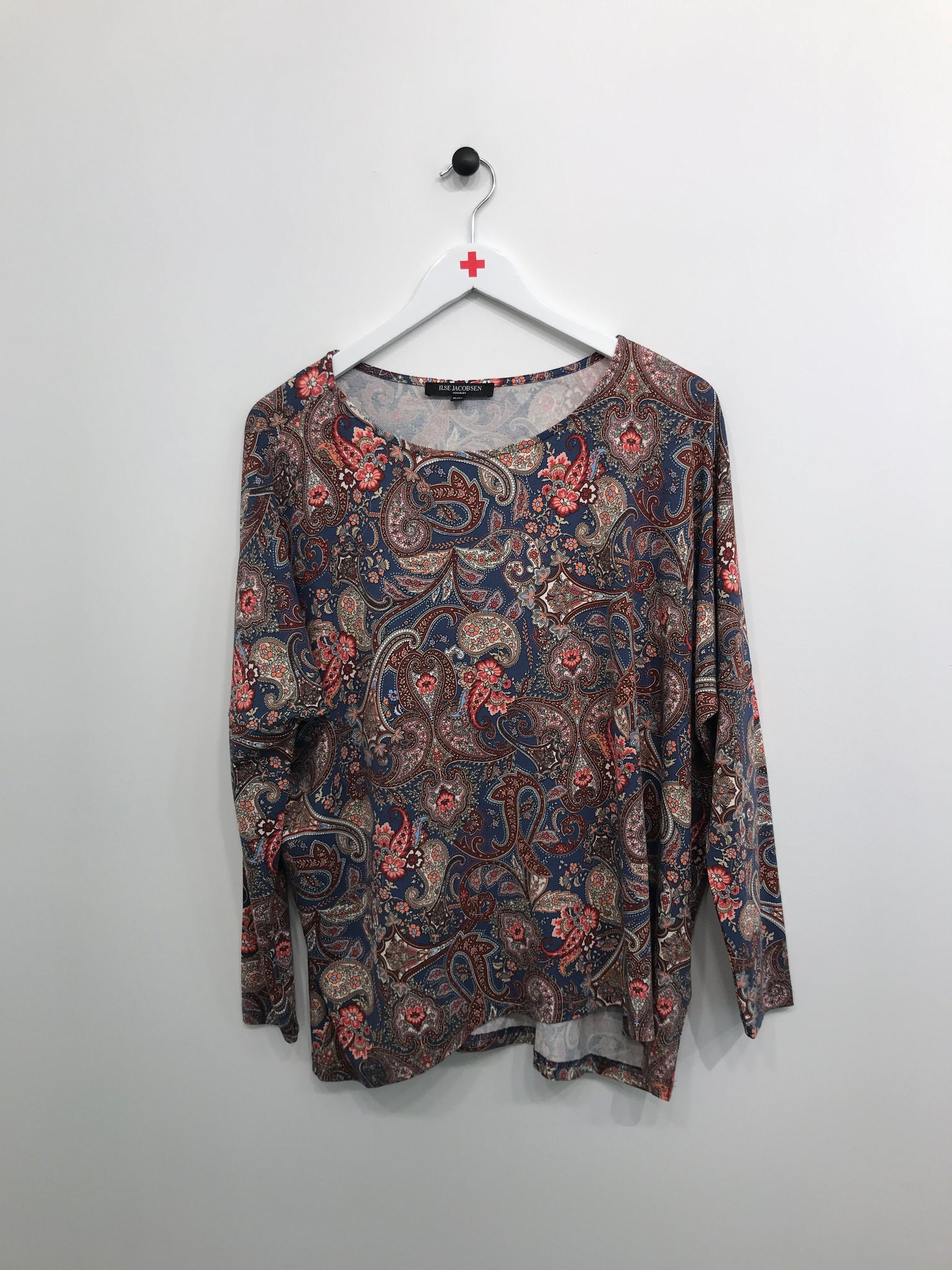 Pæn bluse med rund hals og lange ærmer.