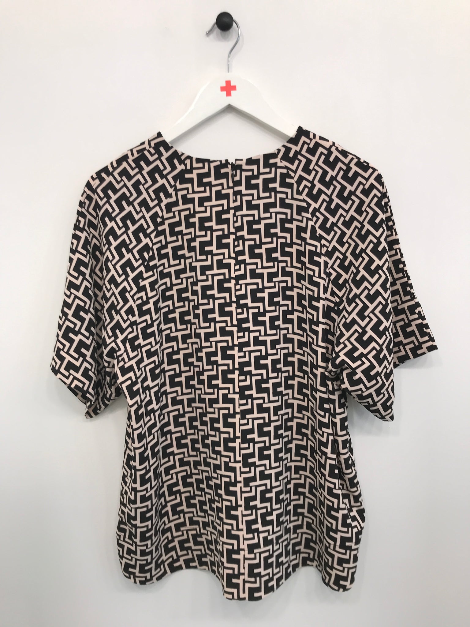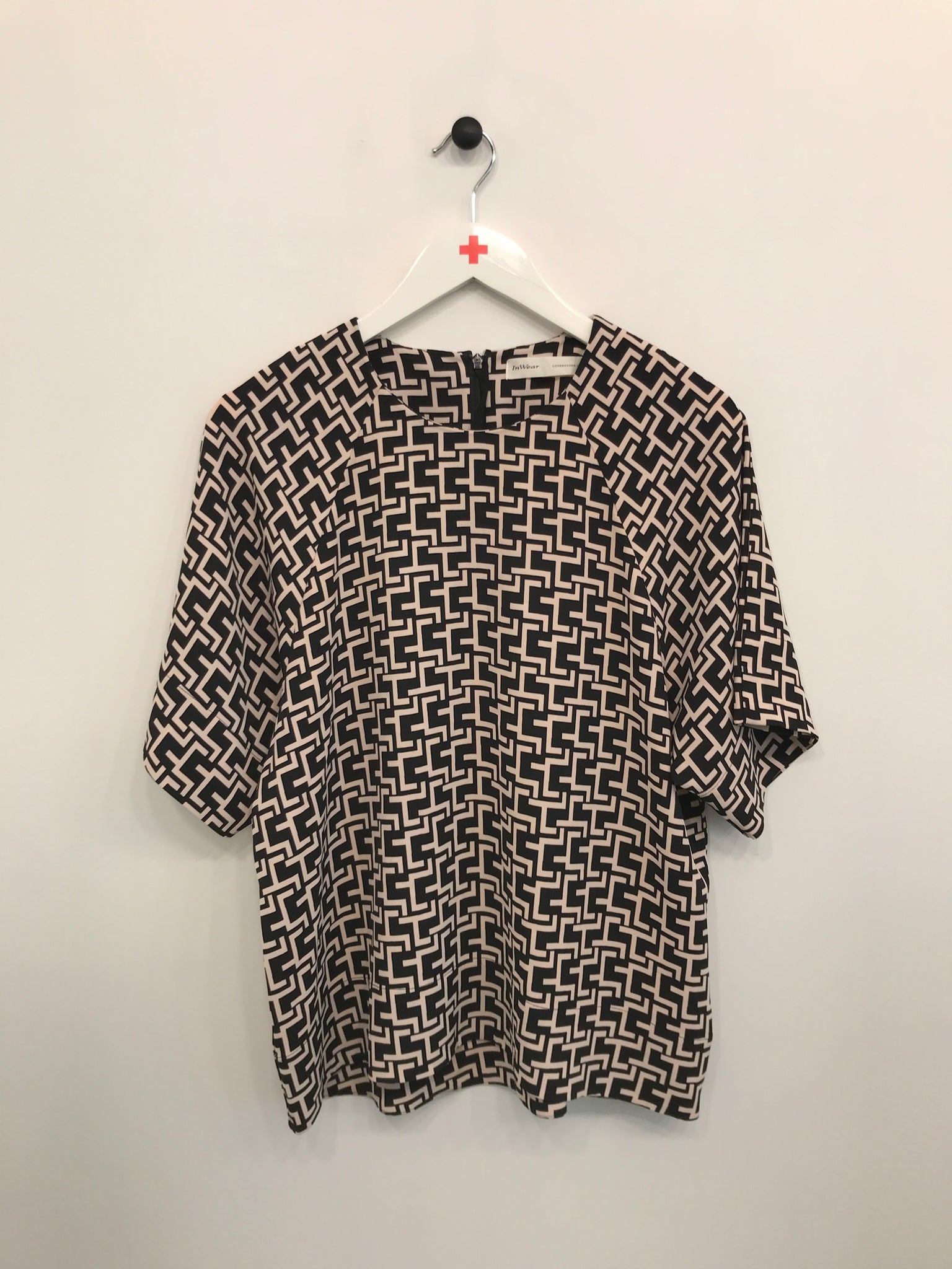 Kortærmet bluse med fine detaljer og lynlås i nakken.