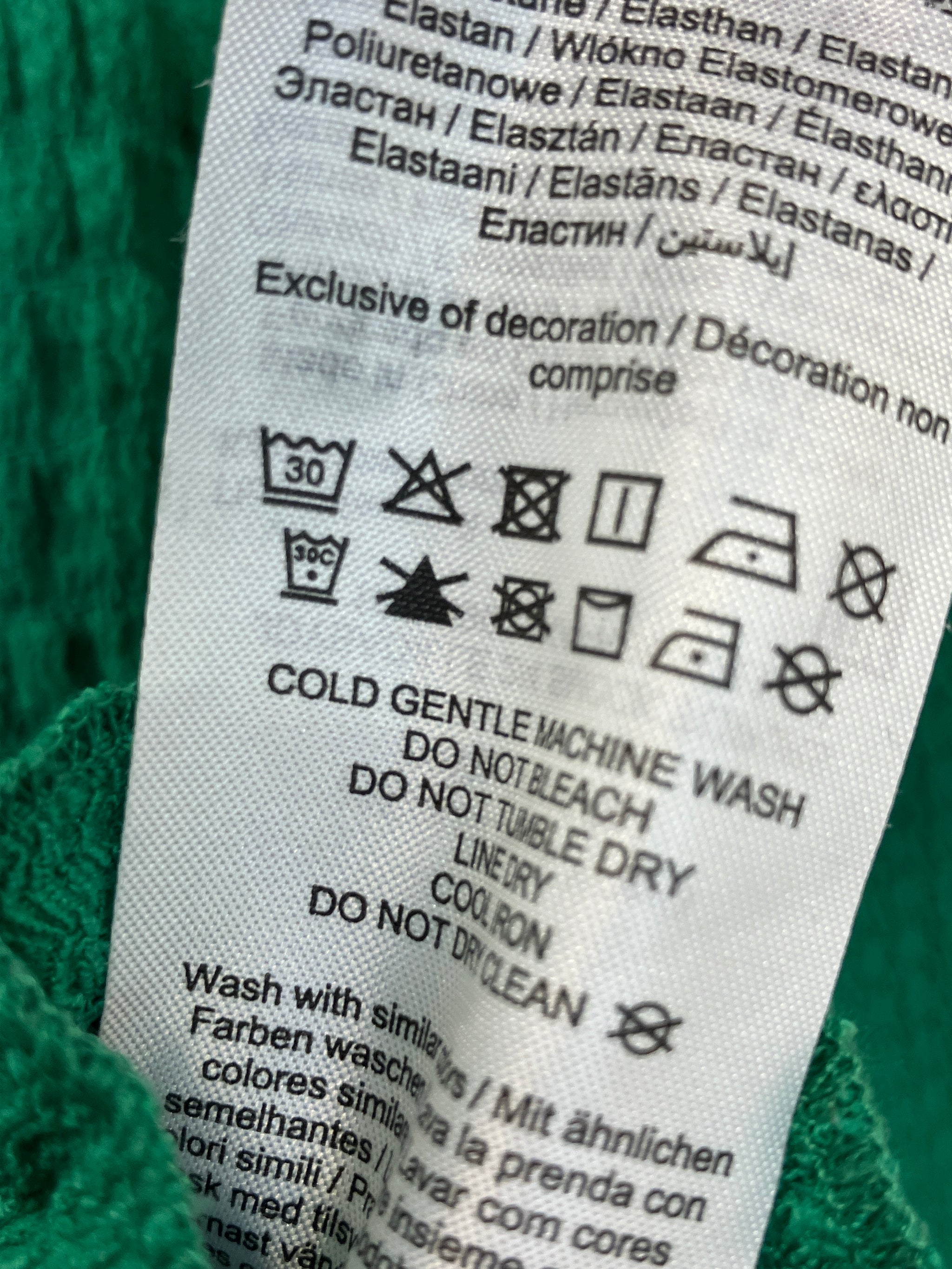Da vi sælger brugt tøj, der er blevet vasket, kan vi ikke garantere, at størrelsesangivelsen ligger inden for en standardskala.
