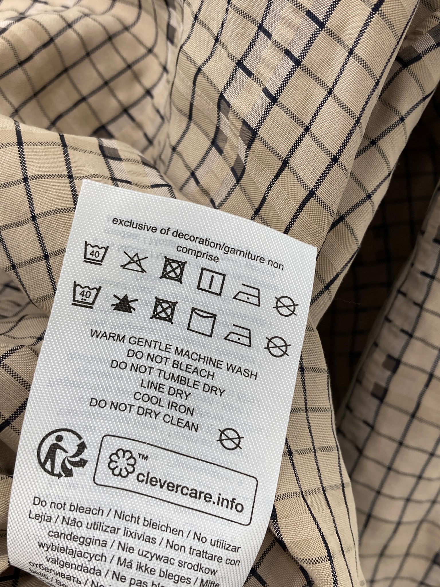 Da vi sælger brugt tøj, der er blevet vasket, kan vi ikke garantere, at størrelsesangivelsen ligger inden for en standardskala.