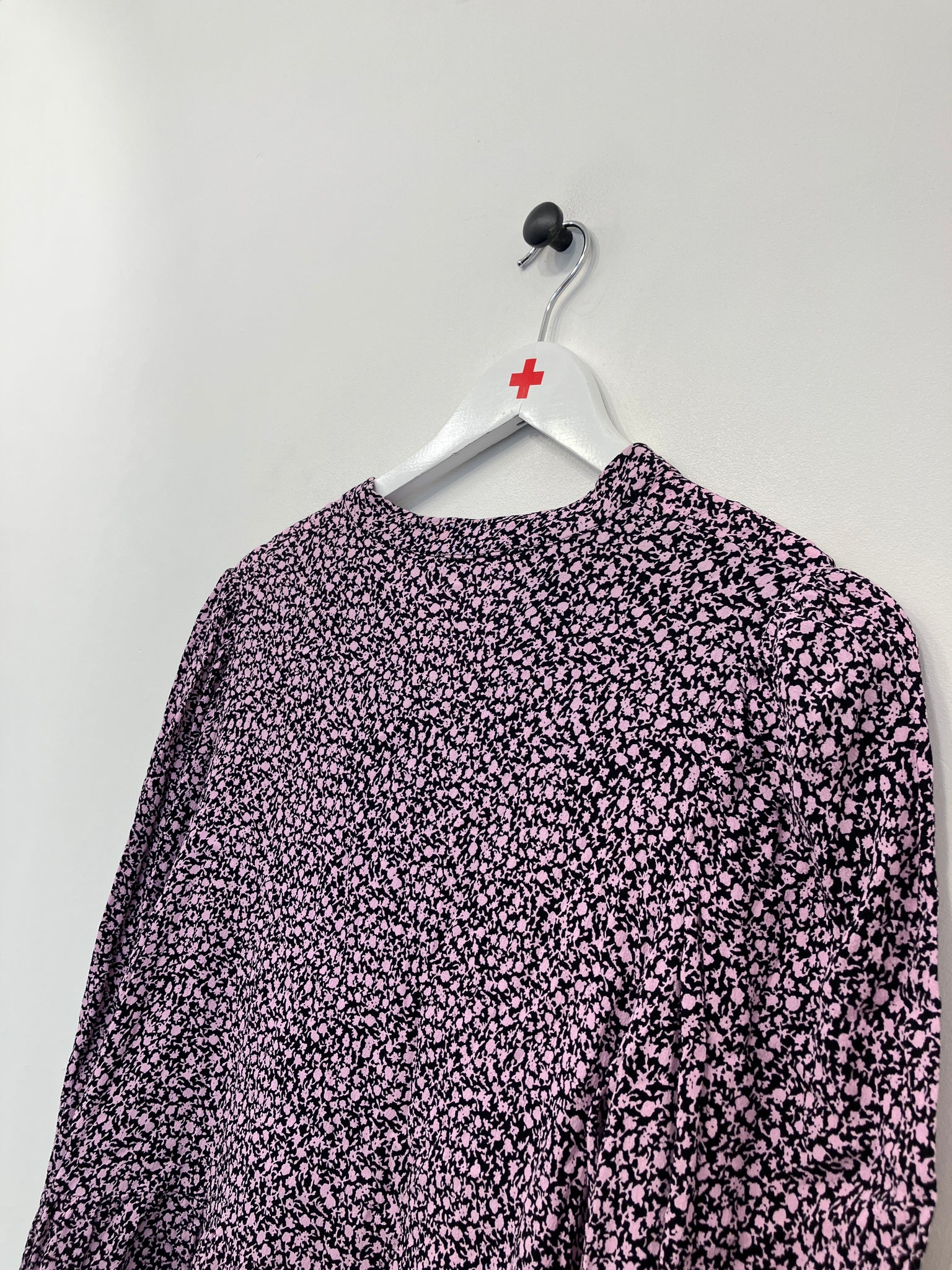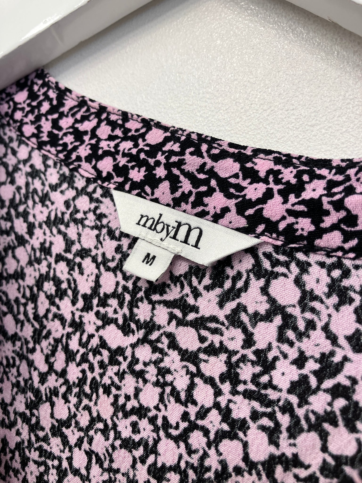 Langærmet, blomstret bluse af mærket M by M. Vær opmærksom på, at vaskemærket mangler.