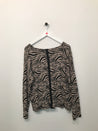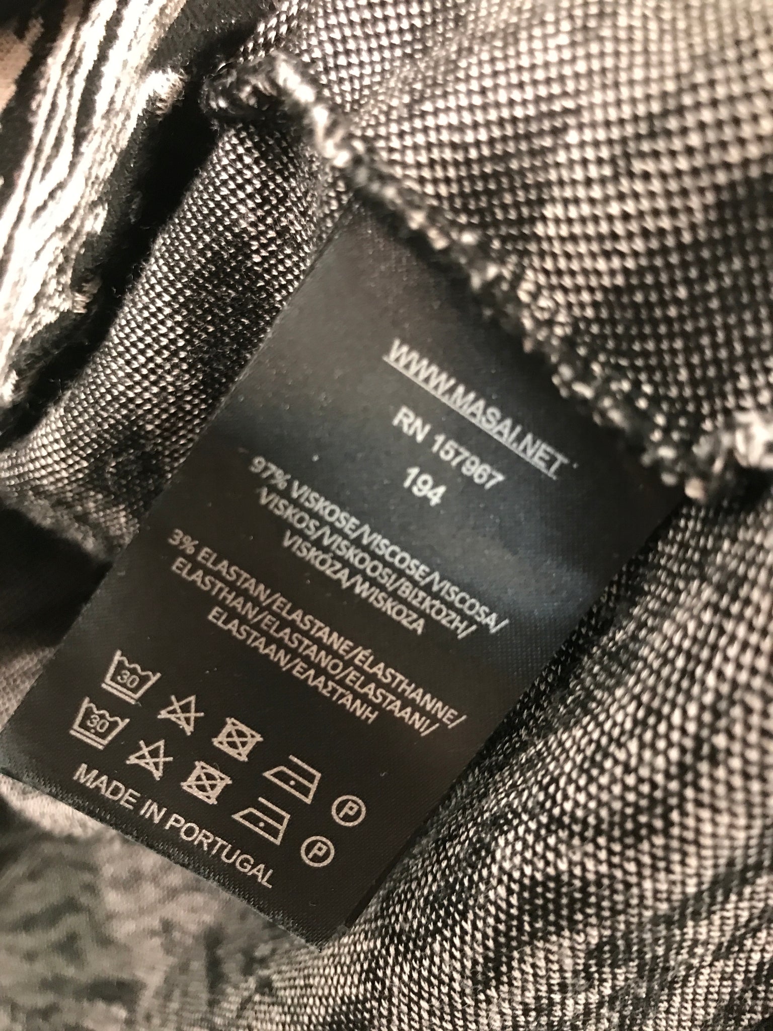 Da vi sælger brugt tøj, der er blevet vasket, kan vi ikke garantere, at størrelsesangivelsen ligger inden for en standardskala.