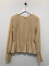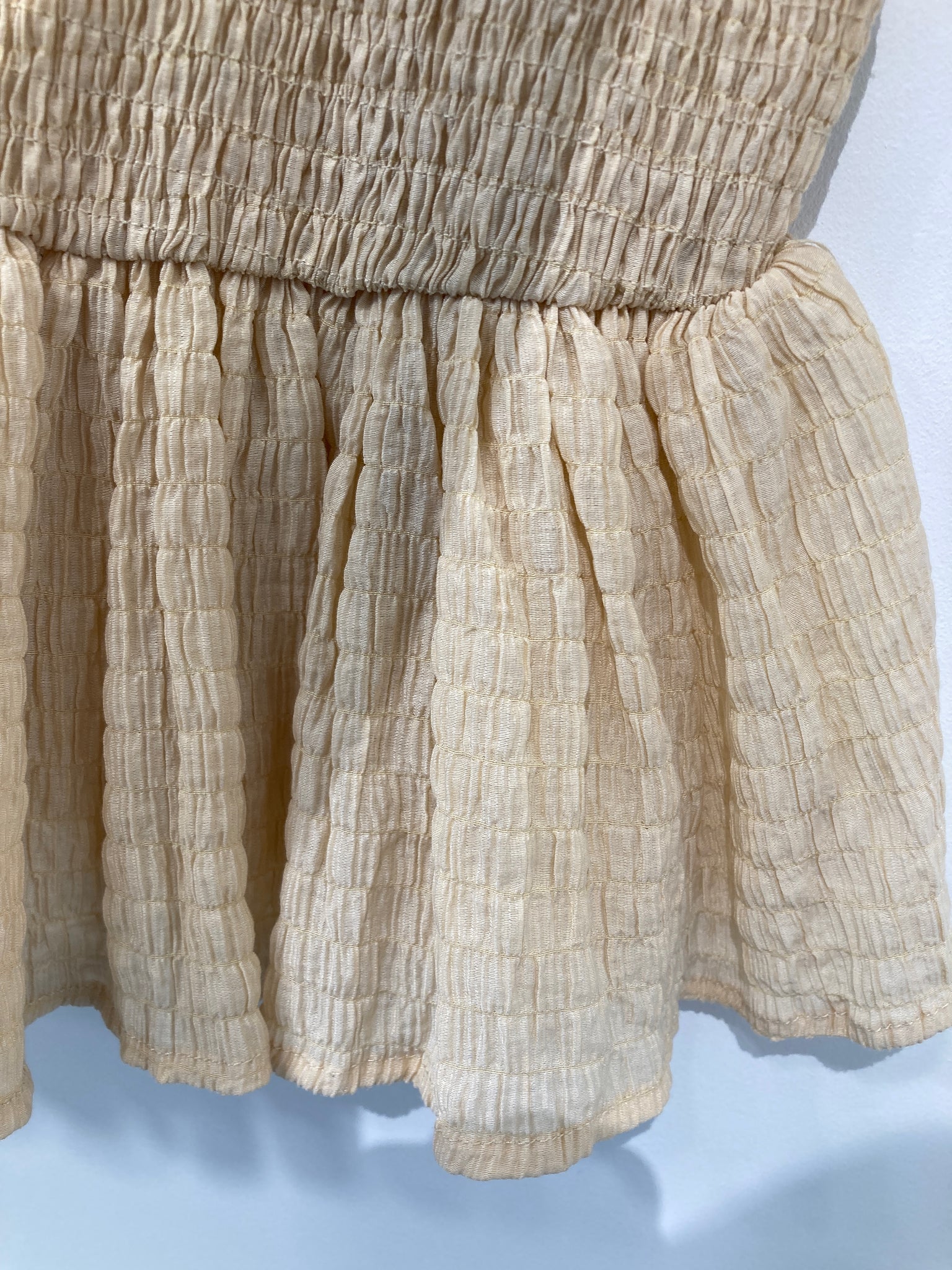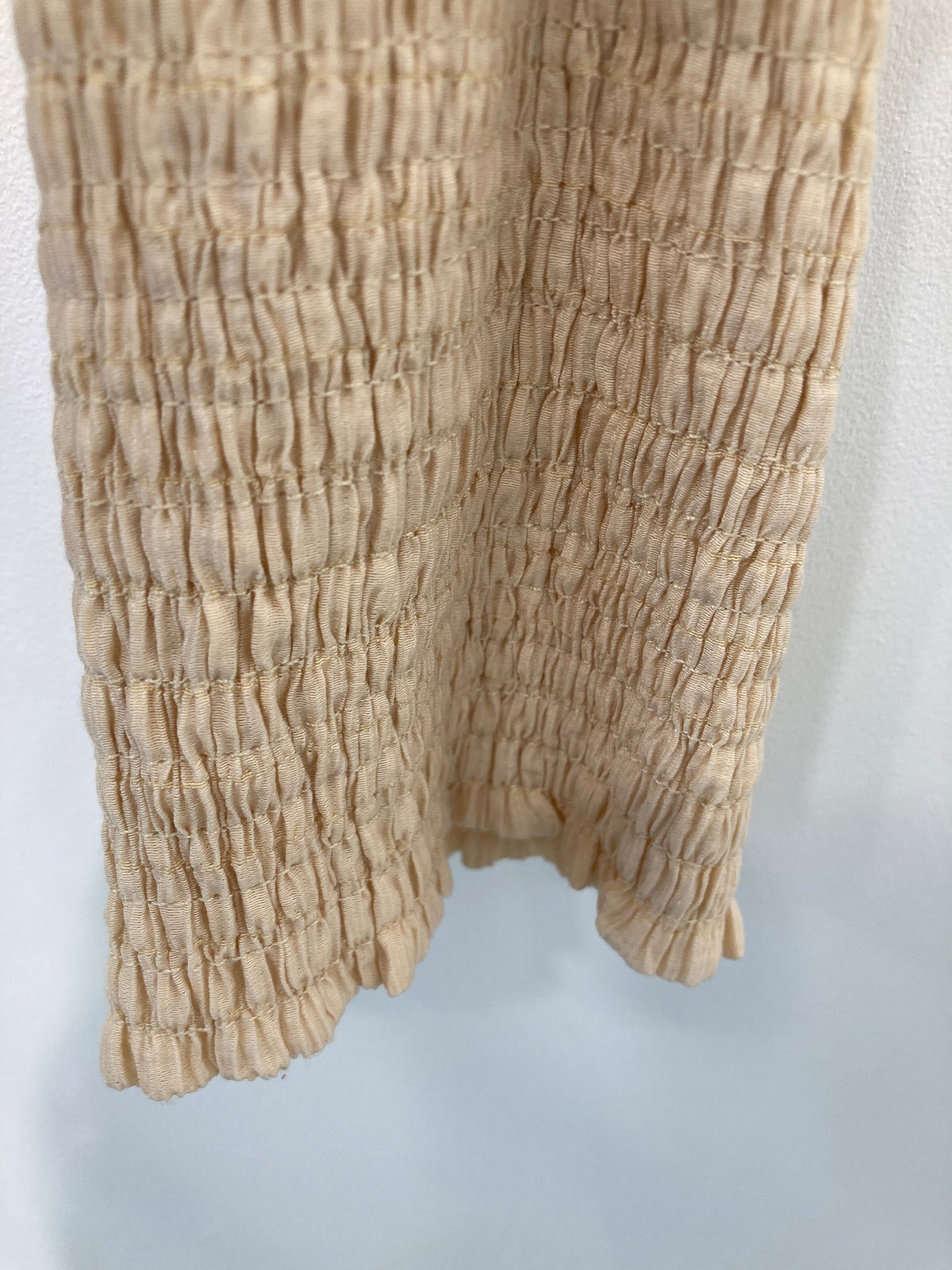 Bluse i et ribbet stof med fine detaljer ved taljen og ærmerne.