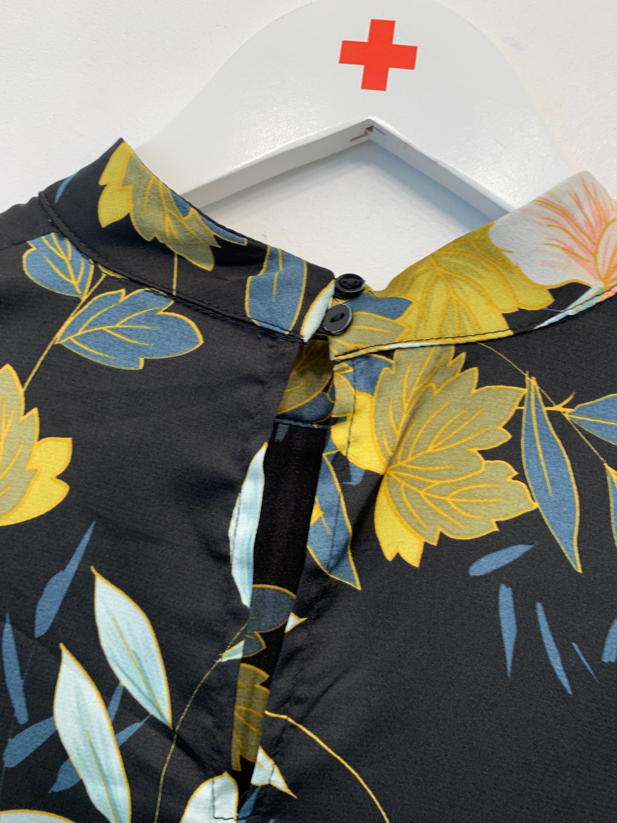 Fin blomstret bluse med lange ærmer og knapåbning i nakken.