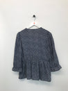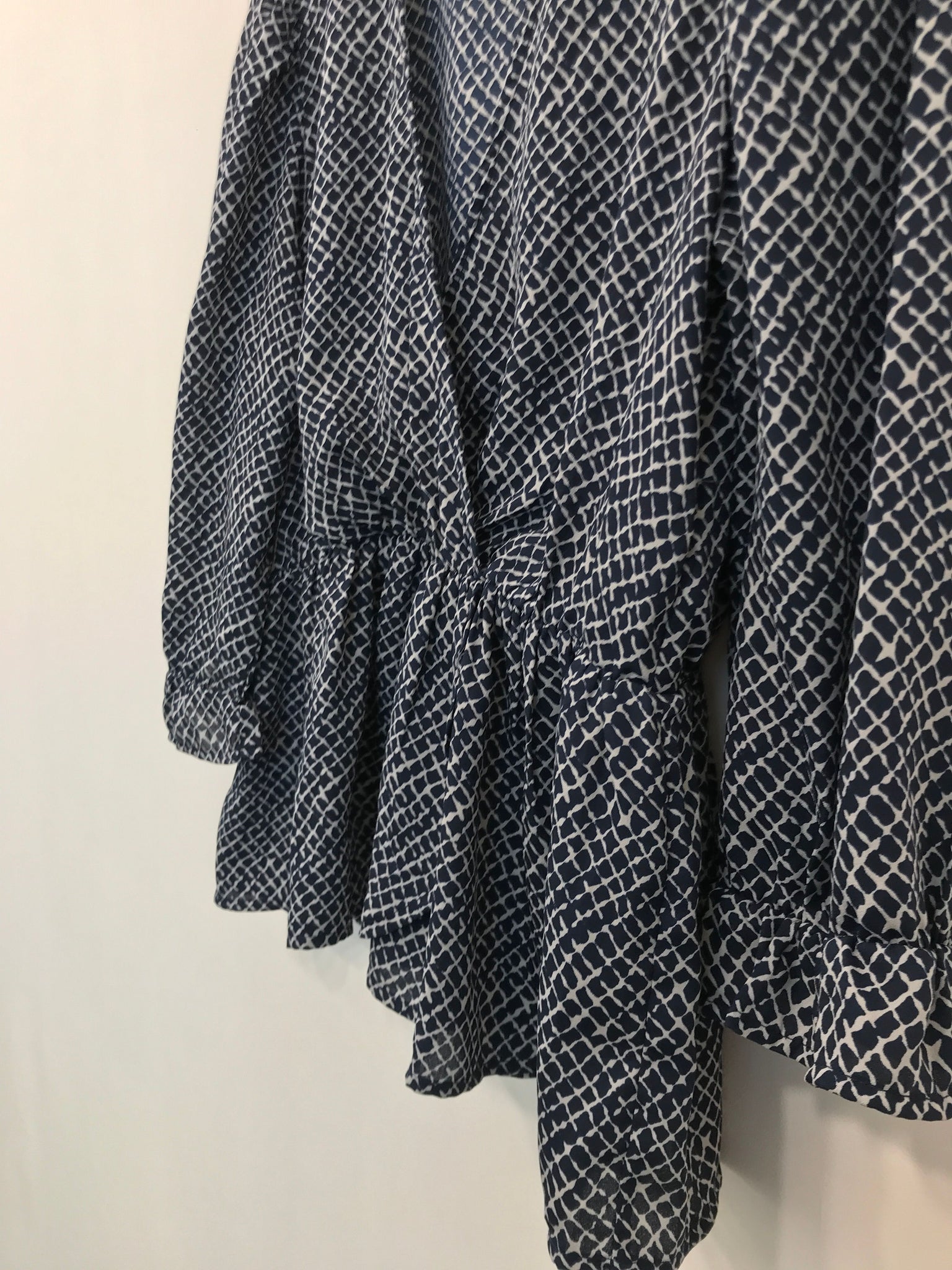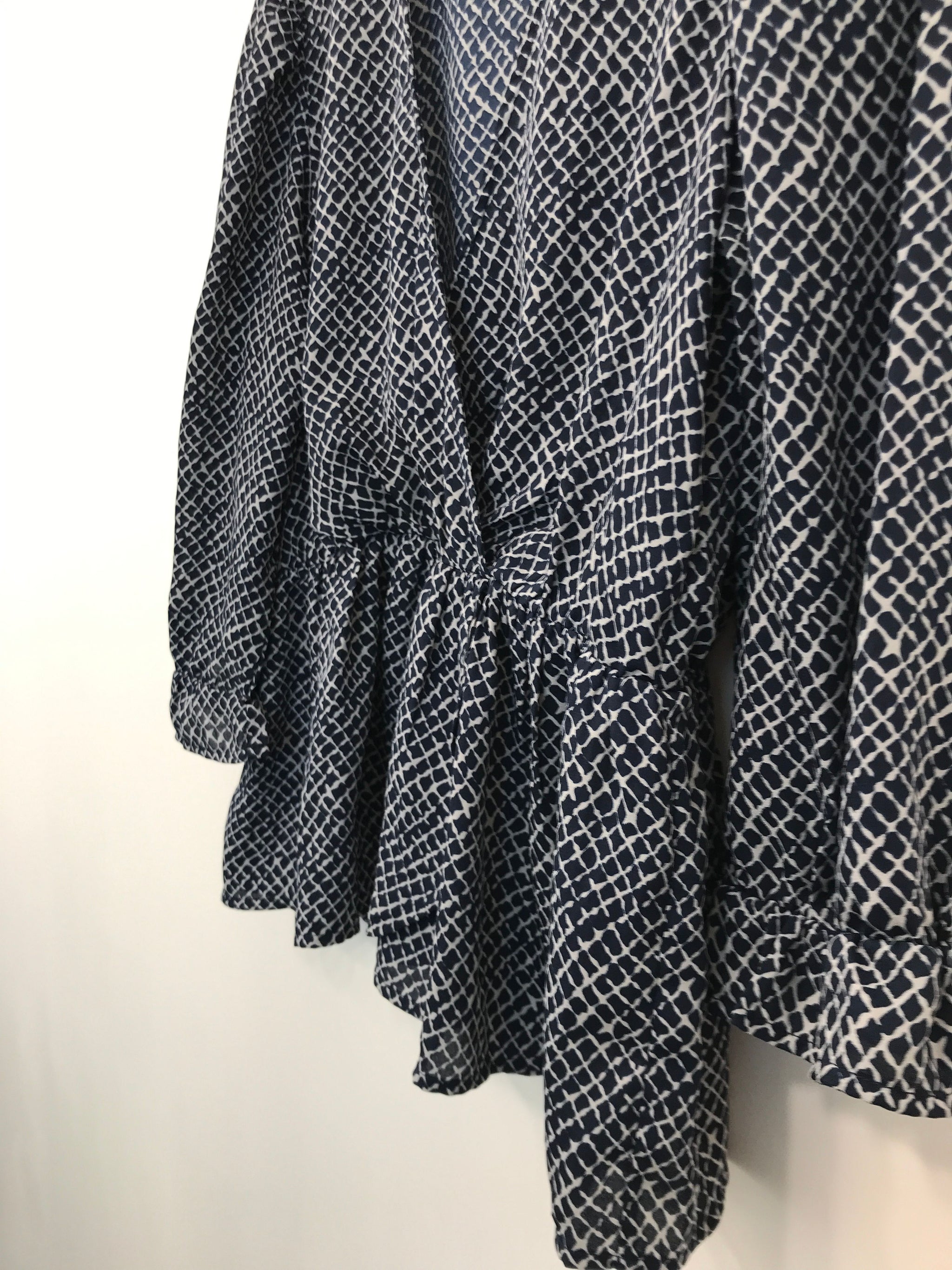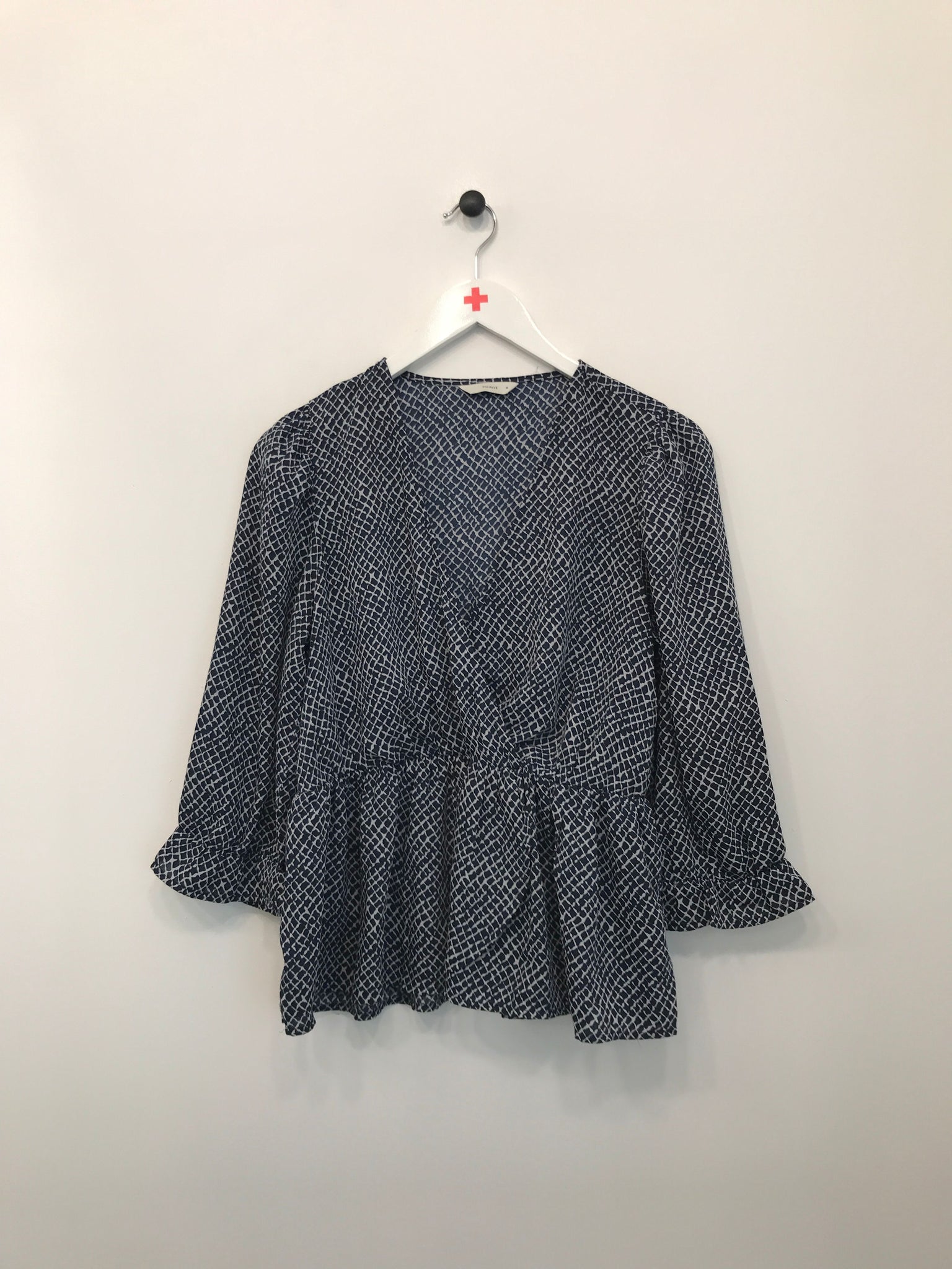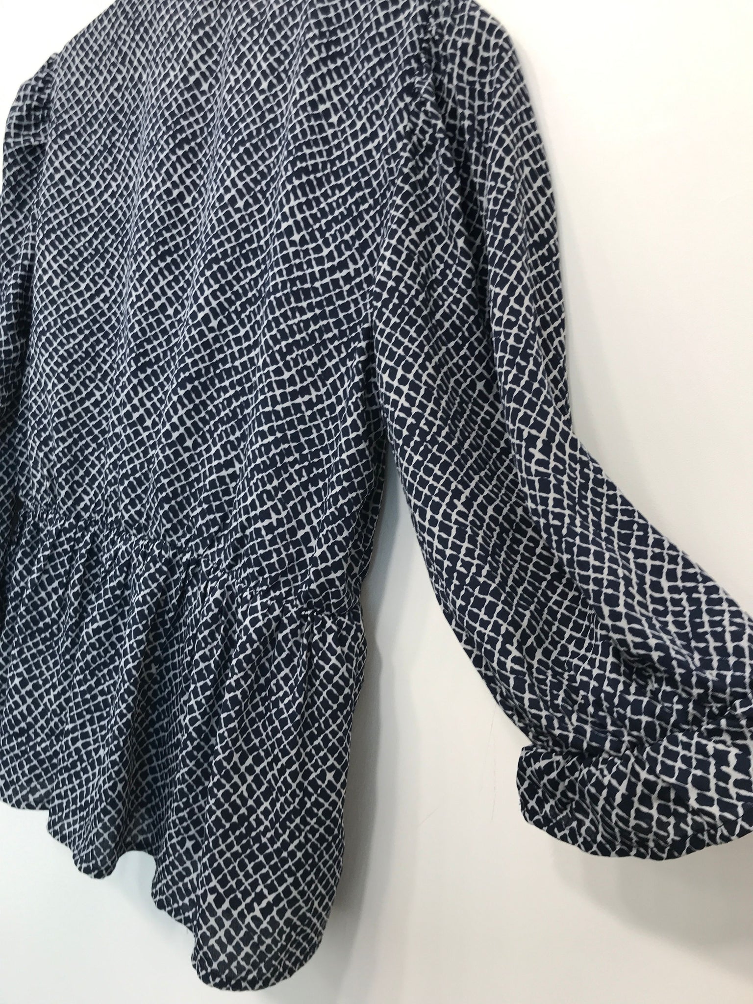 Smart bluse med flæse for neden samt i ærmegabene og byd V-kryds krave