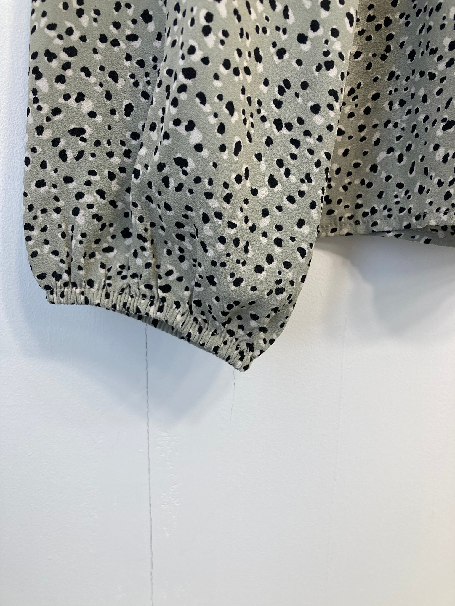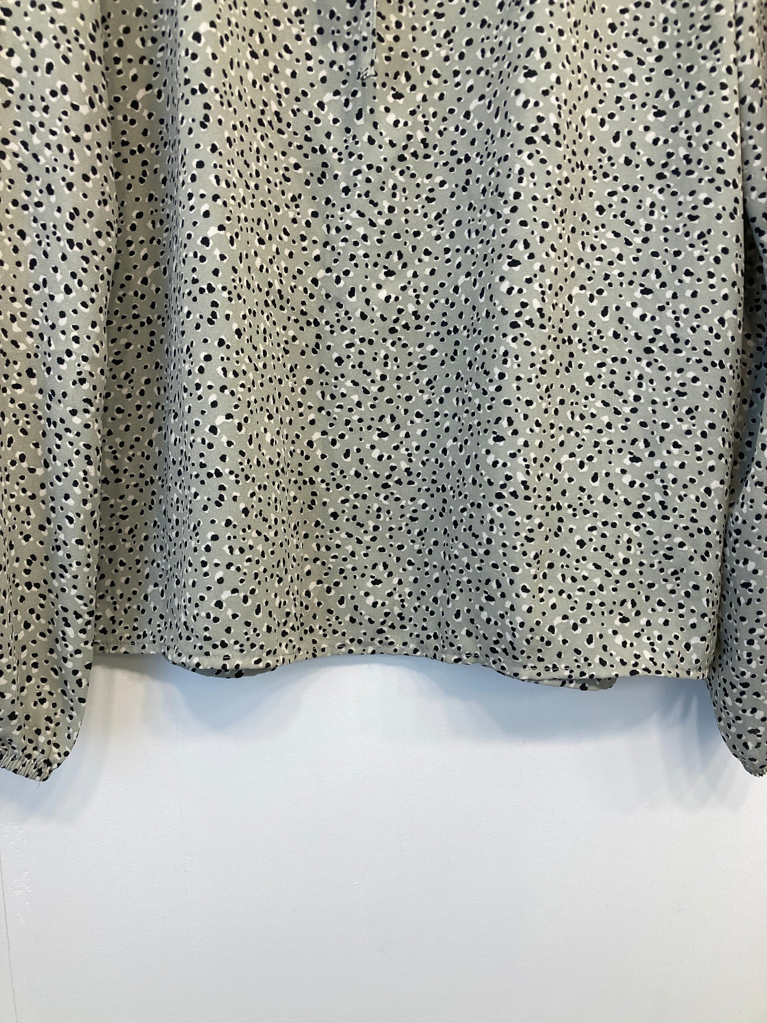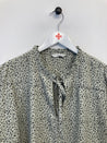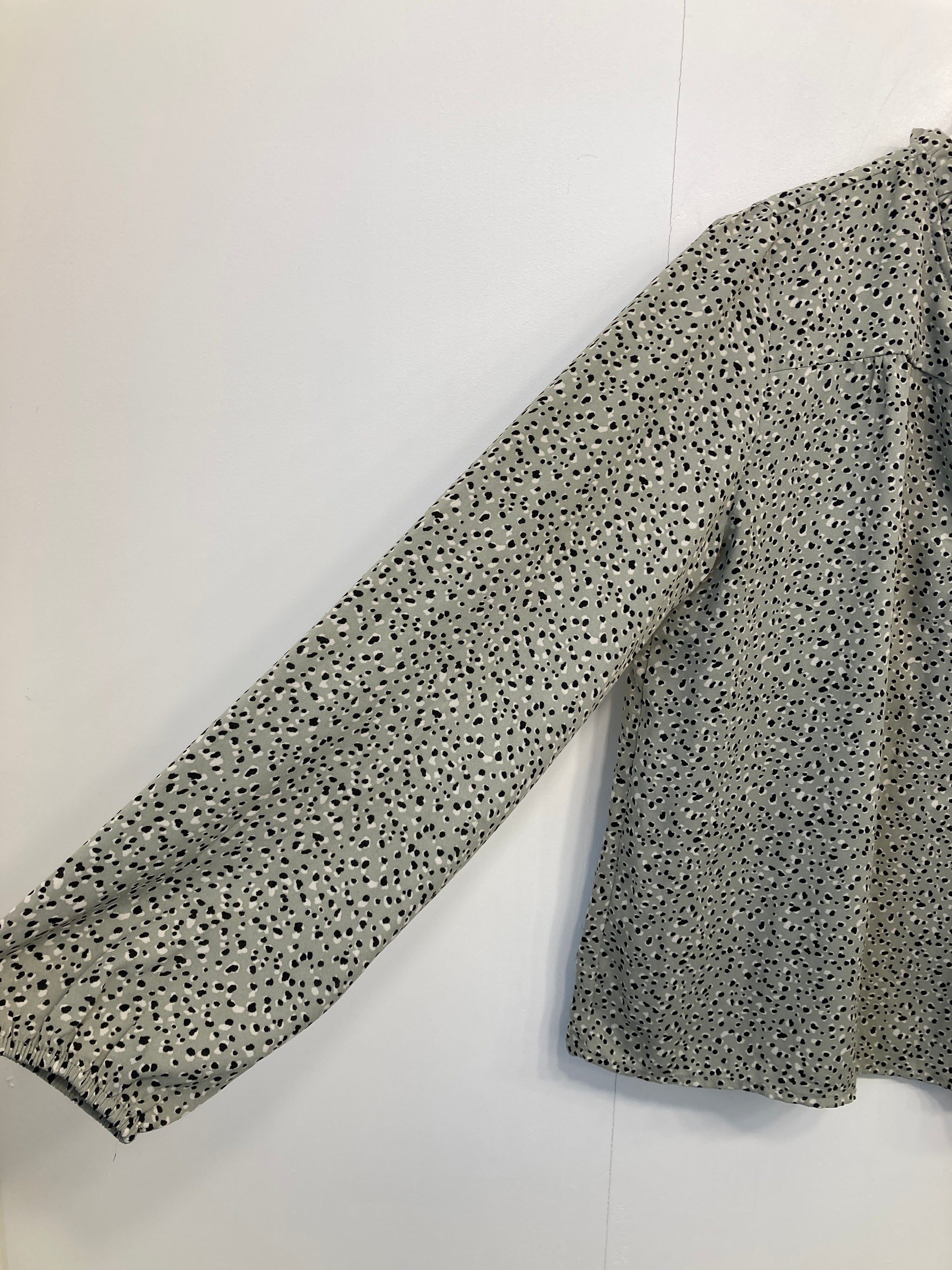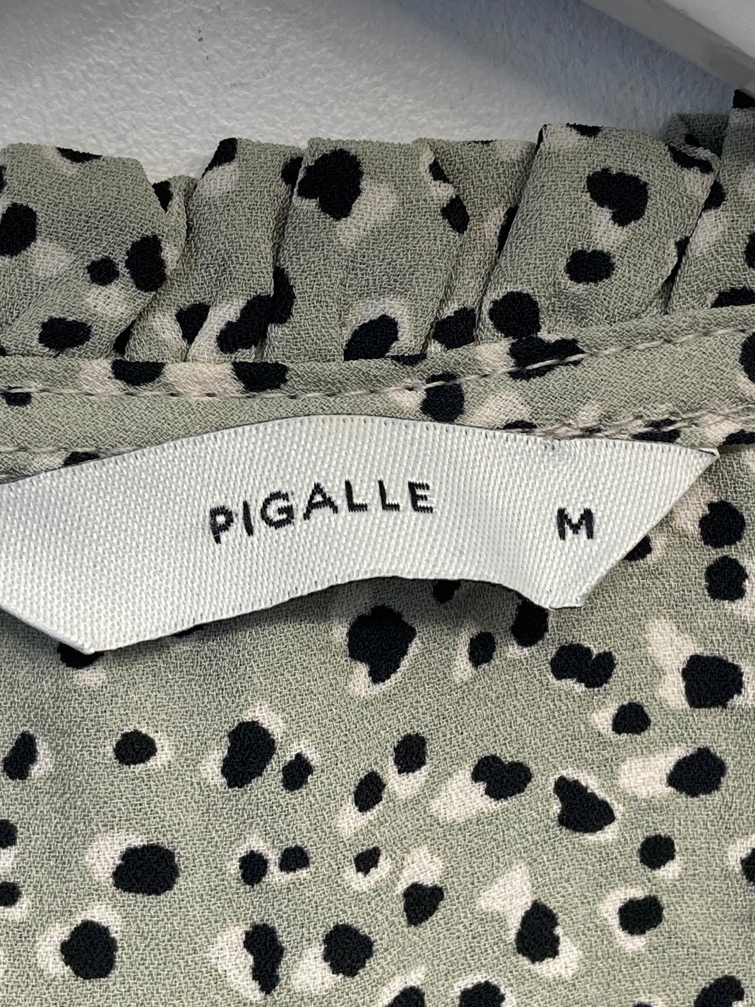 Flot langærmet bluse fra Pigalle med prikket mønster og fin krave med bindebånd.
