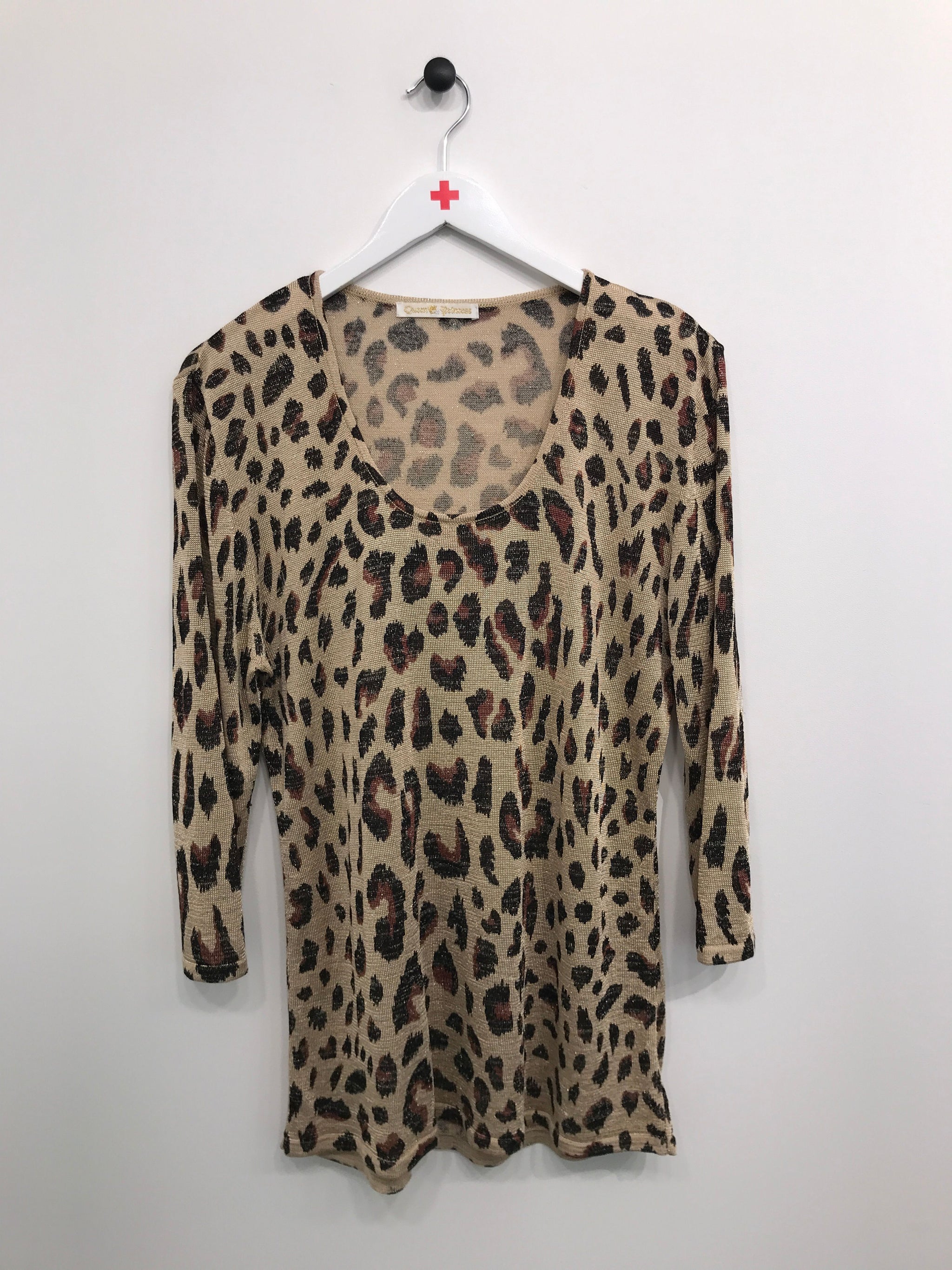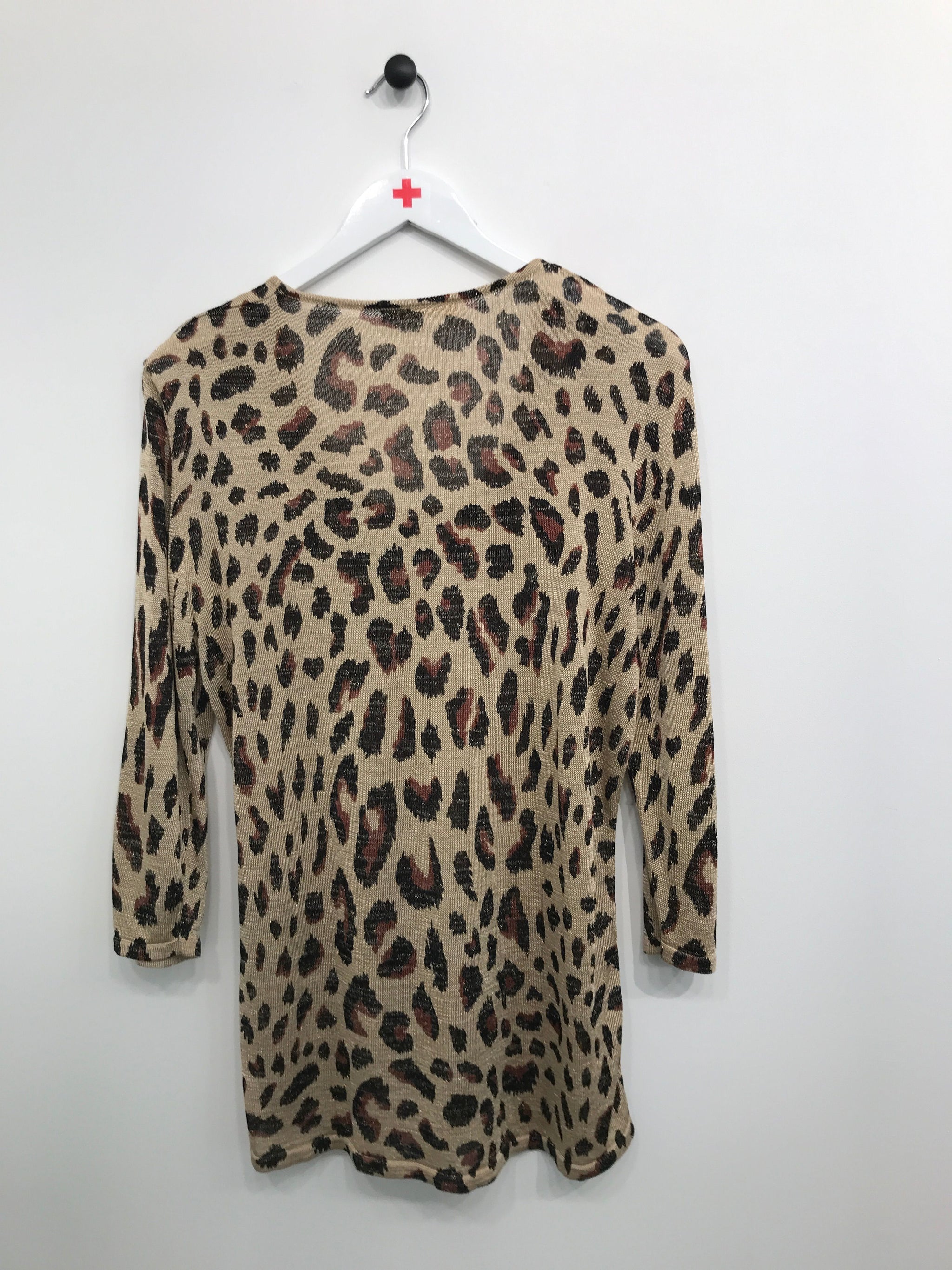 Elegant lang bluse med leopardprint. Mangler vaskemærke.