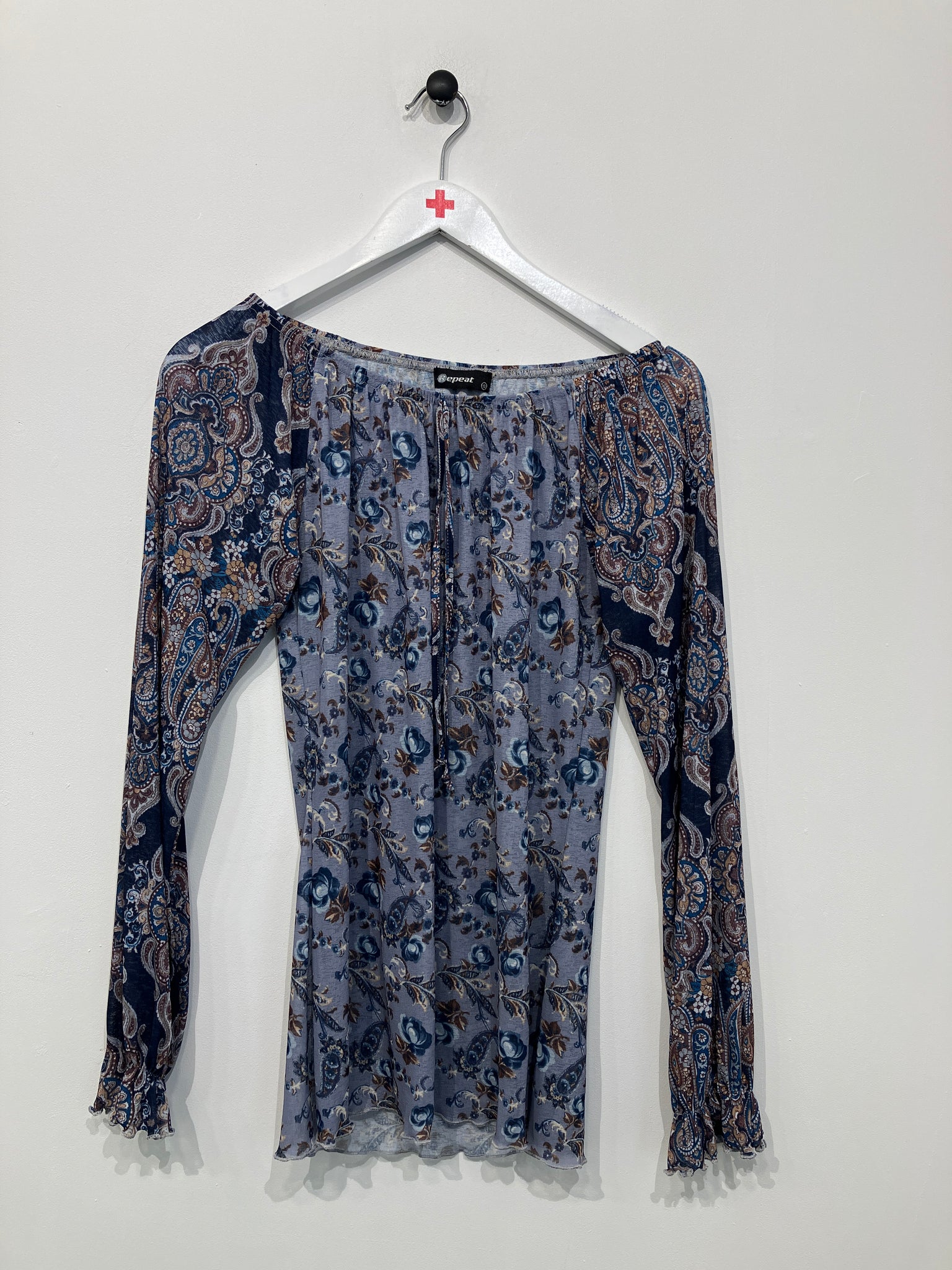 Da vi sælger brugt tøj, der er blevet vasket, kan vi ikke garantere, at størrelsesangivelsen ligger inden for en standardskala.