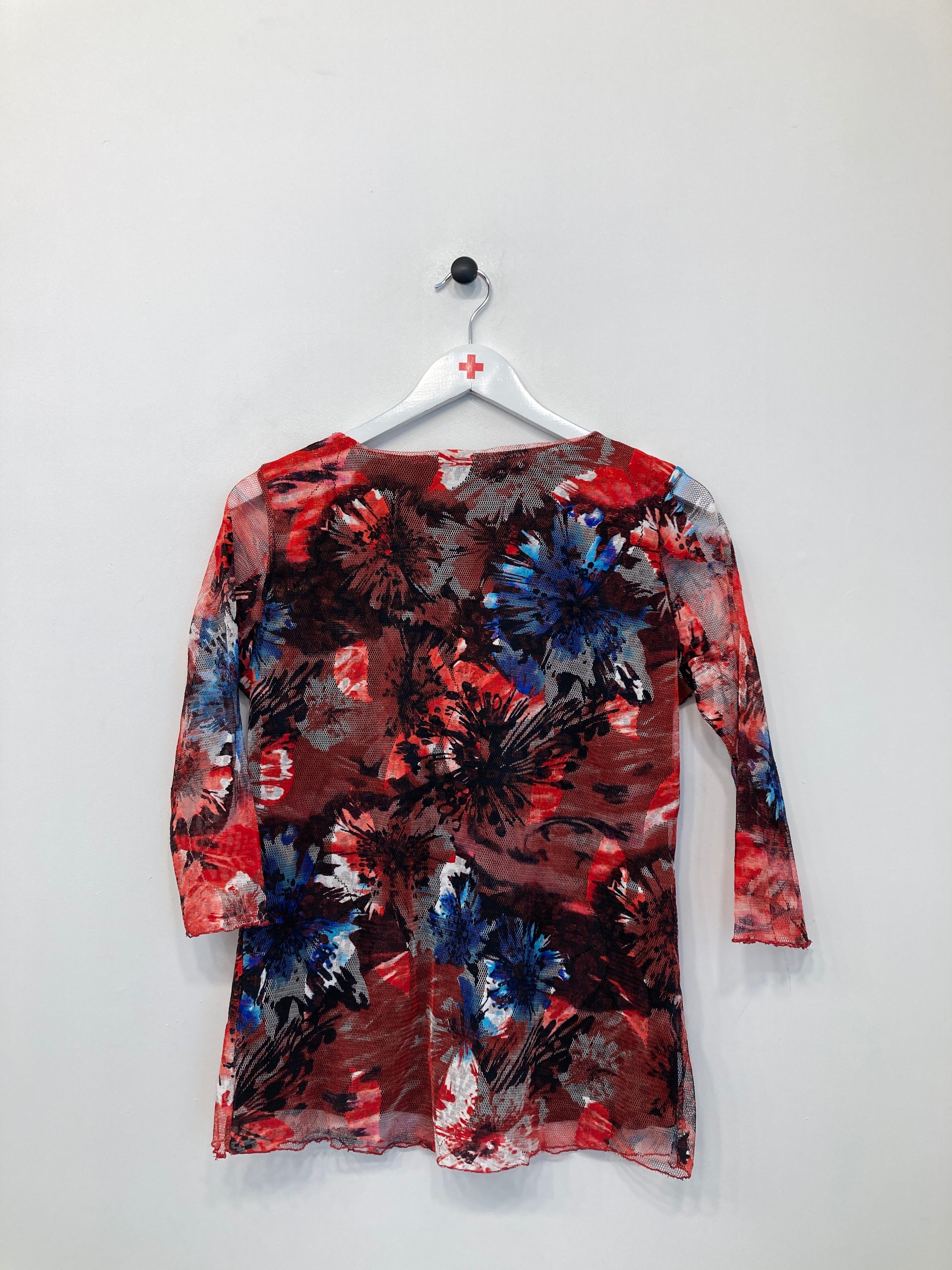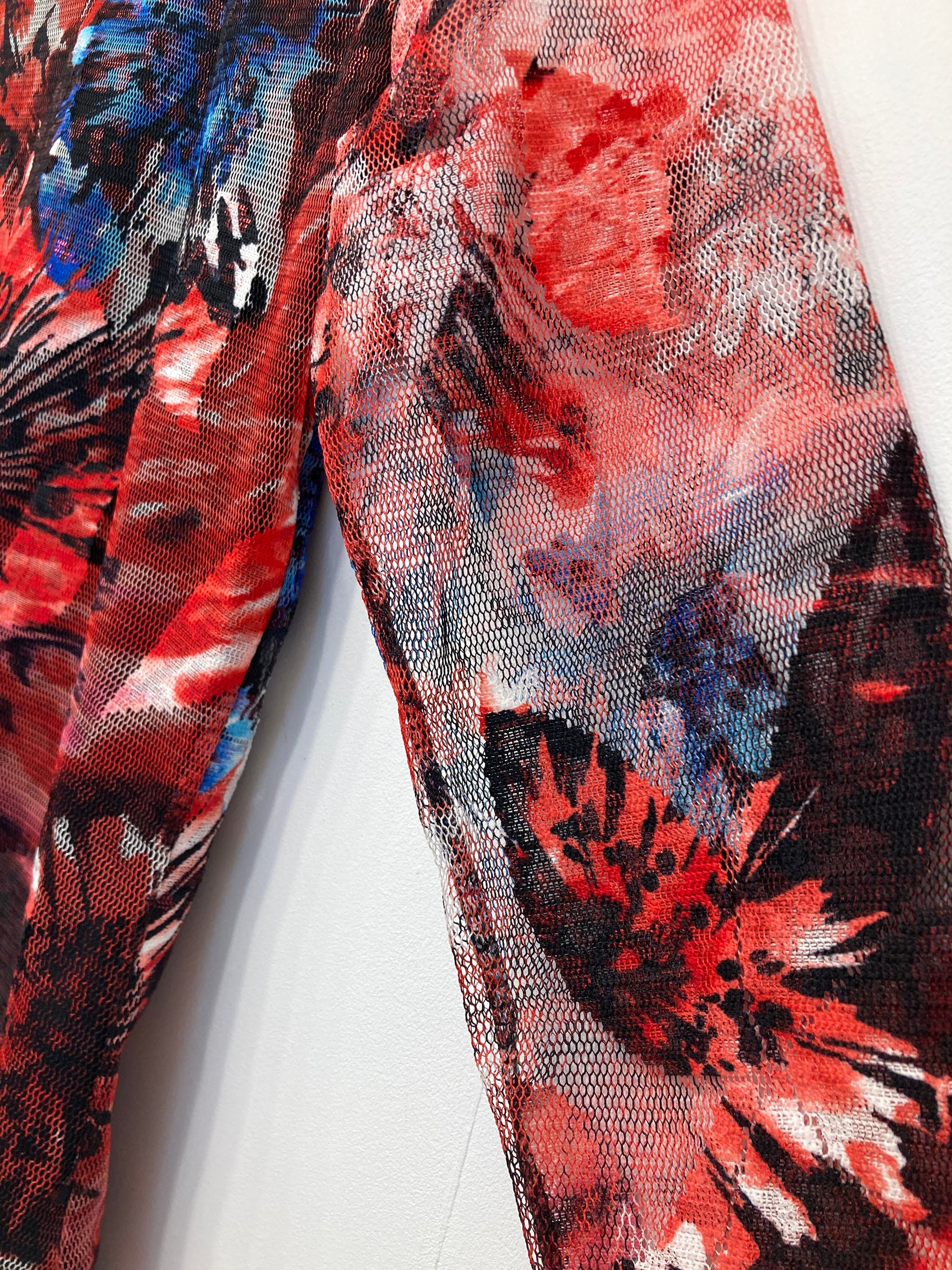Smuk lang ærmet bluse i mesh stof