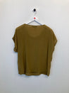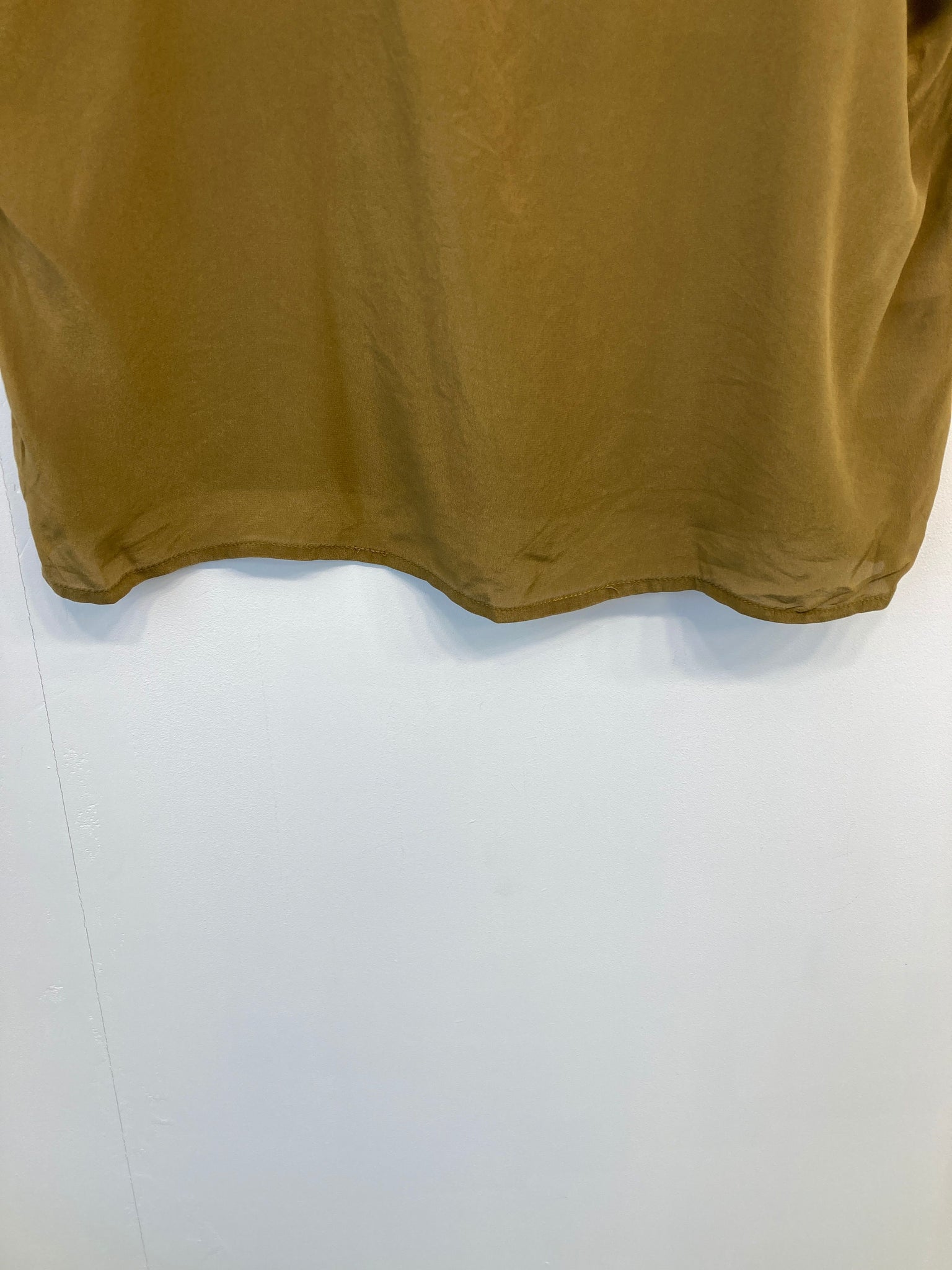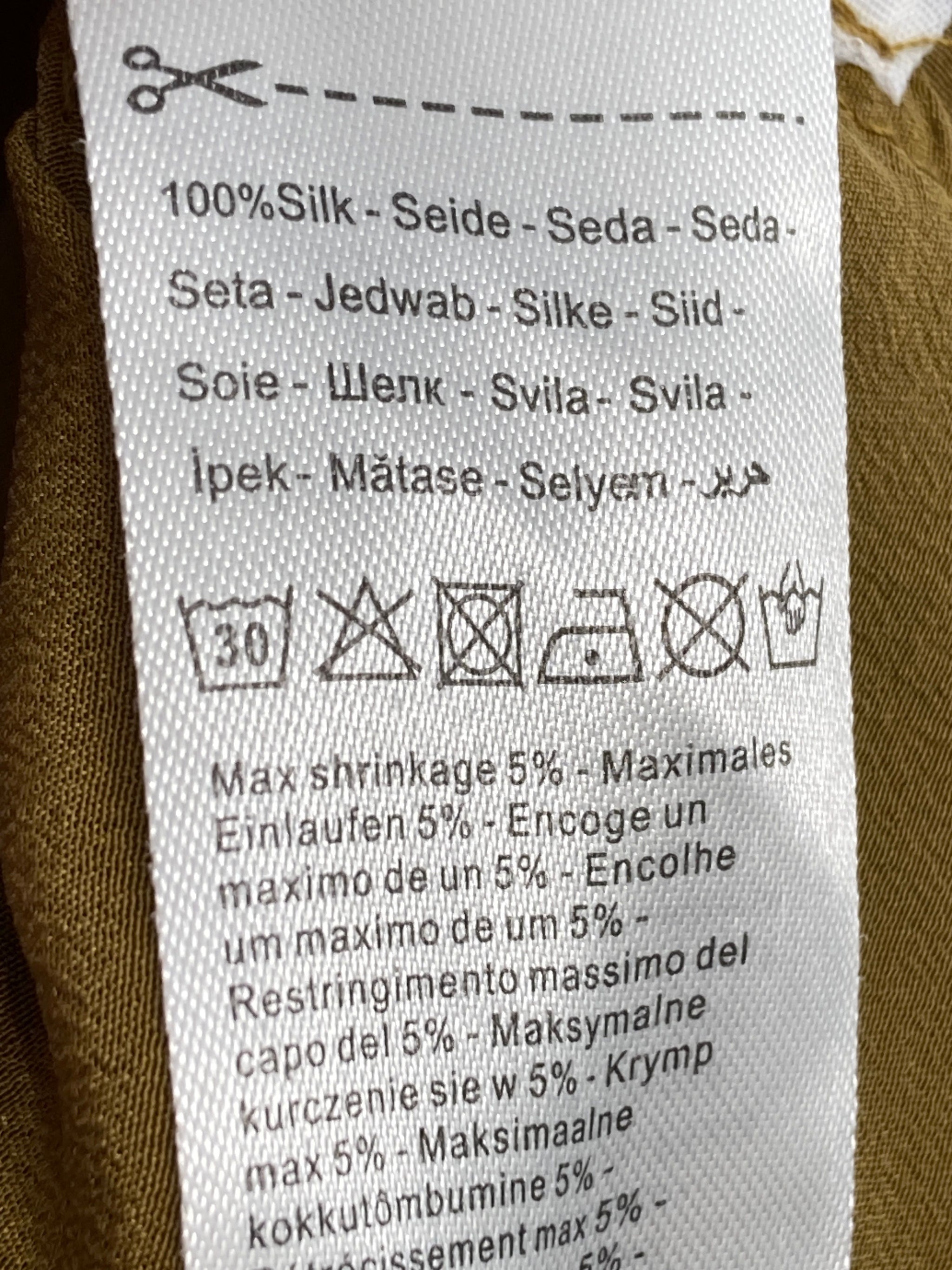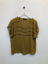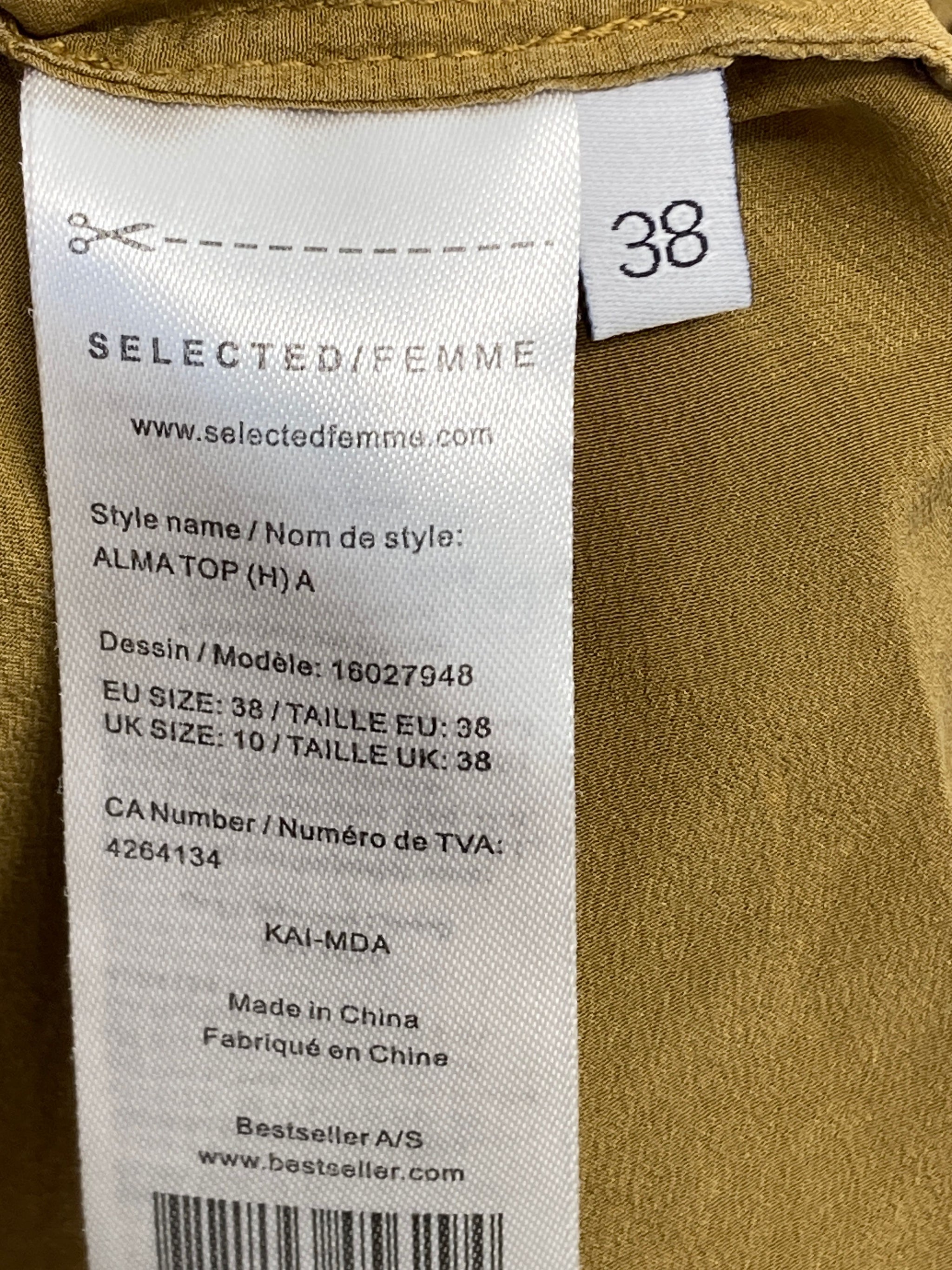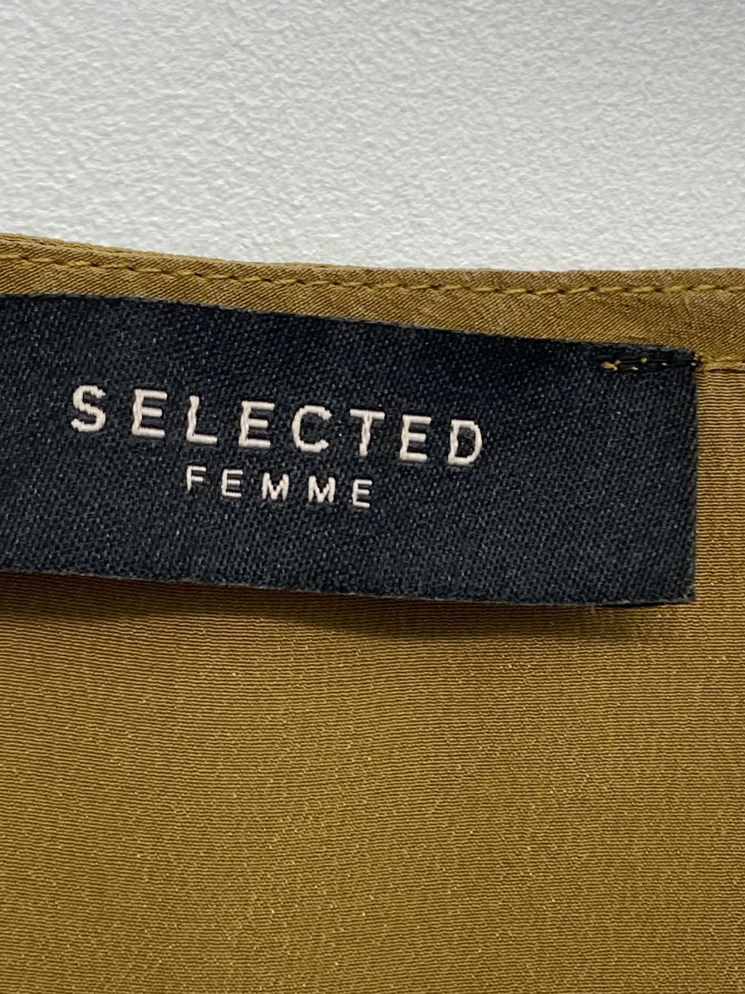Skøn olivengrøn silkebluse med smarte pynte striber