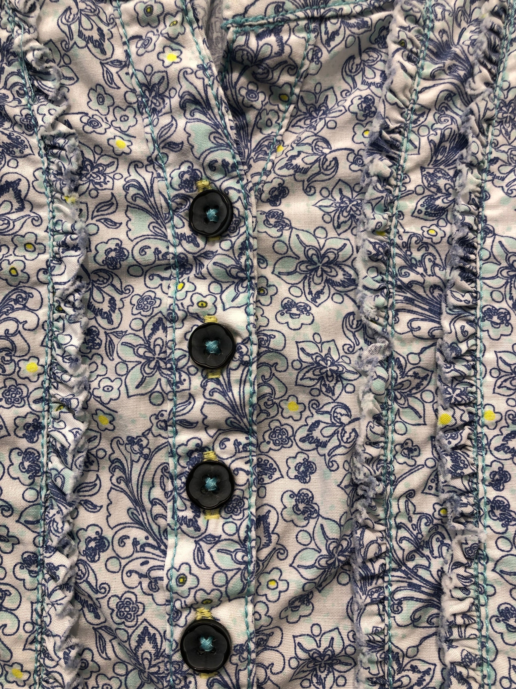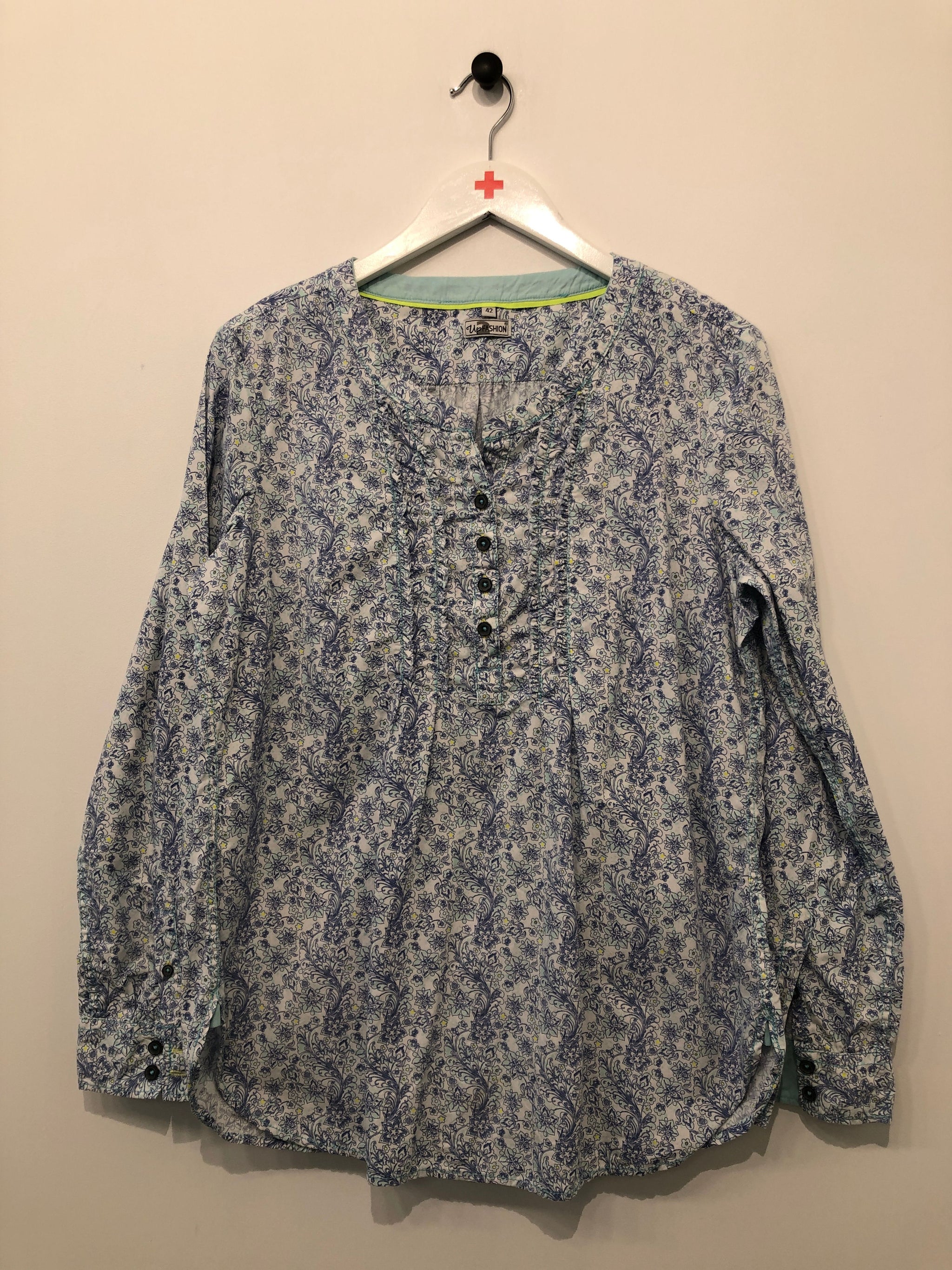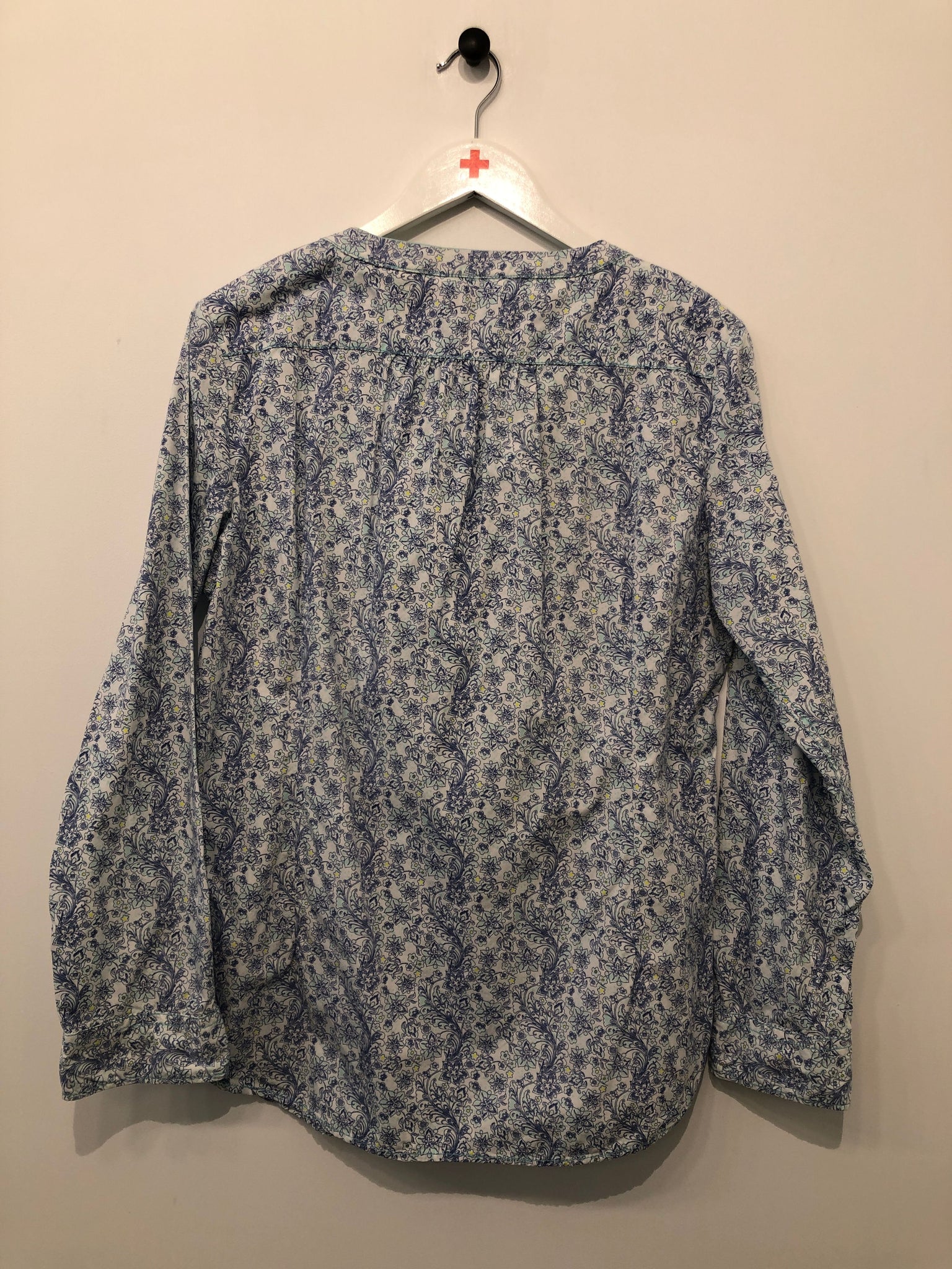 Bluse med stolpelukning, fine detaljer på front og lange ærmer.