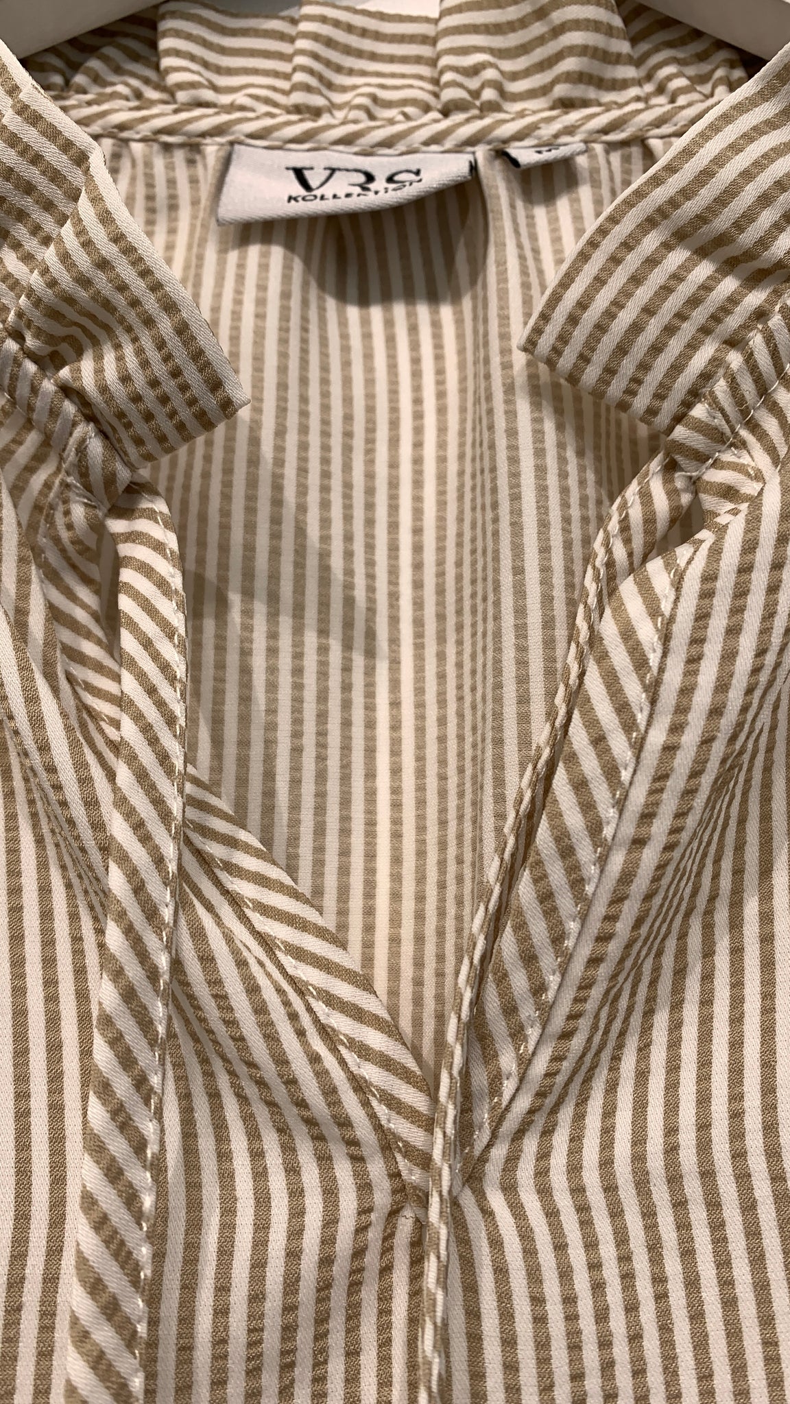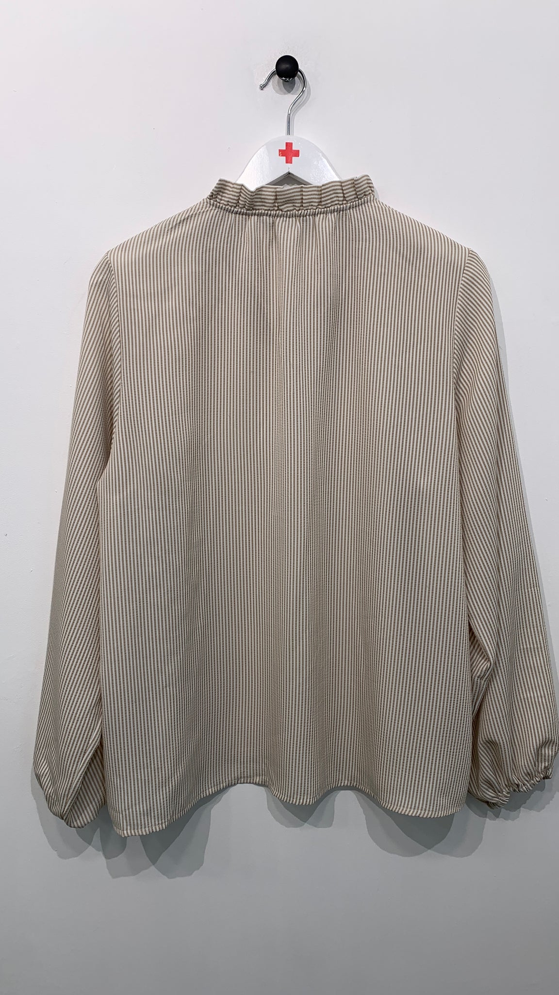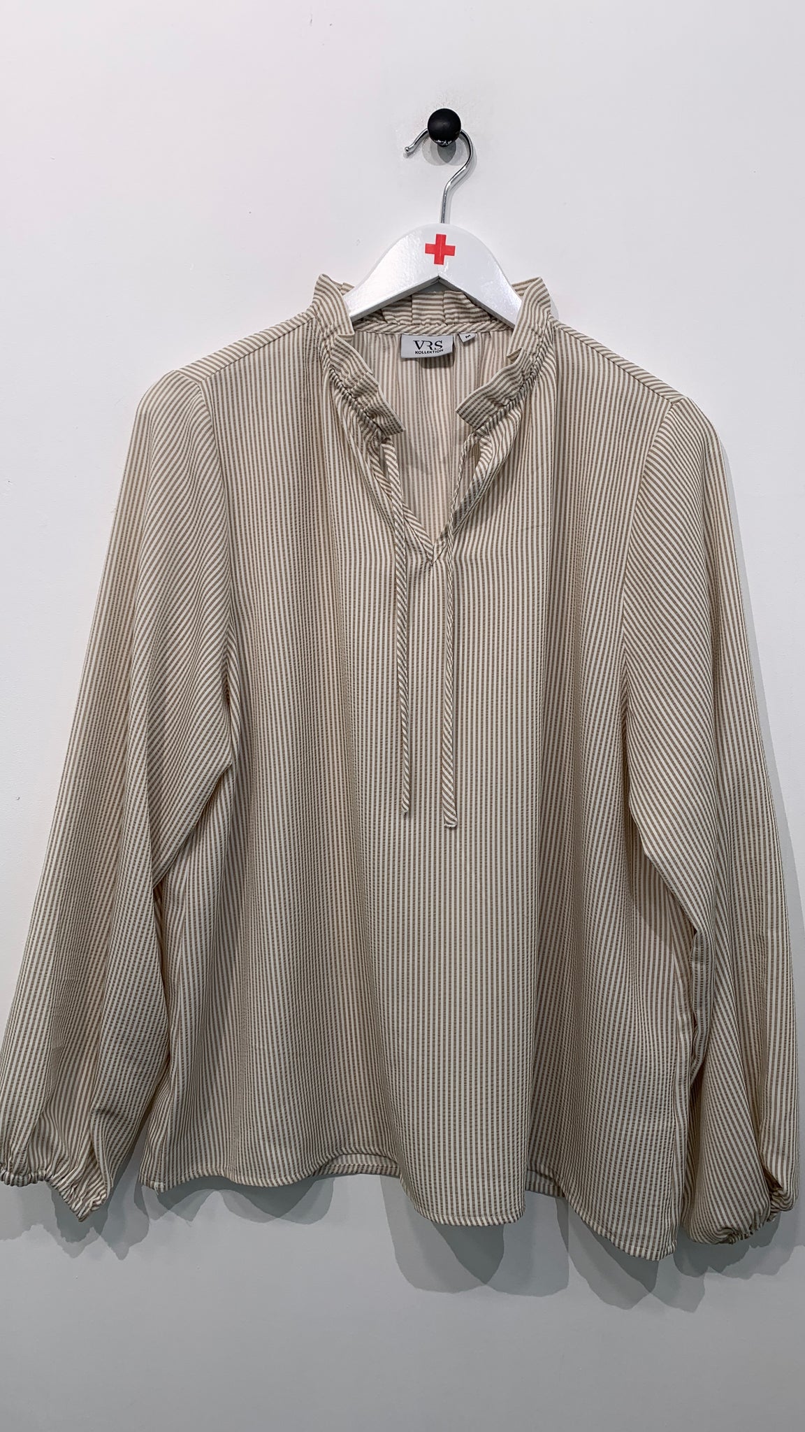 Bluse med V udskæring med bindebånd, lange ærmer med elastikkant.