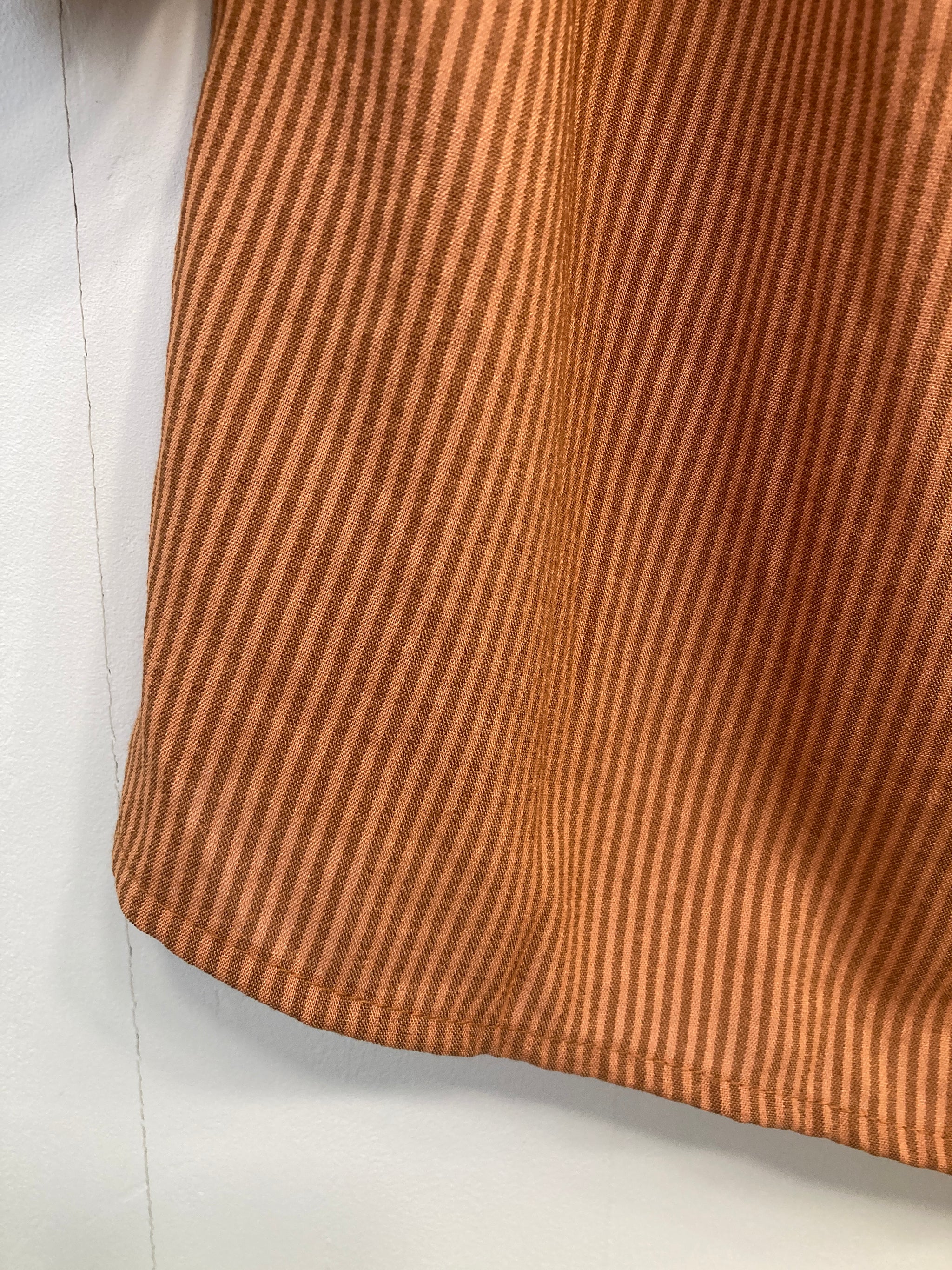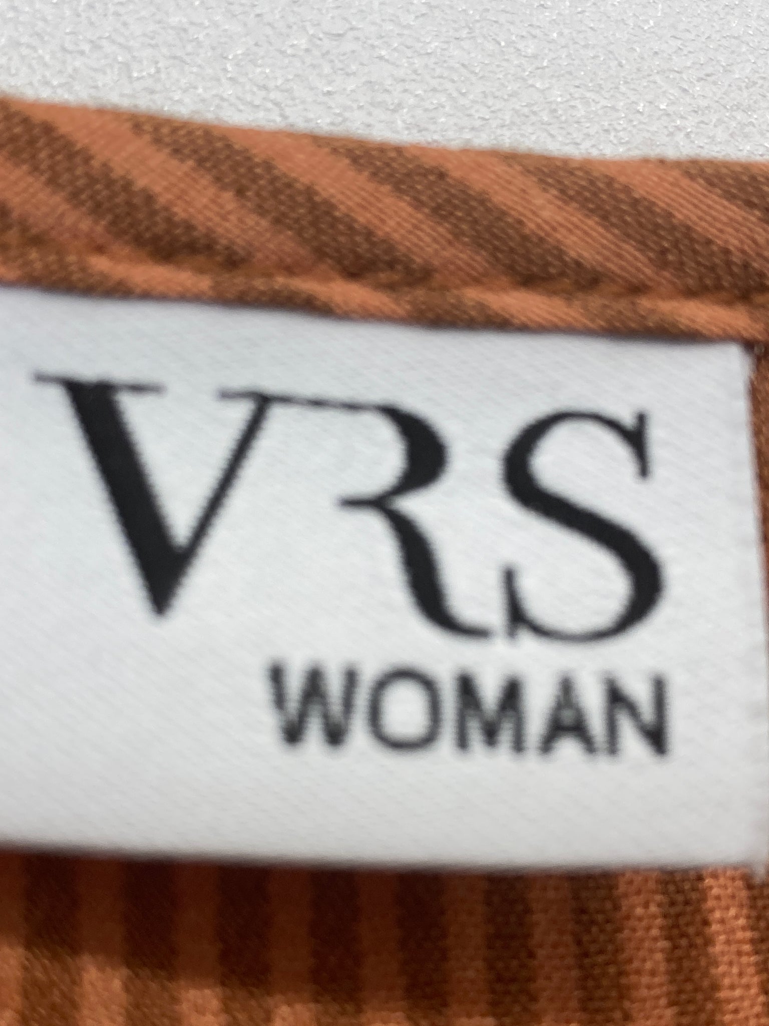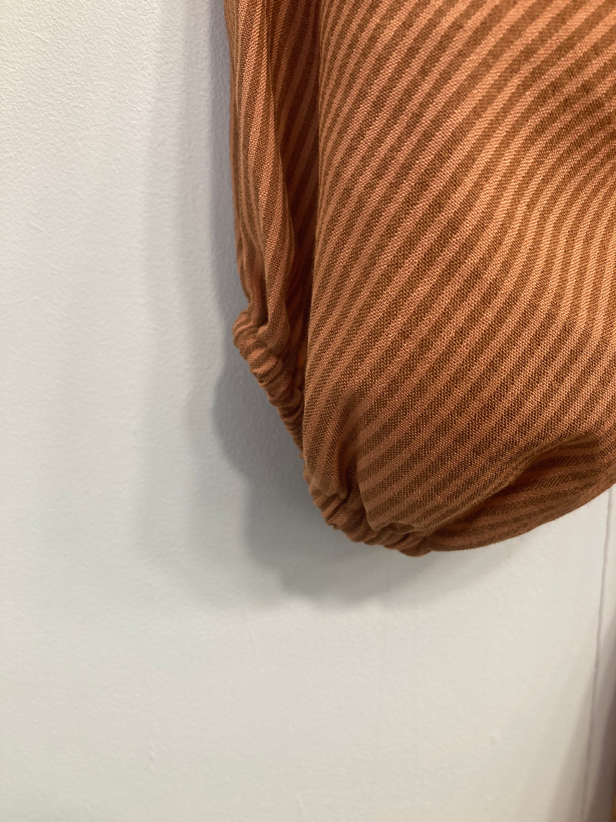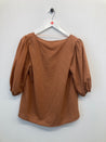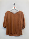 Bluse i brune/rustfarvede nuancer med rund hals og 3/4 ærmer med elastikkant.