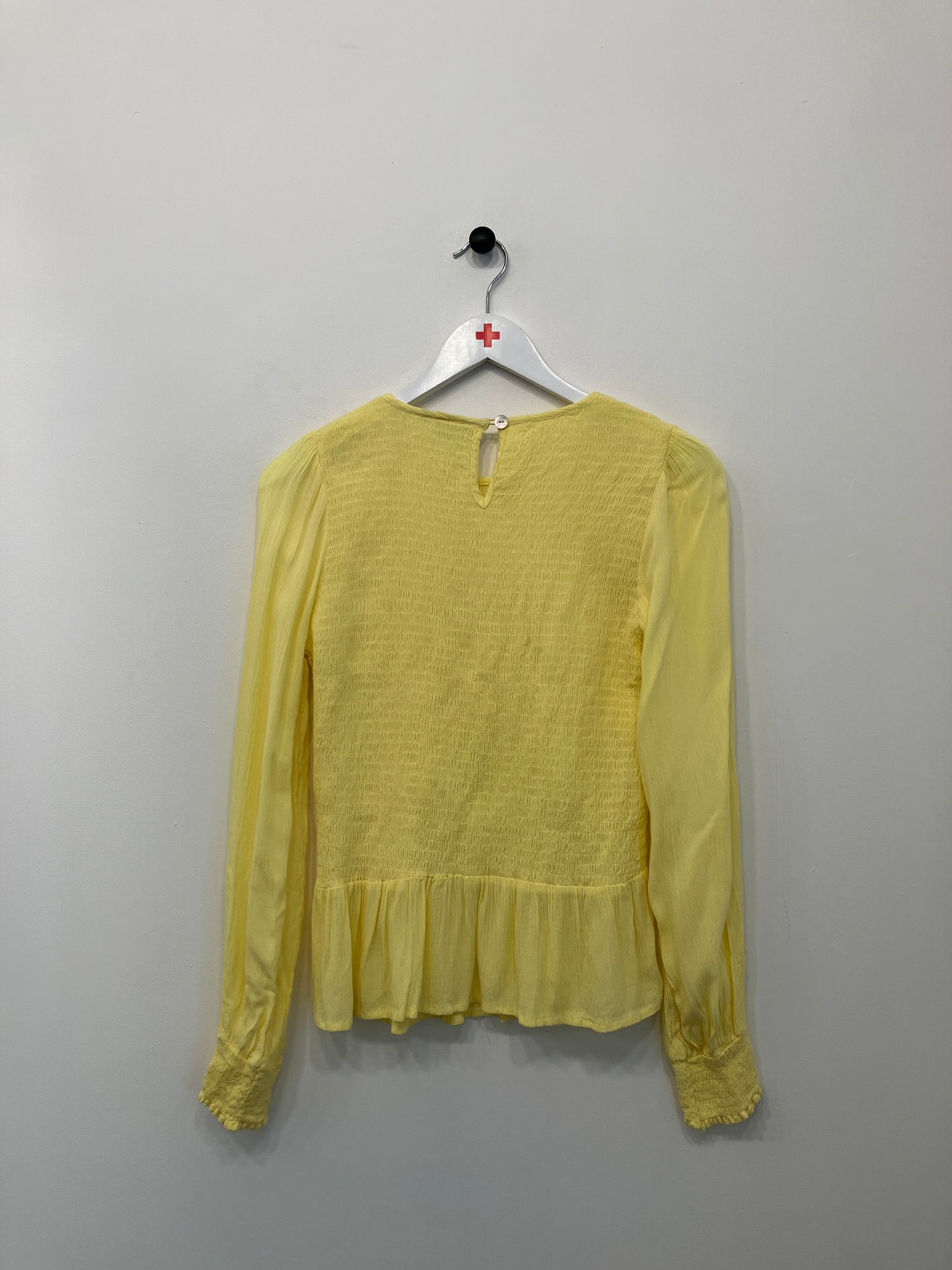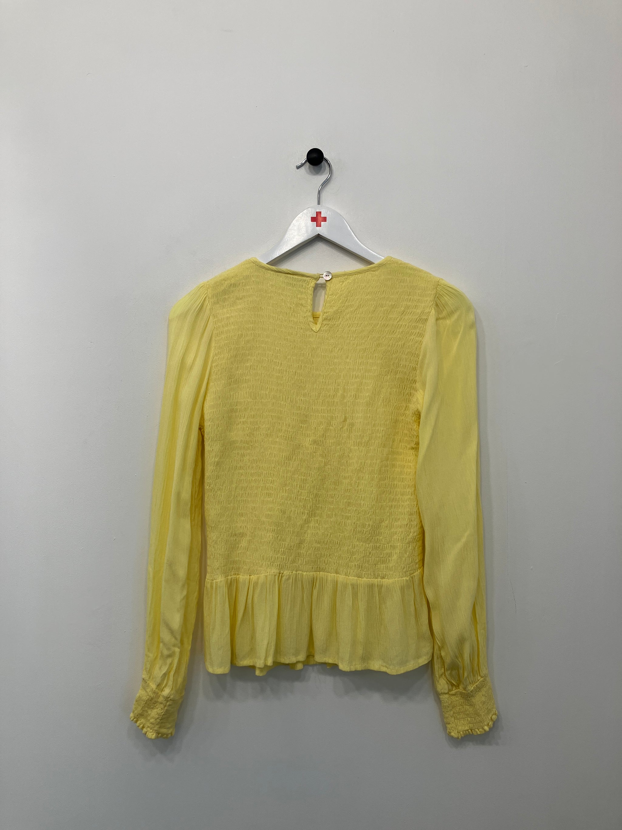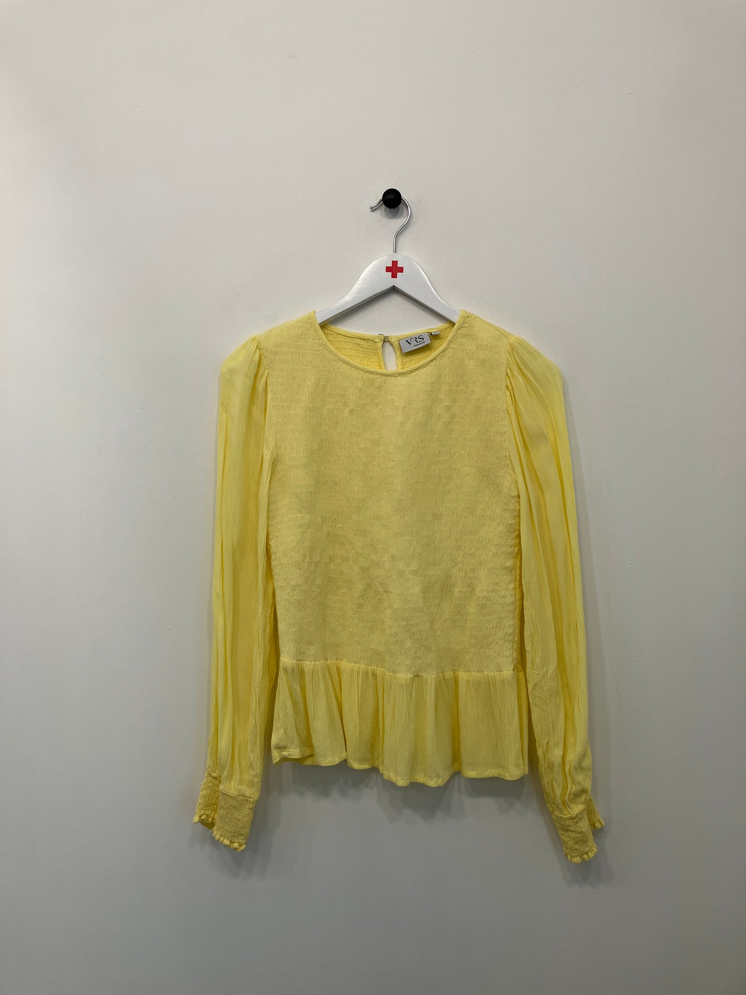 Lang ærmet bluse hvor vaske mærket er klippet af.