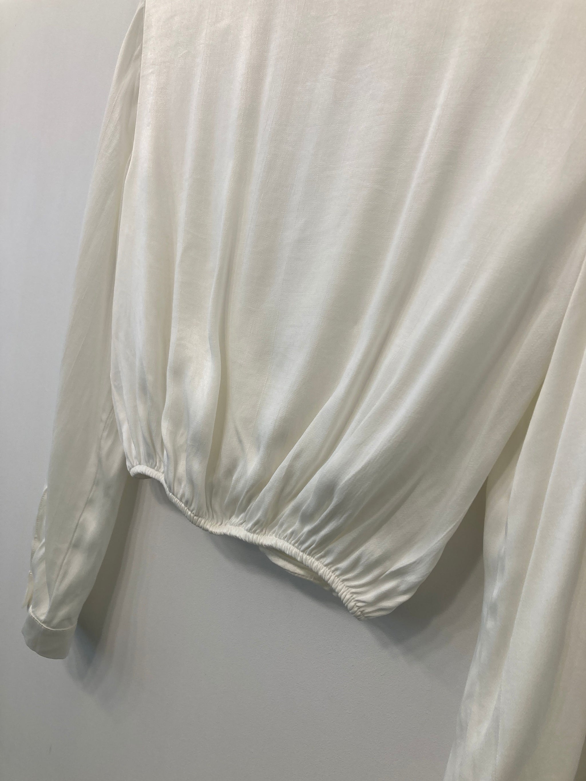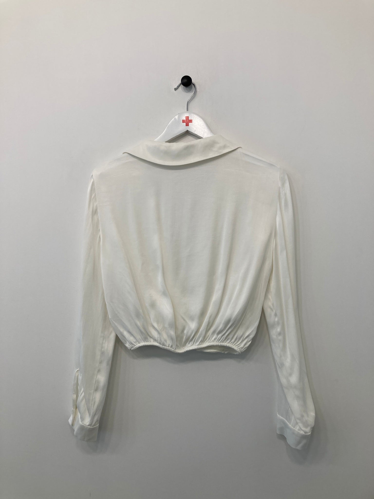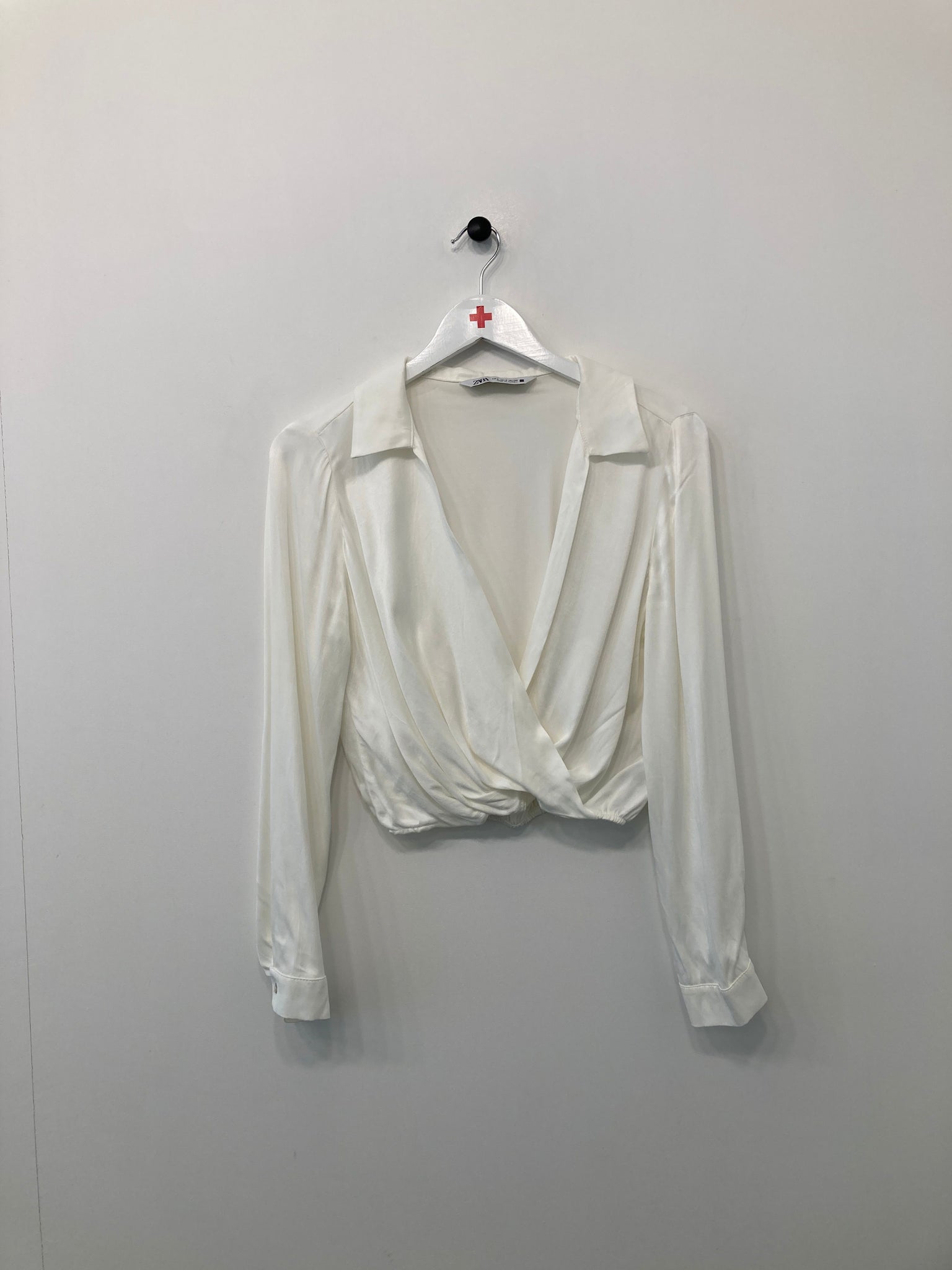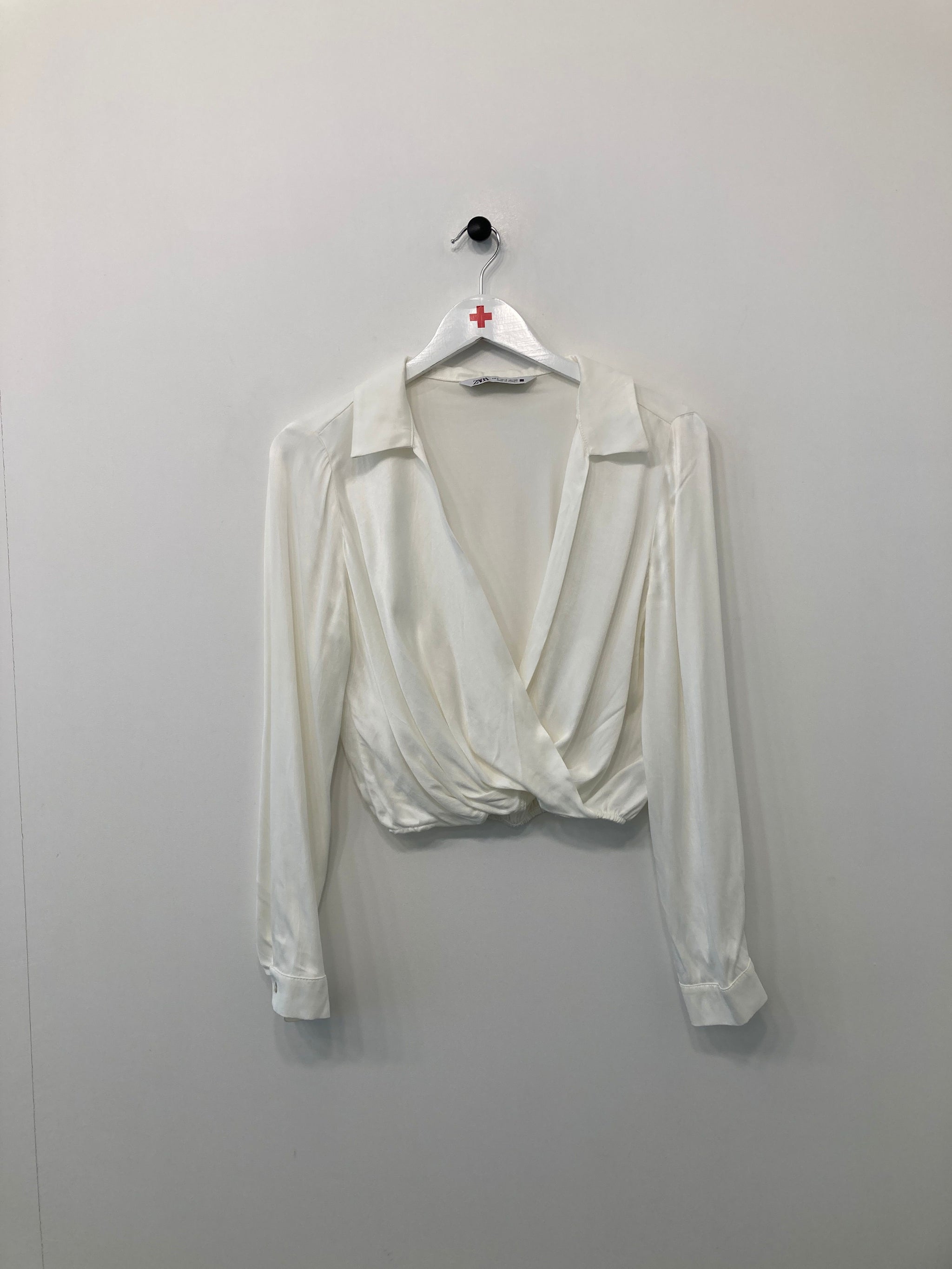 Elegant bluse med slå-om effekt og dyb V-udskæring.