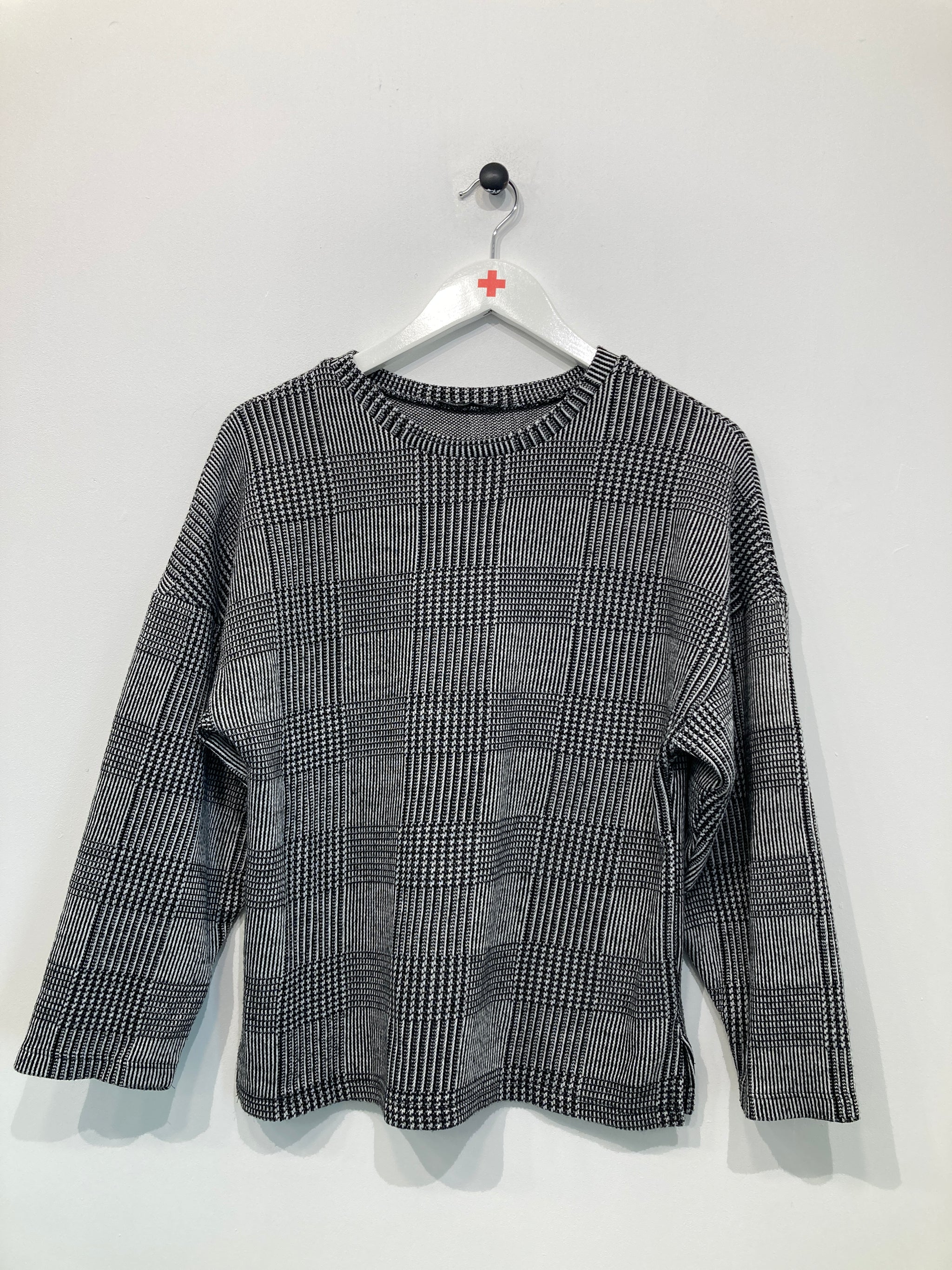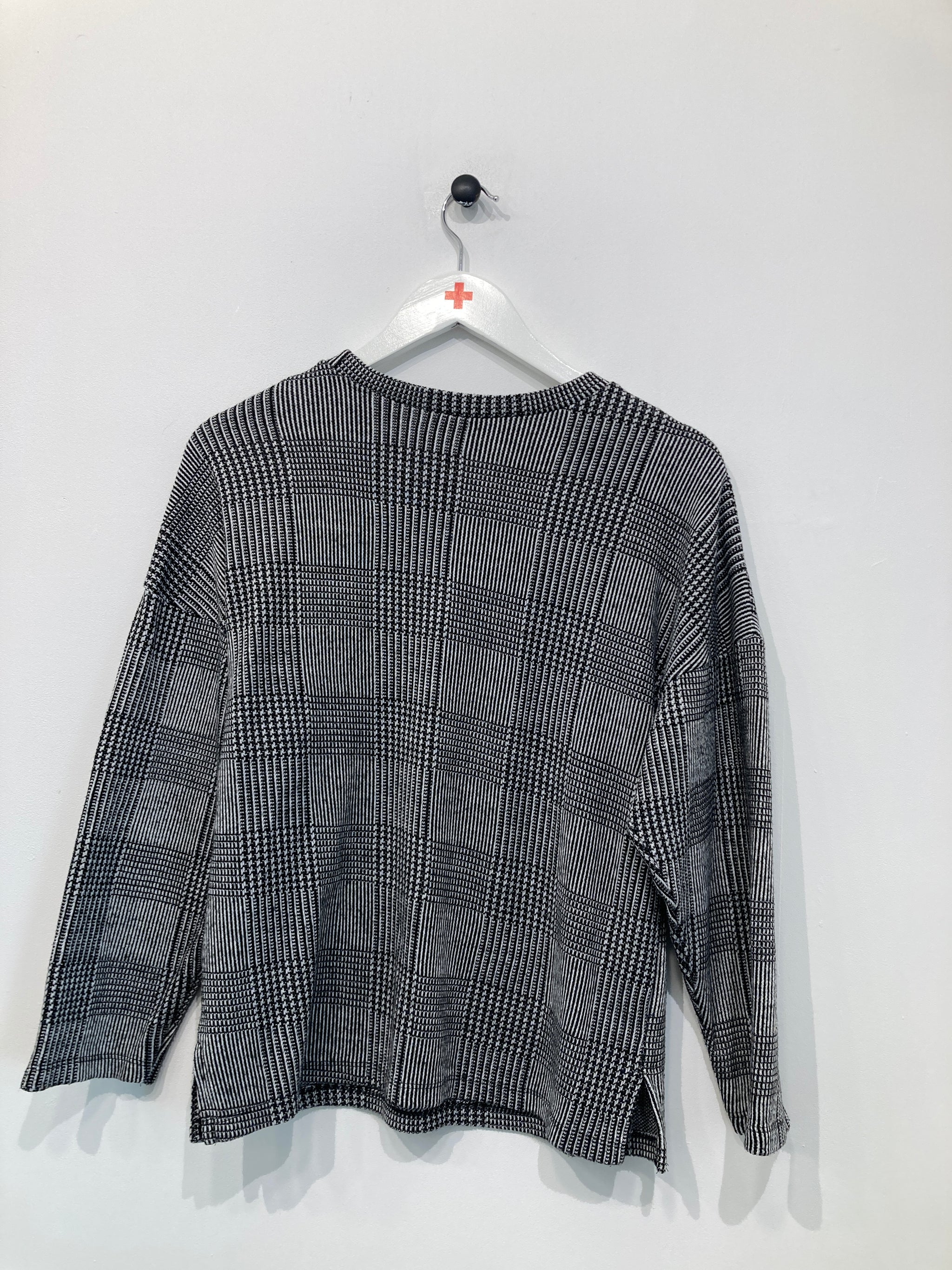 Langærmet bluse med slids i sider. Rund halsudskæring.
