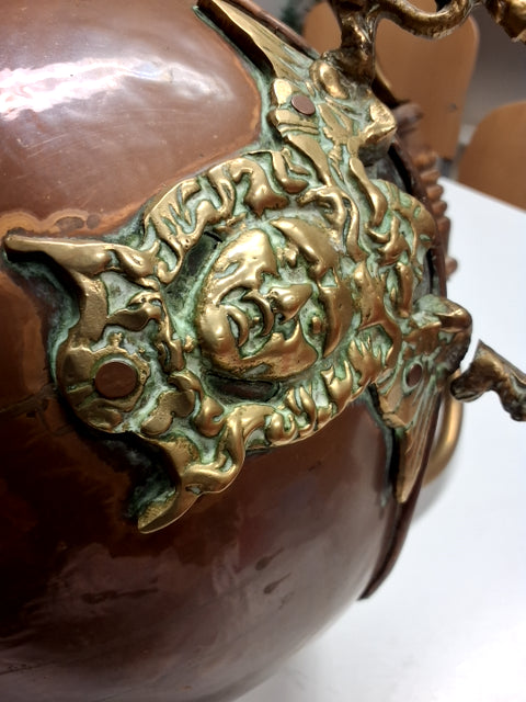 Den fineste brændekrukke /af kobber med løve ansigter og hank