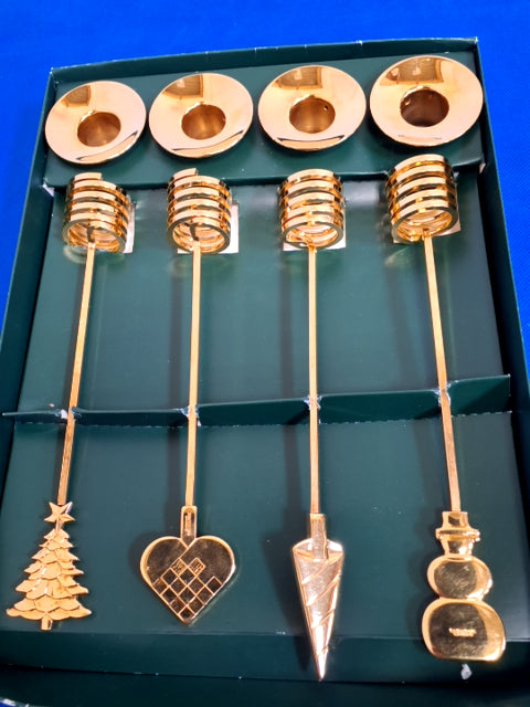 4 stk Georg Jensen lyseholdere til adventskrans i forgyldt metal.