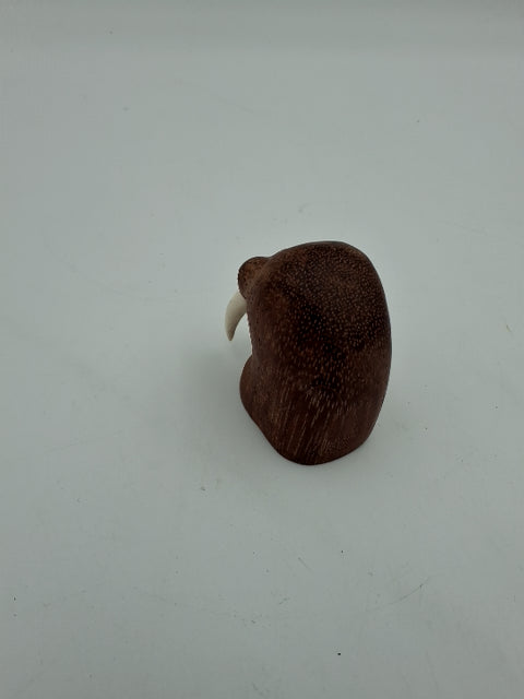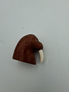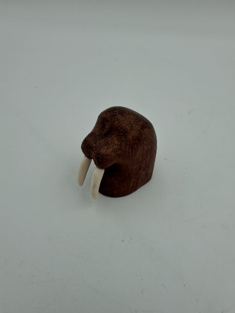 Produktet er en skulptur i træ, der forestiller et havdyr med udførte detaljer. Tænderne er lavet af lysere materiale.