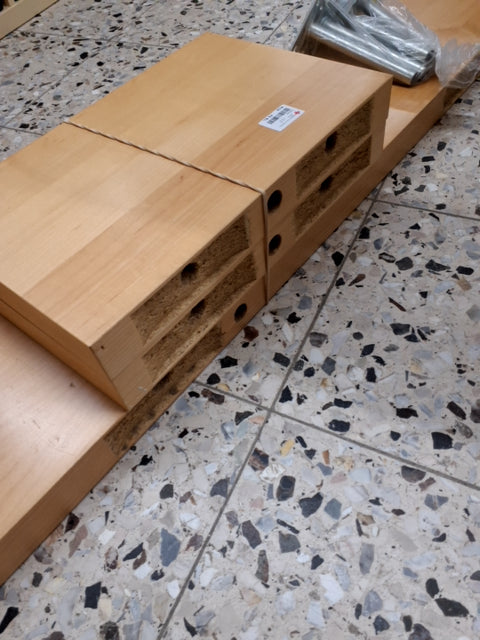Produktet består af plader i lyst træ og metalophæng. Der er 1 hylde som er 120 cm x 25 cm og 2 hylder som er 40 cm x cm.