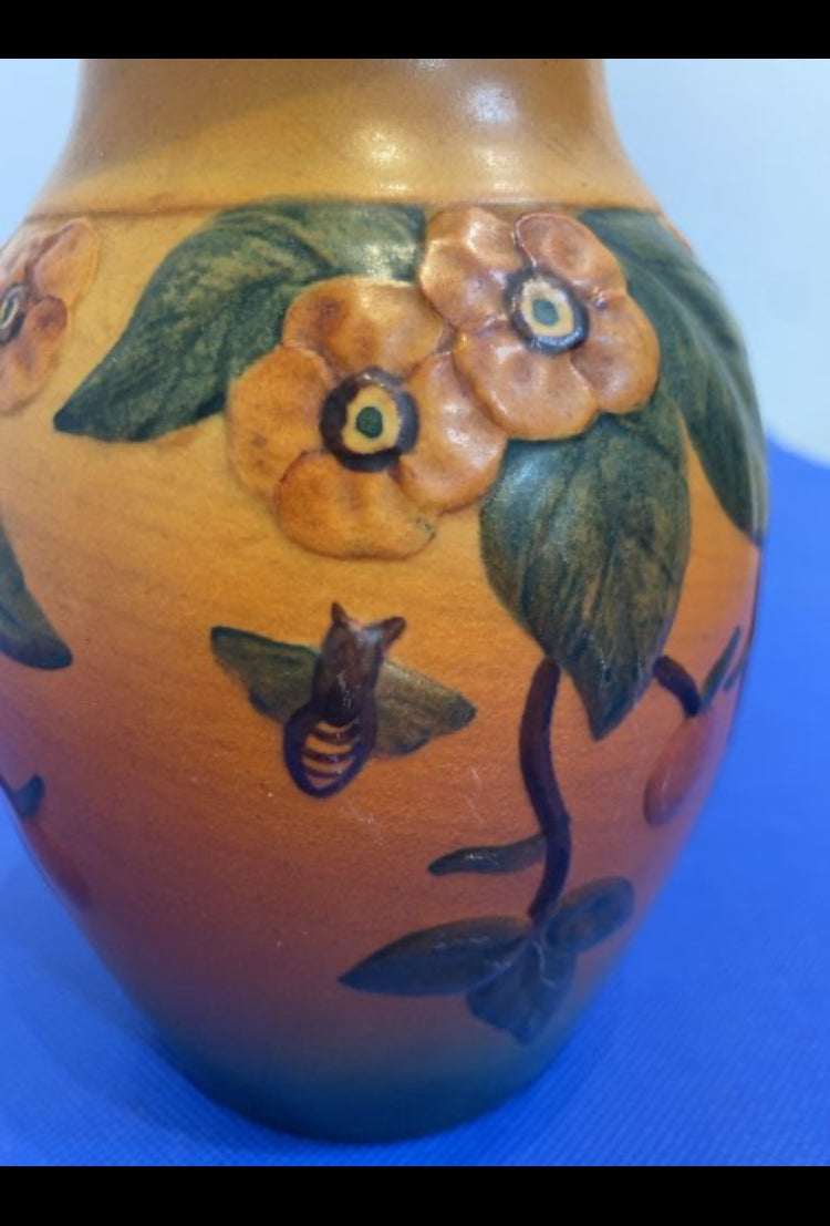 Ipsens Keramik Vase med blomst & bi. Højde: ca. 17 cm