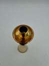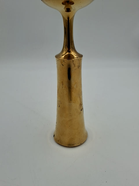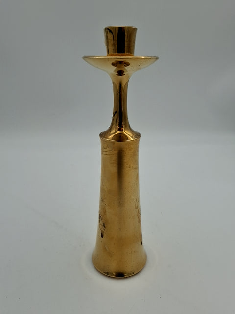 Stearinlyset holderen er slank og moderne med en glat overflade. Guldfarvet.