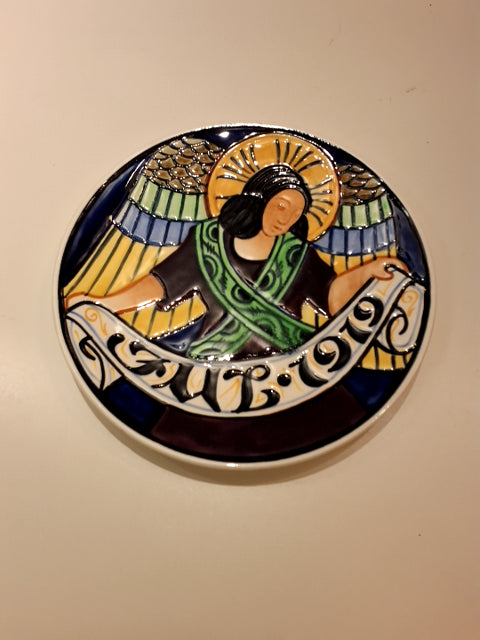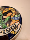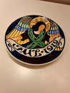 Fajance/Aluminium Platten er rund med farverige blomsterdesign og indgraveret .