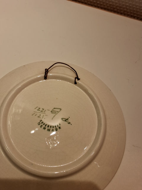 Platte er rund med farverige blomsterdesign og indgraveret årstal 1922 No: 1221/1125 Str : Ø 16 cm.